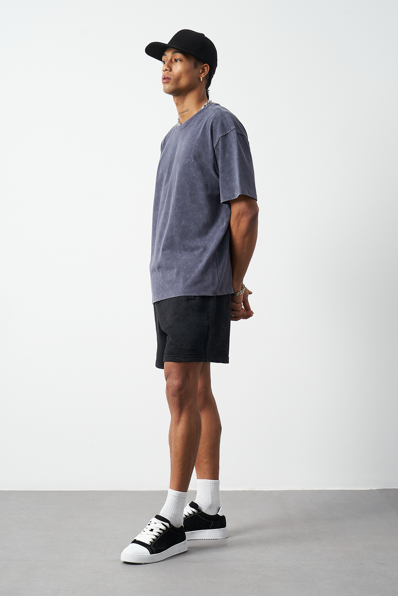 Effect Washed Bermuda Men's Shorts with Embroidery Details