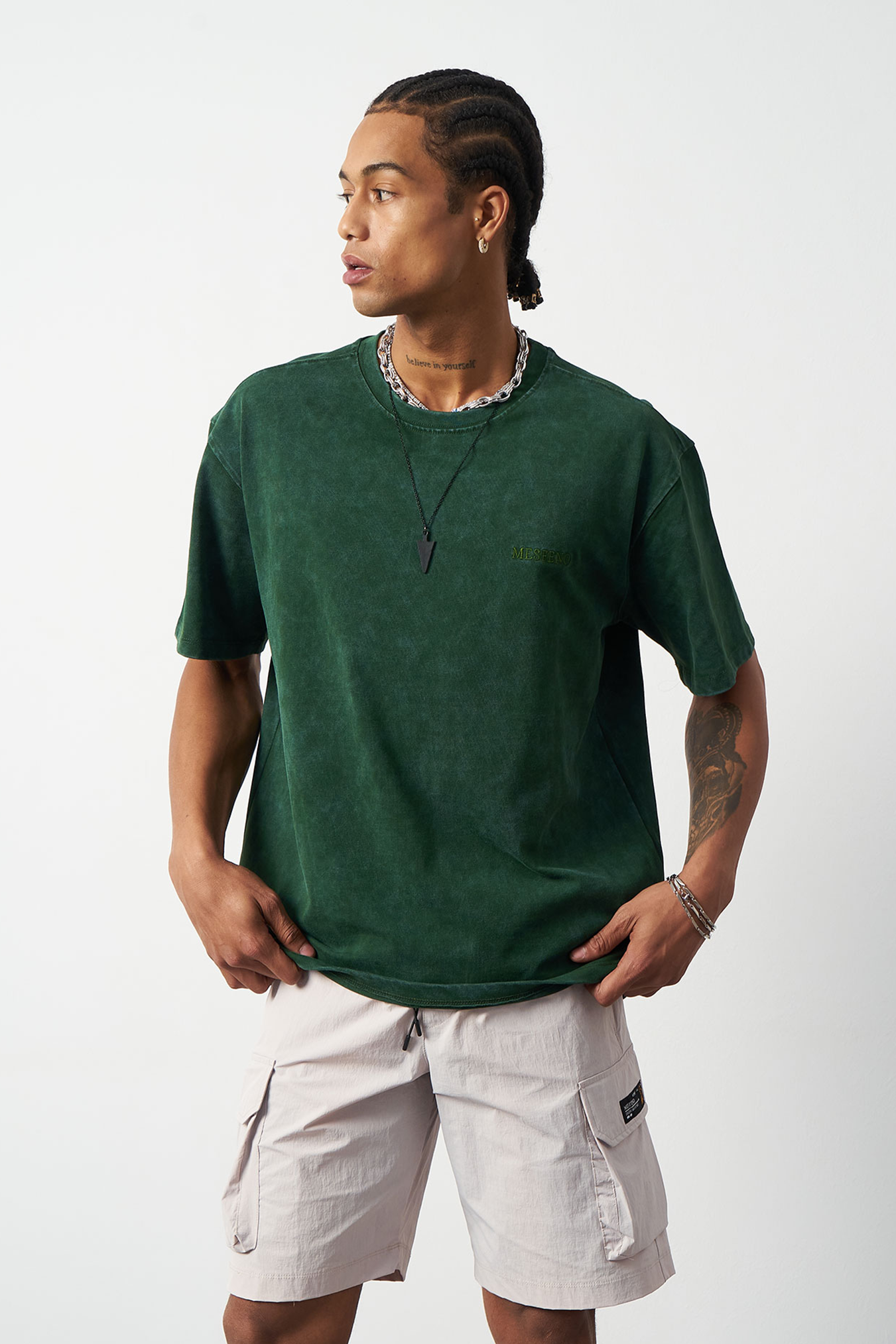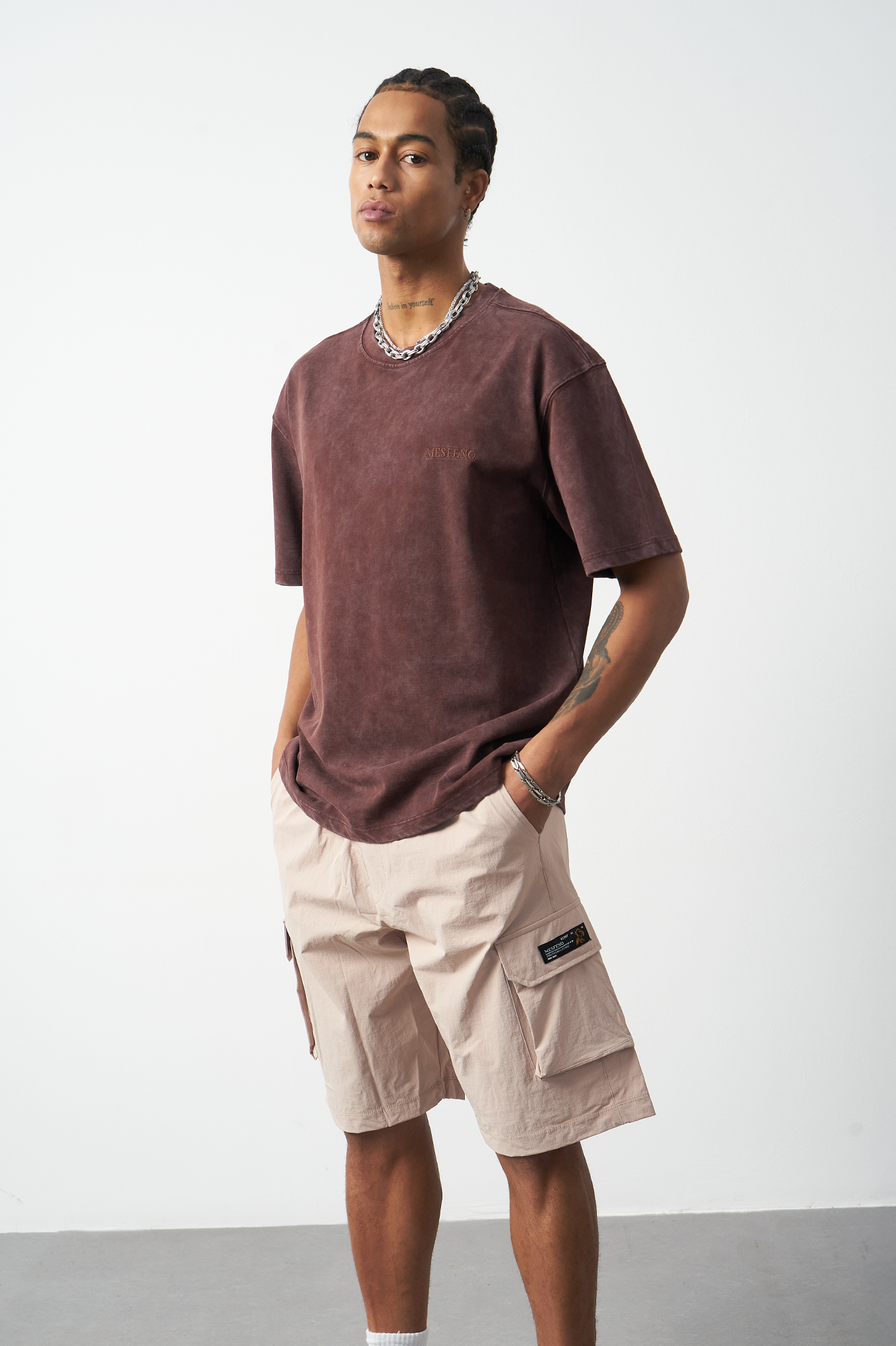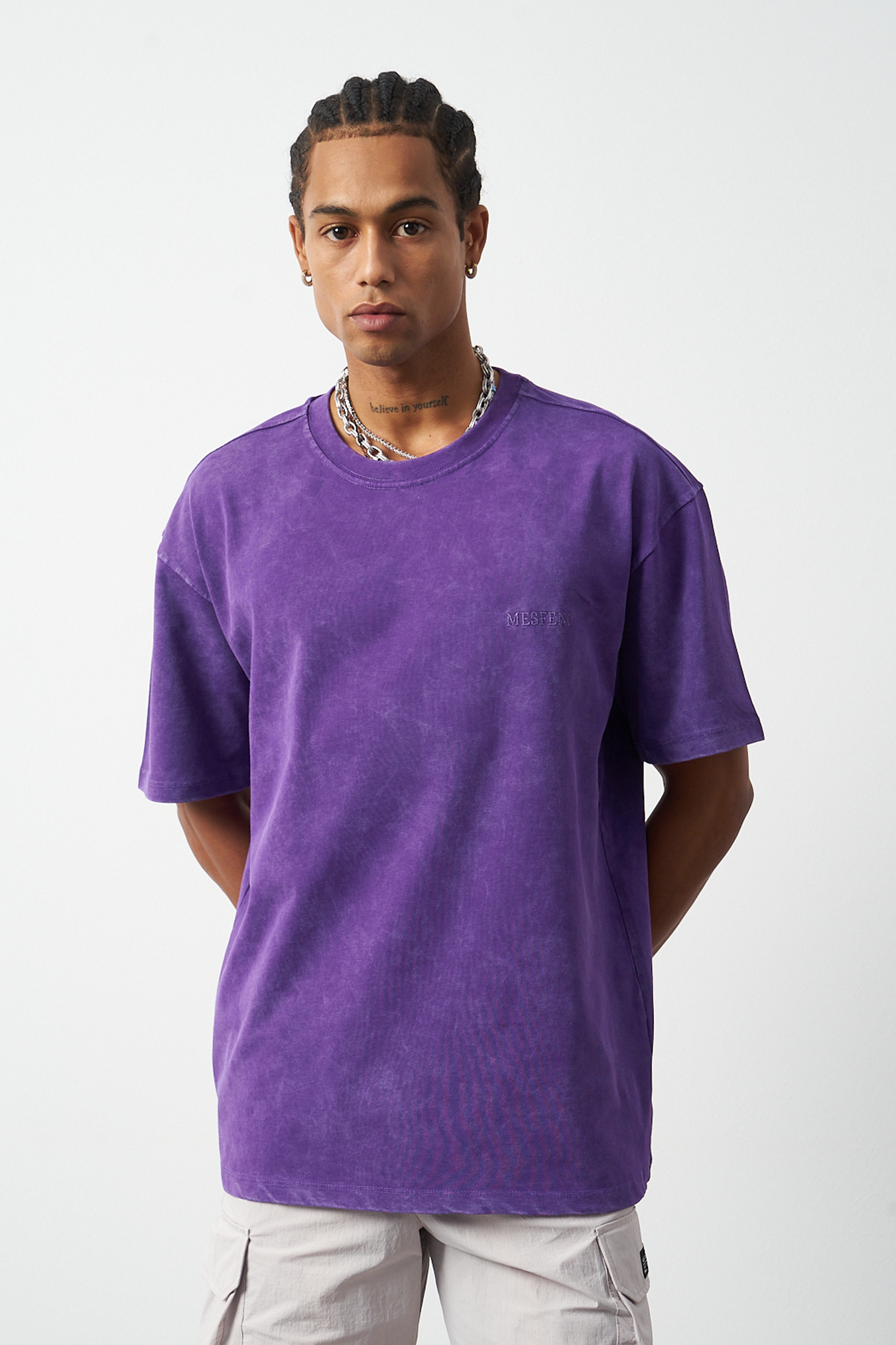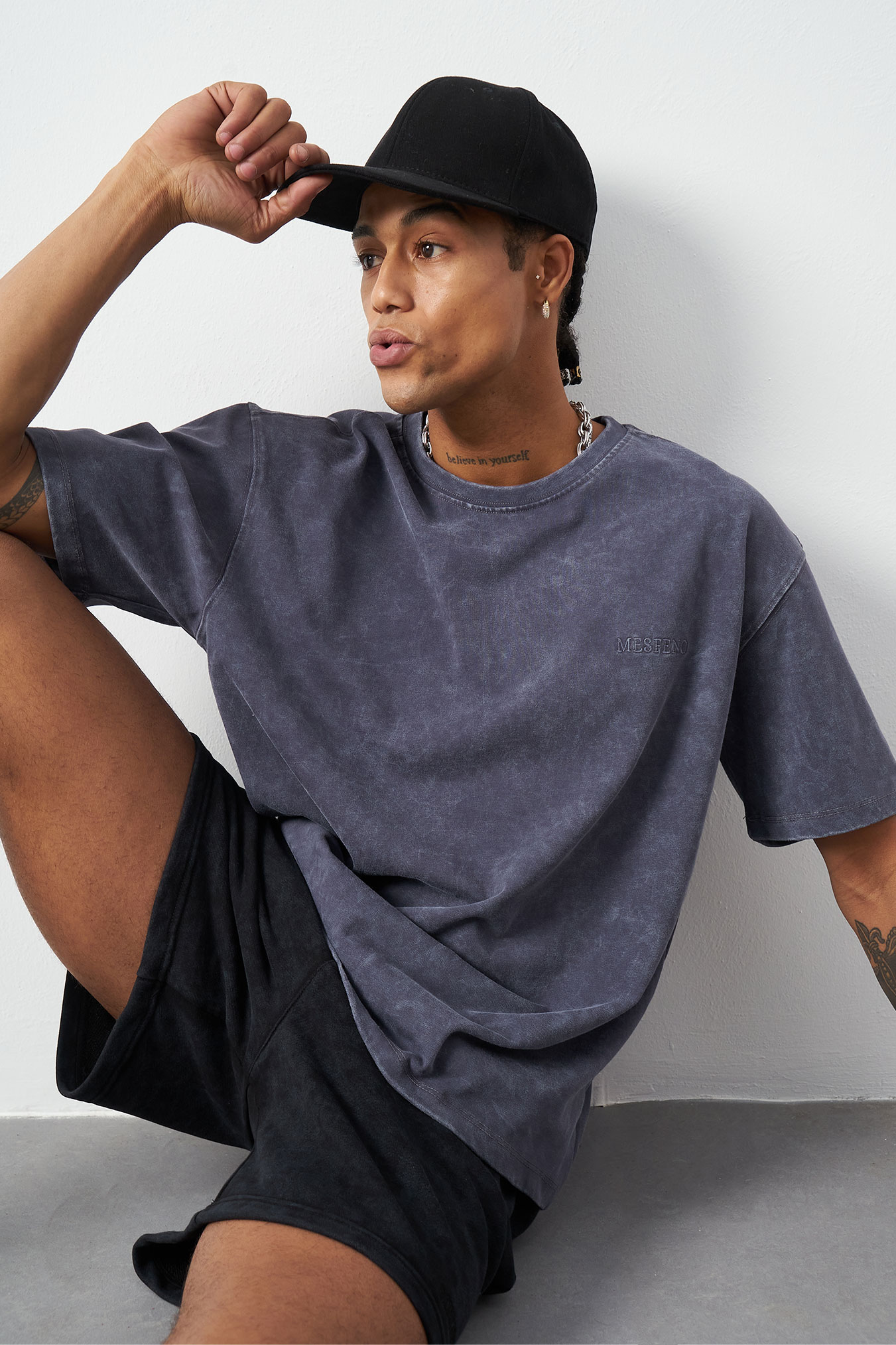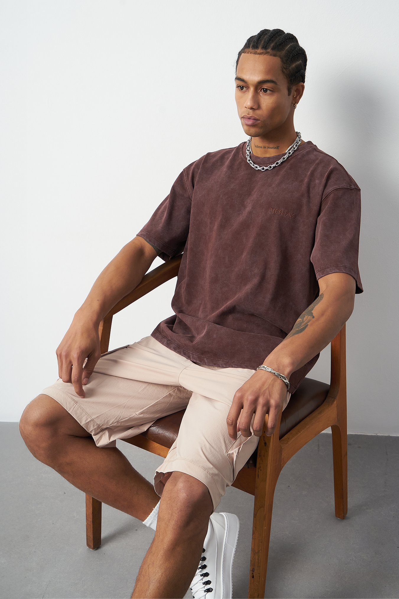 Stand out with details that highlight your style! This boxy fit washed men's t-shirt features a special wash effect that adds a vintage vibe, while the embroidered detail on the chest gives it a premium look. Its relaxed and loose fit allows you to move freely all day, while the short sleeves offer a modern style. Available in 6 different colors, providing versatile outfit combinations.