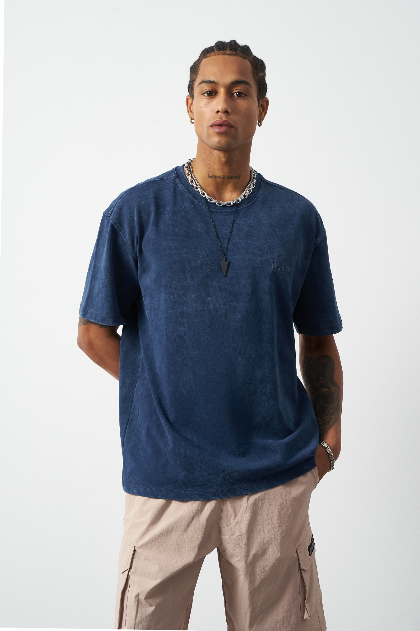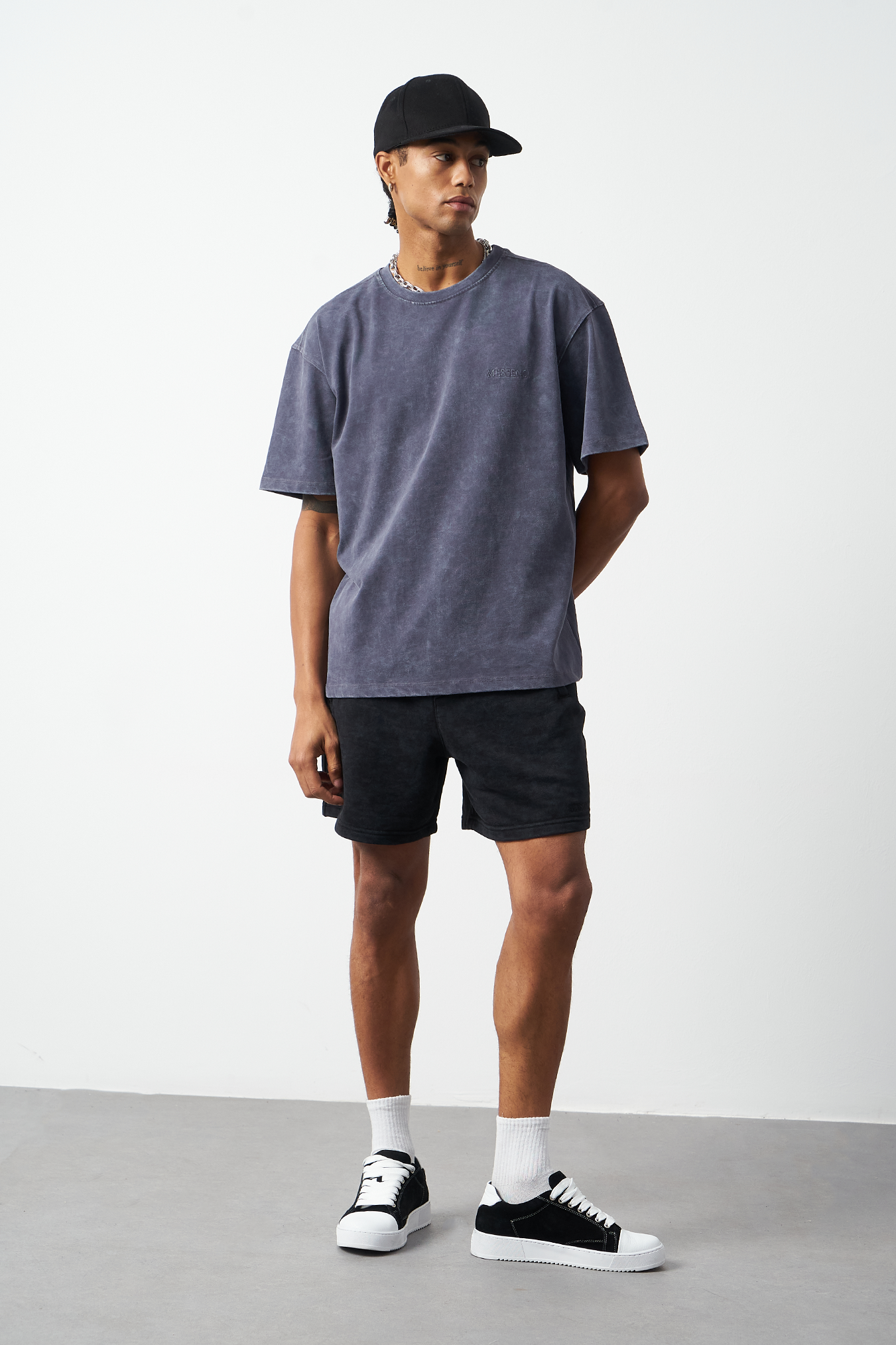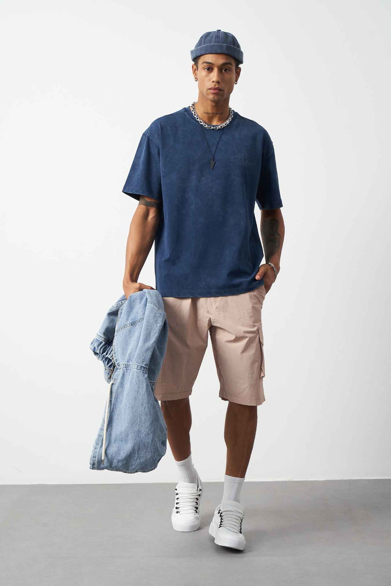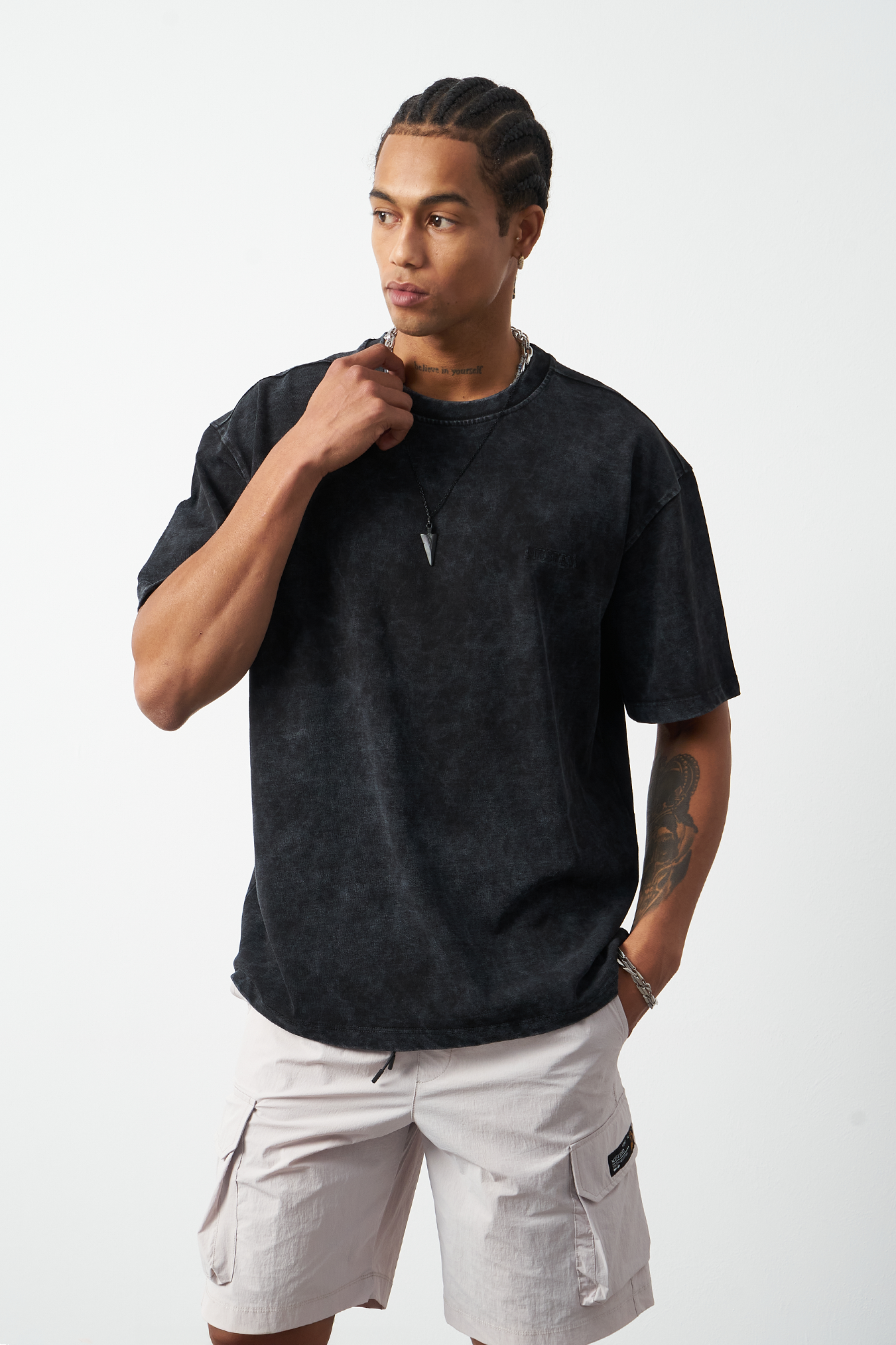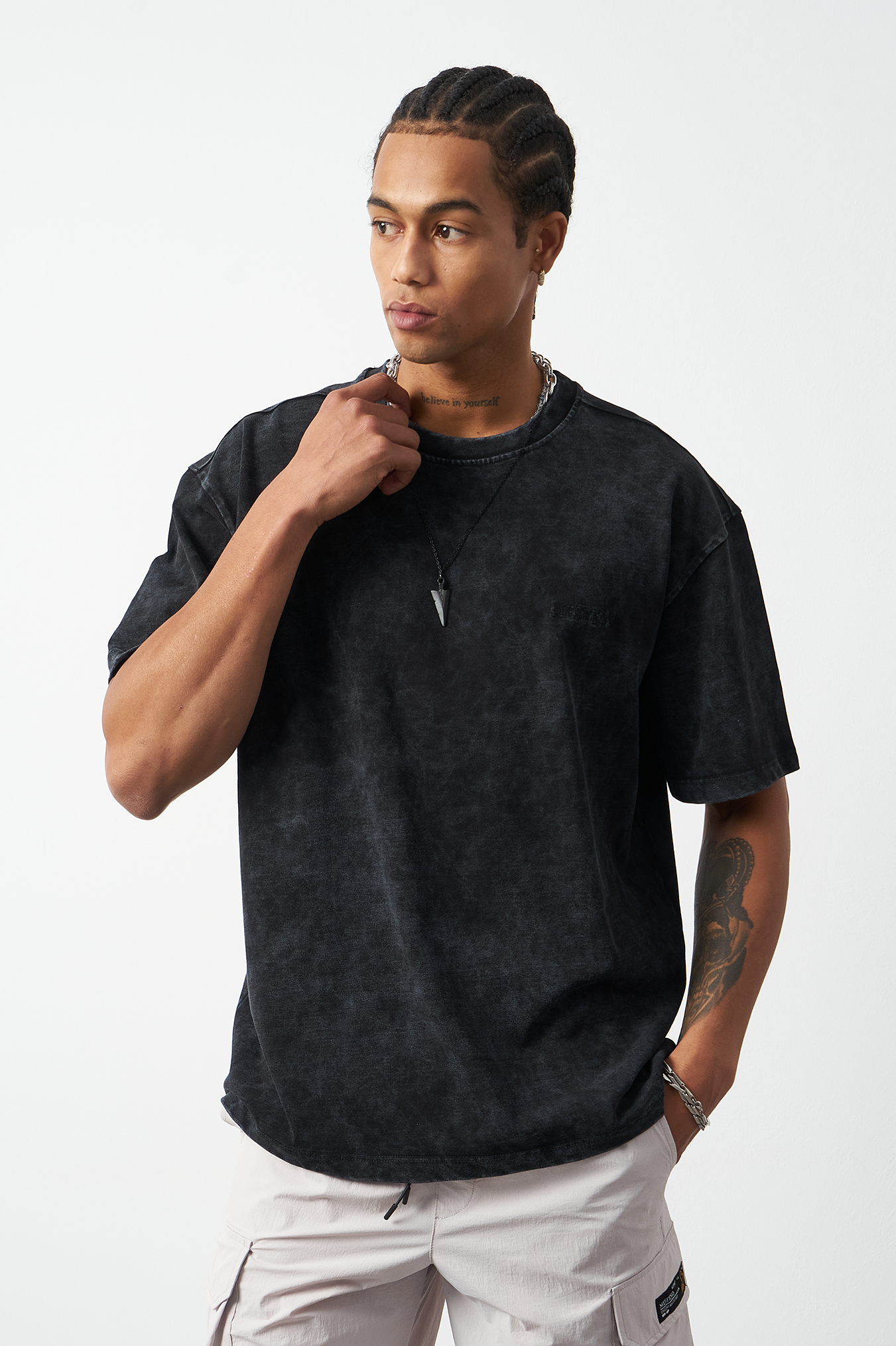 Stand out with details that highlight your style! This boxy fit washed men's t-shirt features a special wash effect that adds a vintage vibe, while the embroidered detail on the chest gives it a premium look. Its relaxed and loose fit allows you to move freely all day, while the short sleeves offer a modern style. Available in 6 different colors, providing versatile outfit combinations.