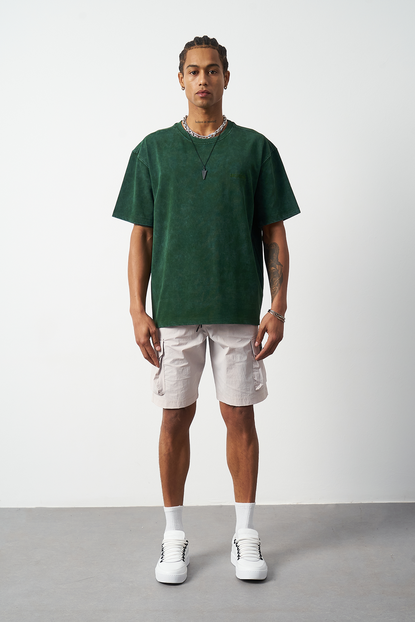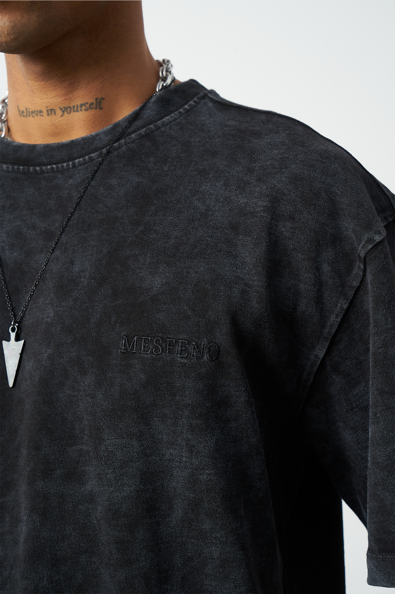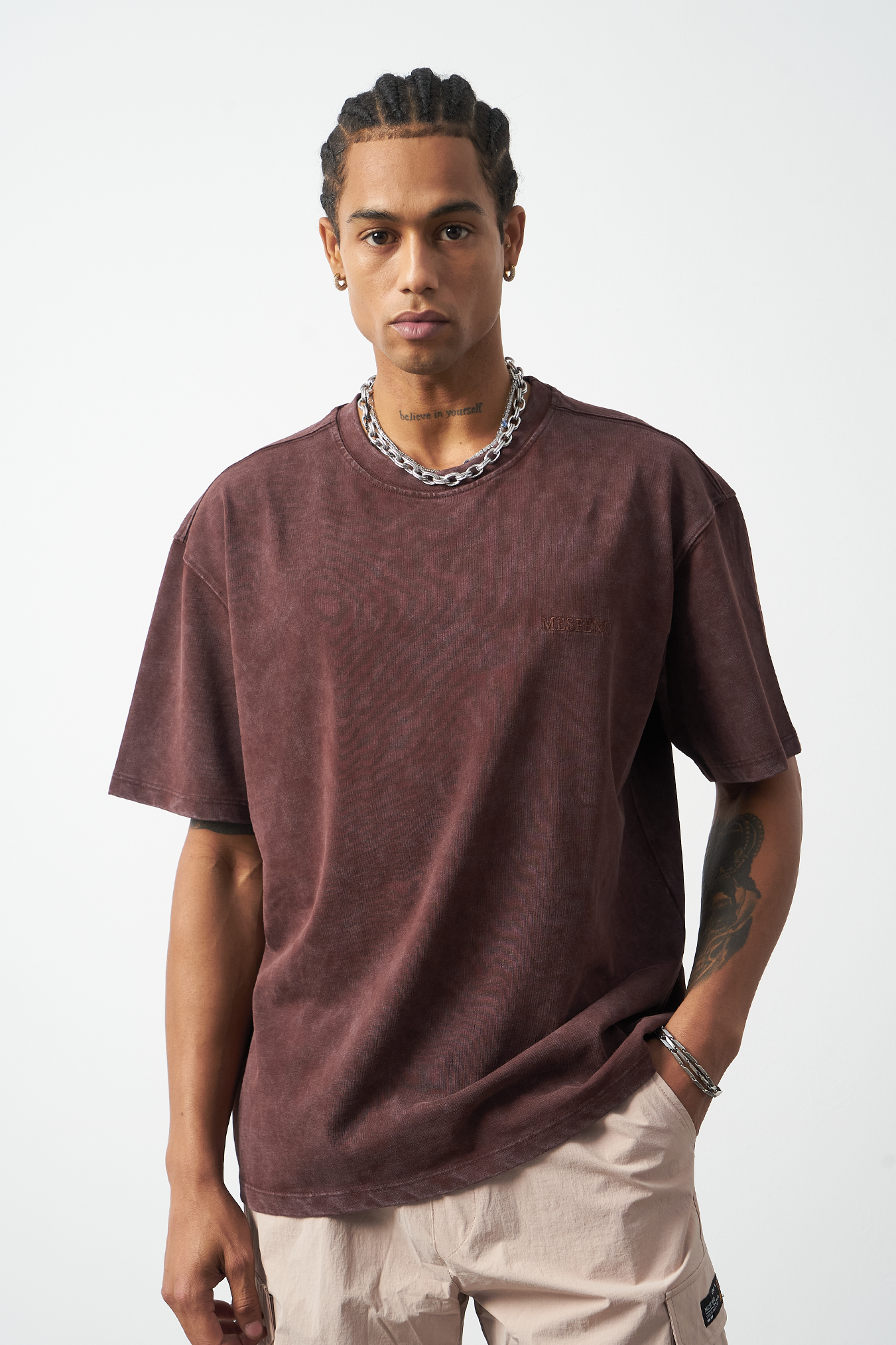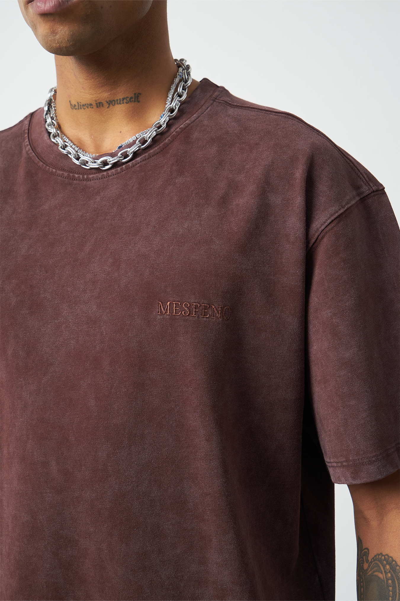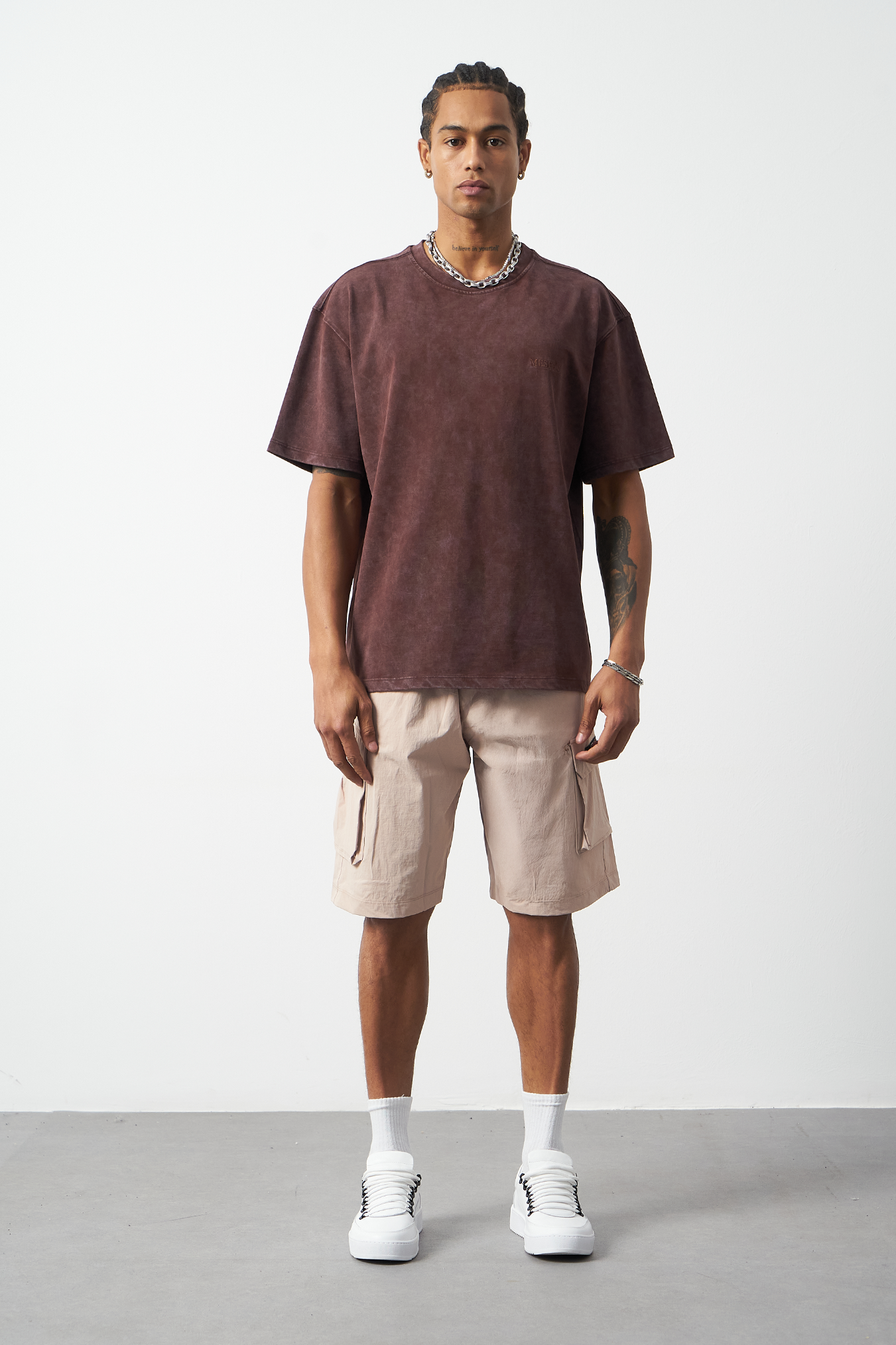 Stand out with details that highlight your style! This boxy fit washed men's t-shirt features a special wash effect that adds a vintage vibe, while the embroidered detail on the chest gives it a premium look. Its relaxed and loose fit allows you to move freely all day, while the short sleeves offer a modern style. Available in 6 different colors, providing versatile outfit combinations.