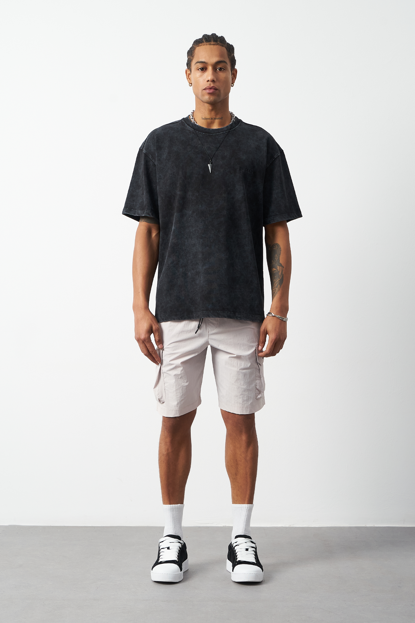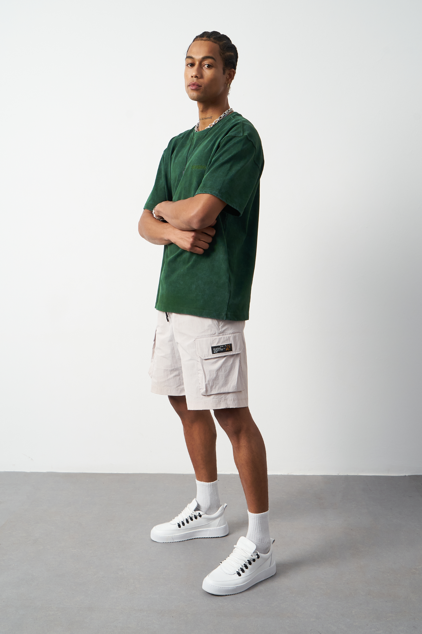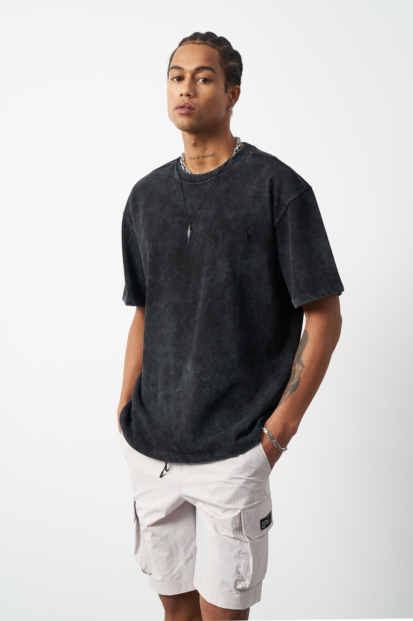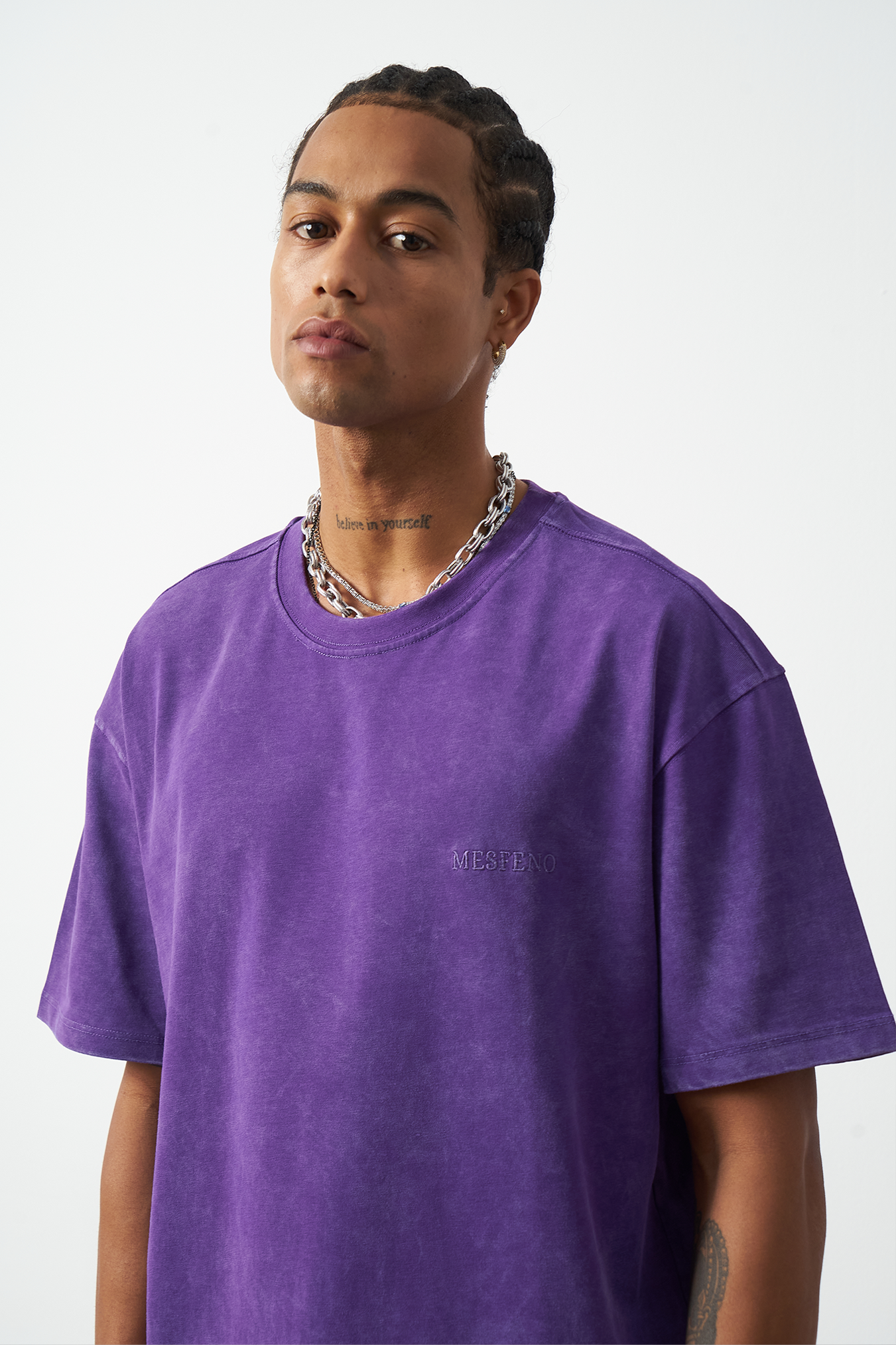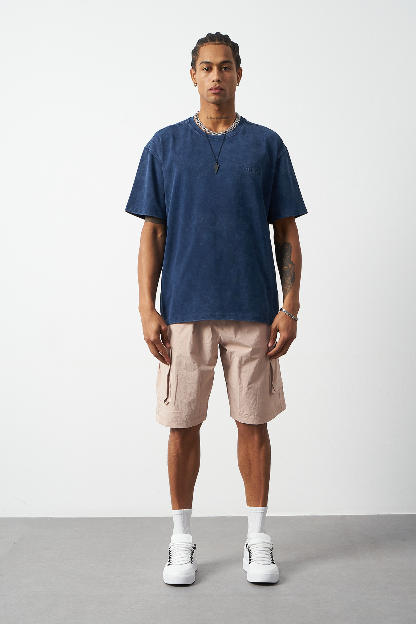 Stand out with details that highlight your style! This boxy fit washed men's t-shirt features a special wash effect that adds a vintage vibe, while the embroidered detail on the chest gives it a premium look. Its relaxed and loose fit allows you to move freely all day, while the short sleeves offer a modern style. Available in 6 different colors, providing versatile outfit combinations.