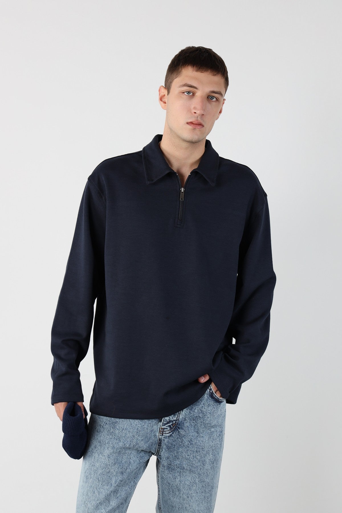 Standing Out With Its Minimal Design, The Half-Zip Oversize Mens Sweatshirt Offers Comfort And Style Together With Its Side Slit Detail And Premium Fabric Texture.; While It Provides A Free Stance With Its Loose Cut, It Offers Comfortable Use All Day Long Thanks To Its Soft Premium Fabric.; It Offers A Wide Range Of Combination Options With 5 Different Color Options.; A Perfect Choice For Street Fashion And Casual Combinations! •our Products Are Carefully Produced By The Mesfeno Brand In Türkiye.; •product Washing Instructions: Machine Drying Should Not Be Preferred.; You Can Wash At 30 ° C.; •zipper Detail •soft Flexible Fabric •oversized Mold •product Code: Msfn-803 •product Material: 80% Cotton 20% Polyester •models Body Measurements: 1.85 Height, 75 Kilos (Image Product: Size L)