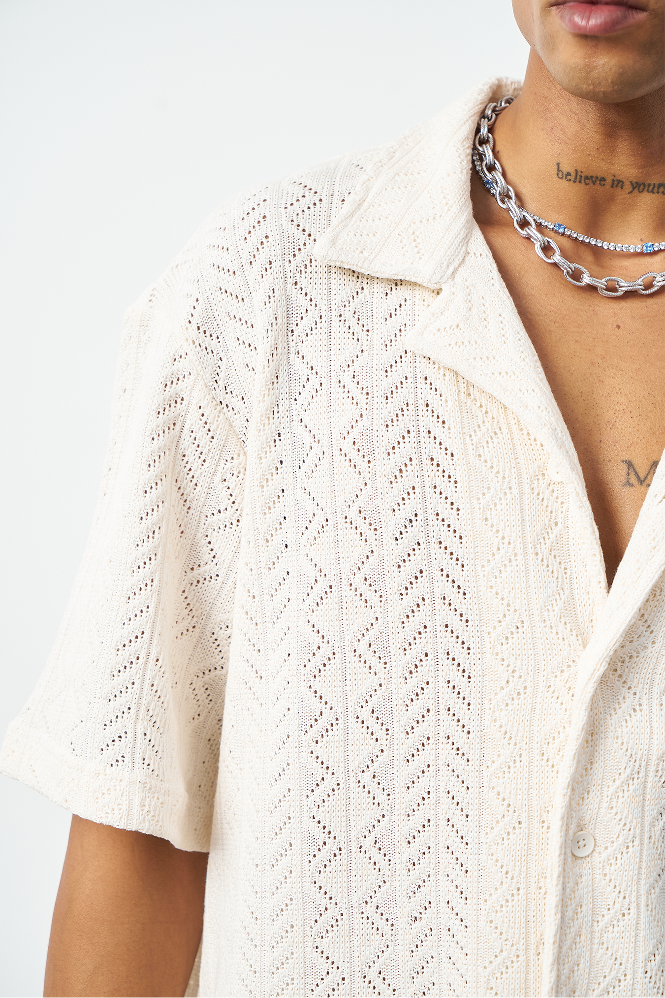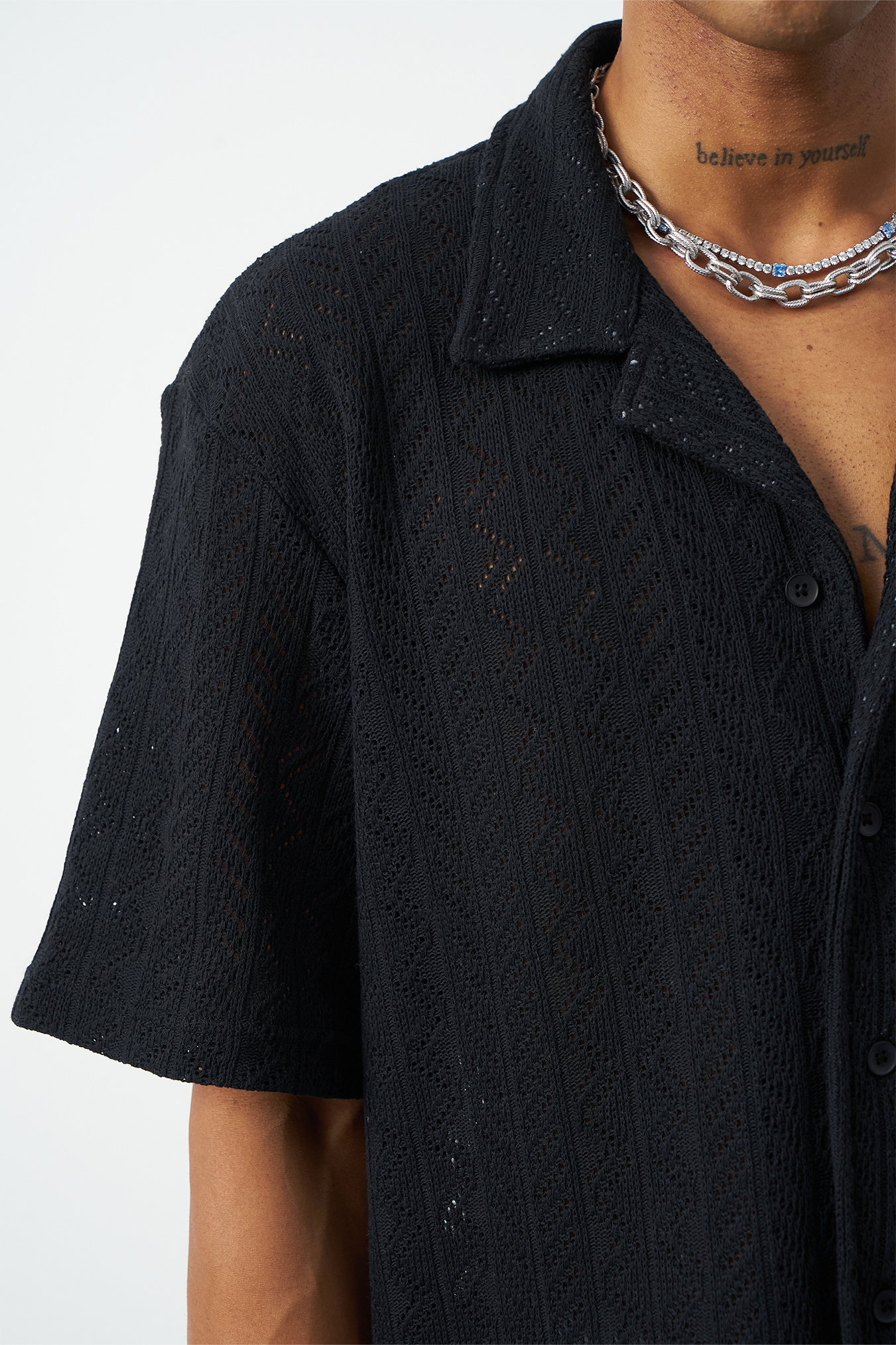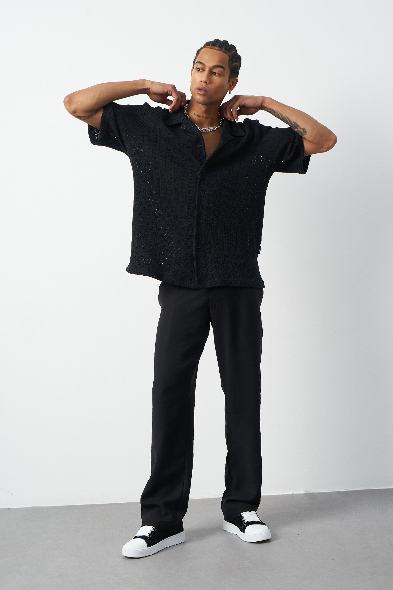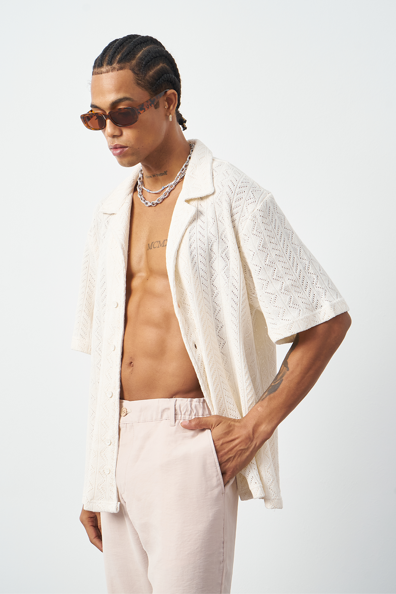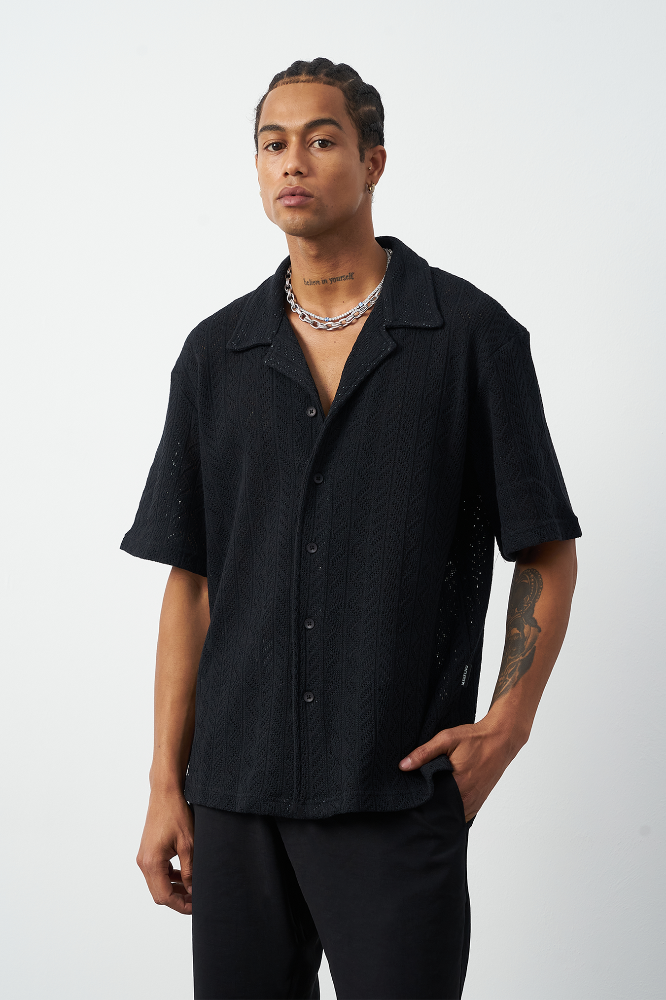 Light and comfortable! The knitted pattern fabric keeps you cool and relaxed all day, while the Cuban collar and oversized fit offer a premium style. With 2 classic color options, it easily complements any outfit. A must-have piece for street fashion and modern combinations!