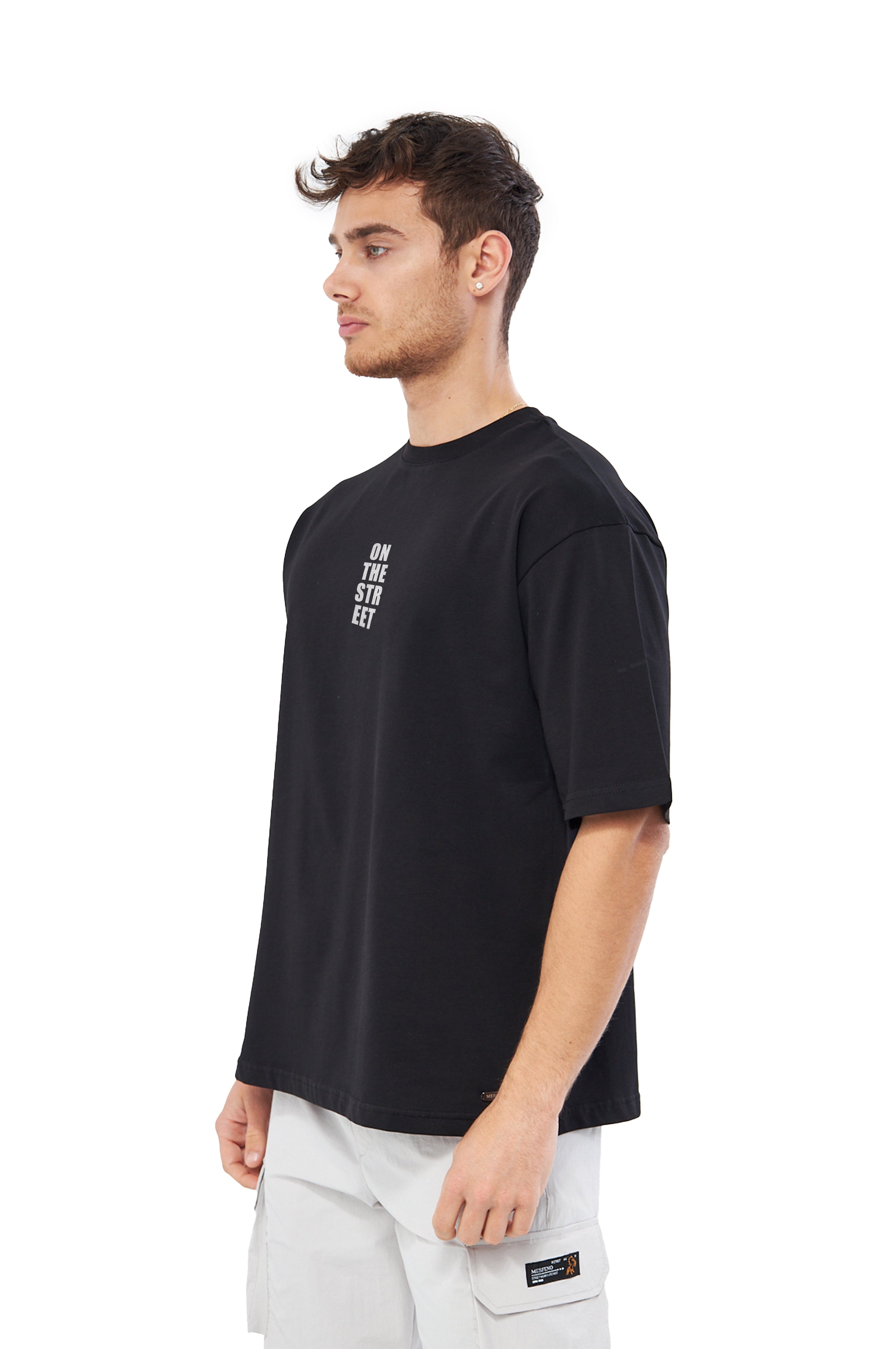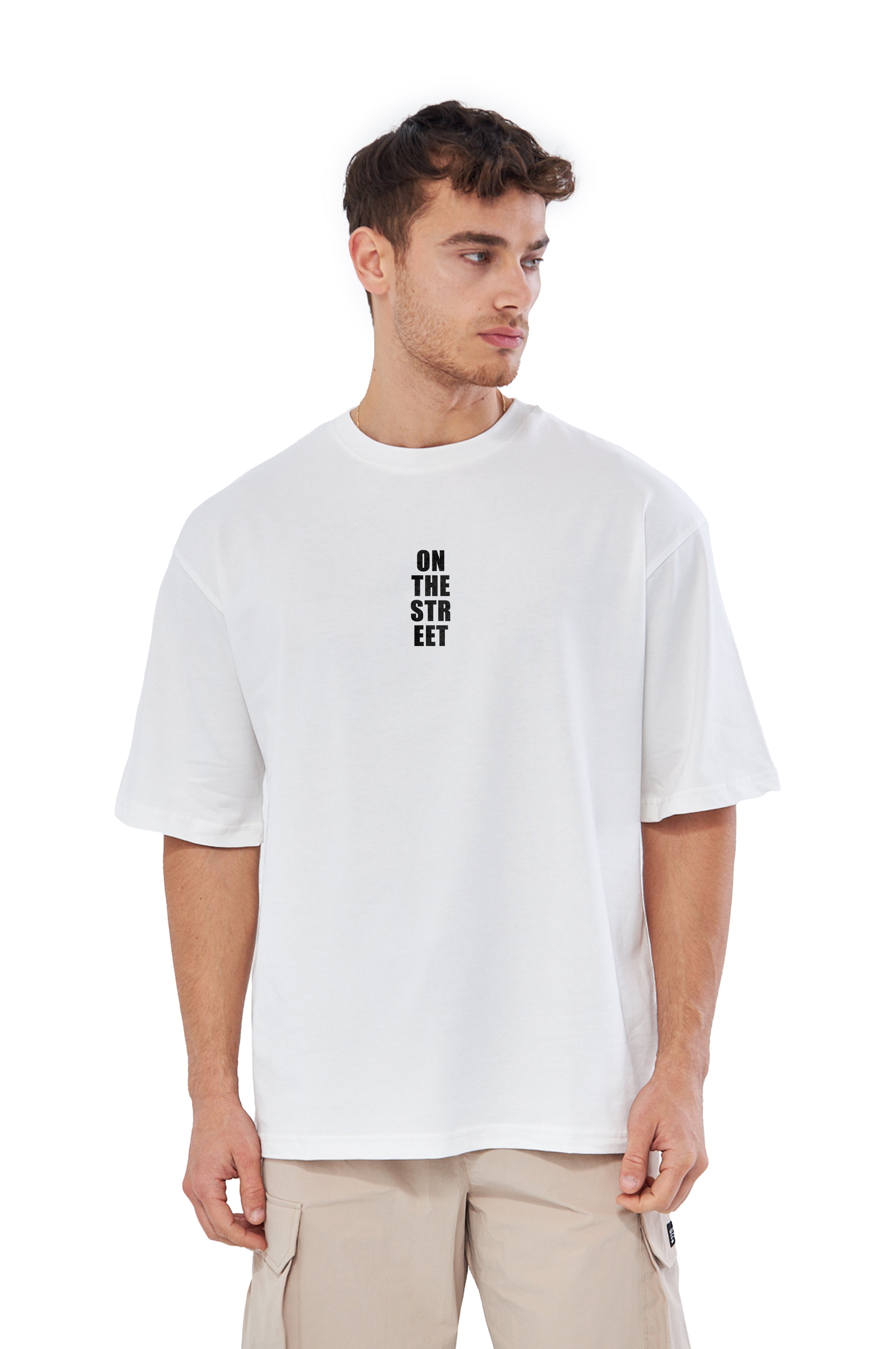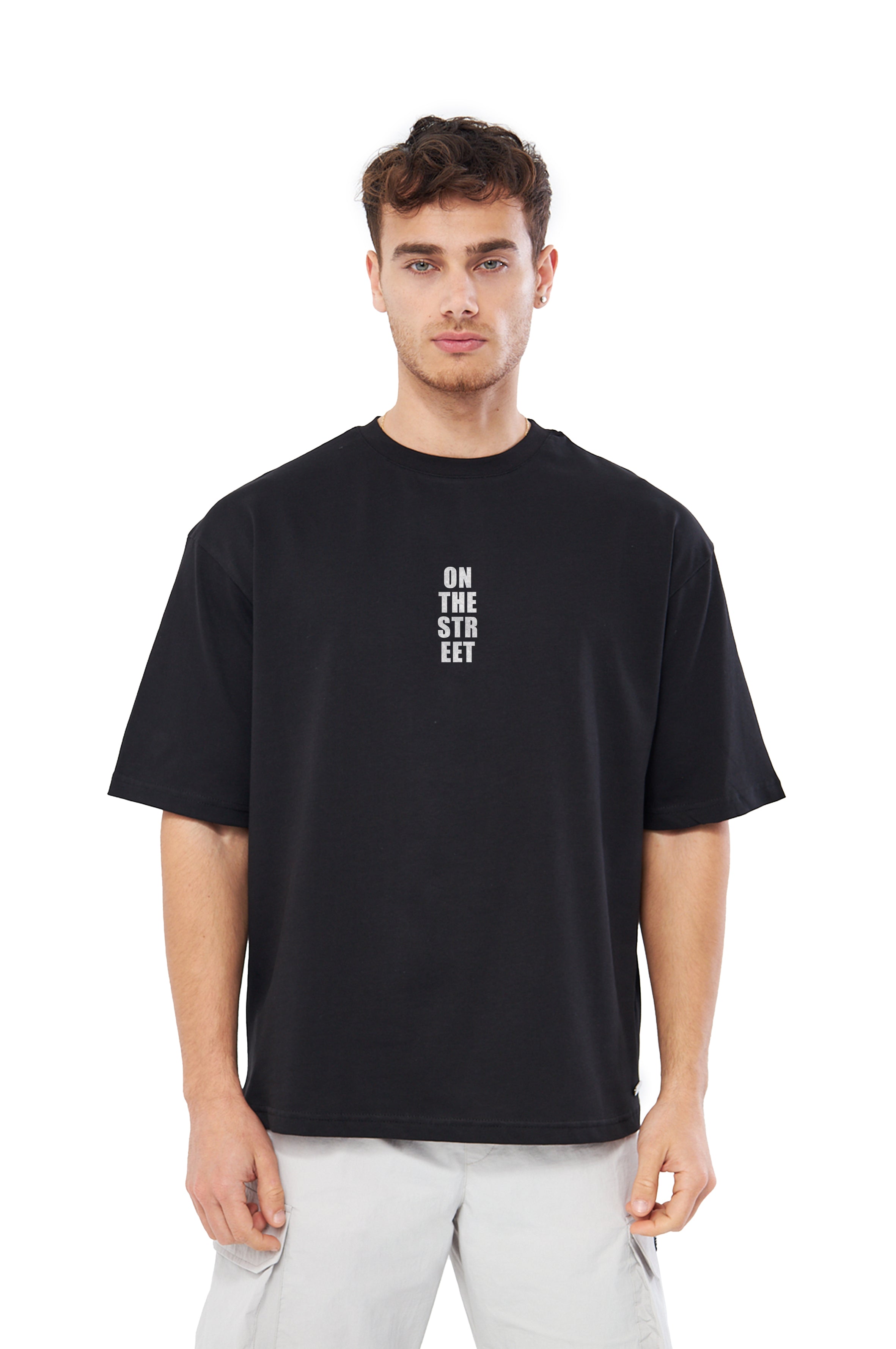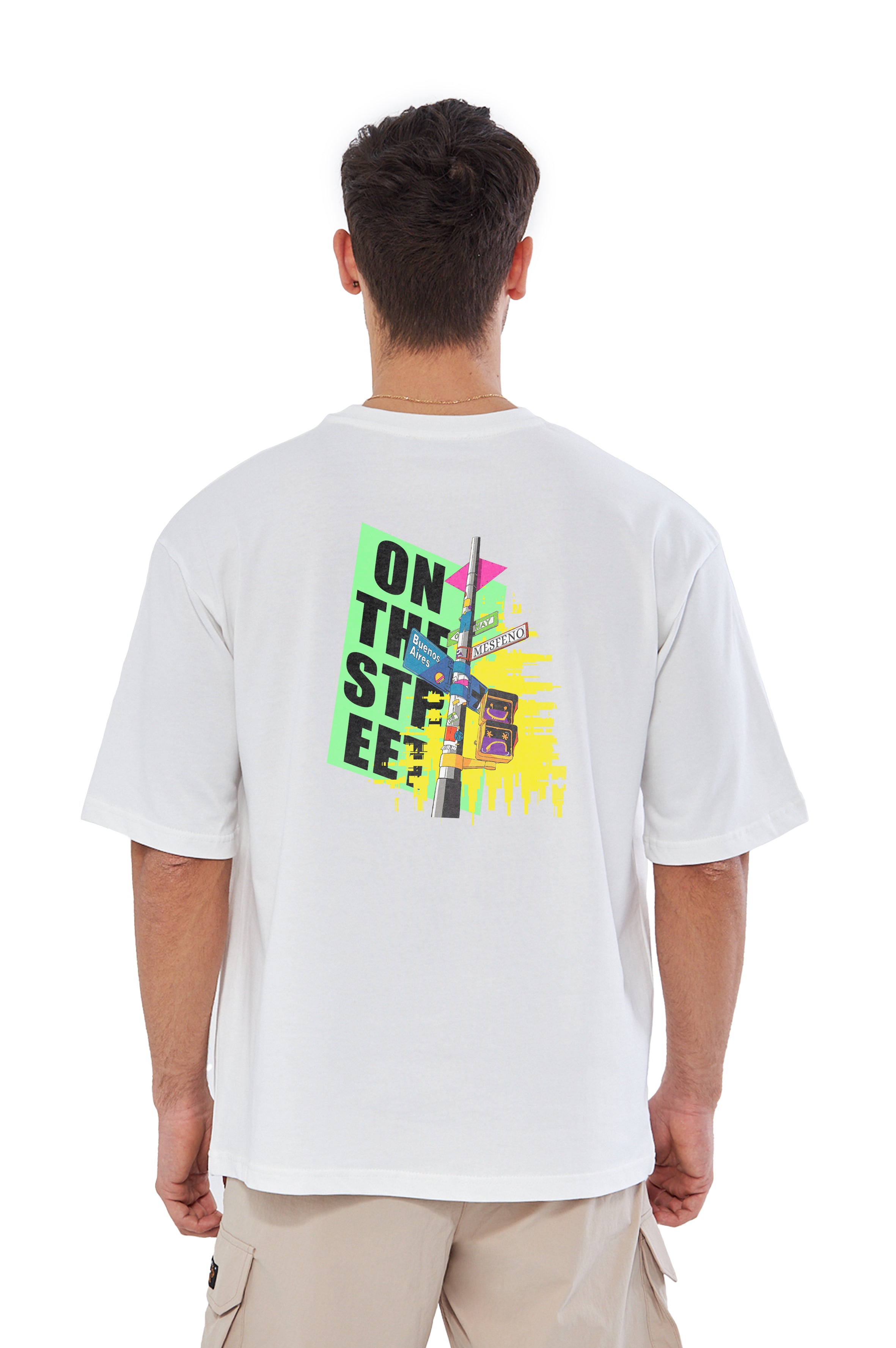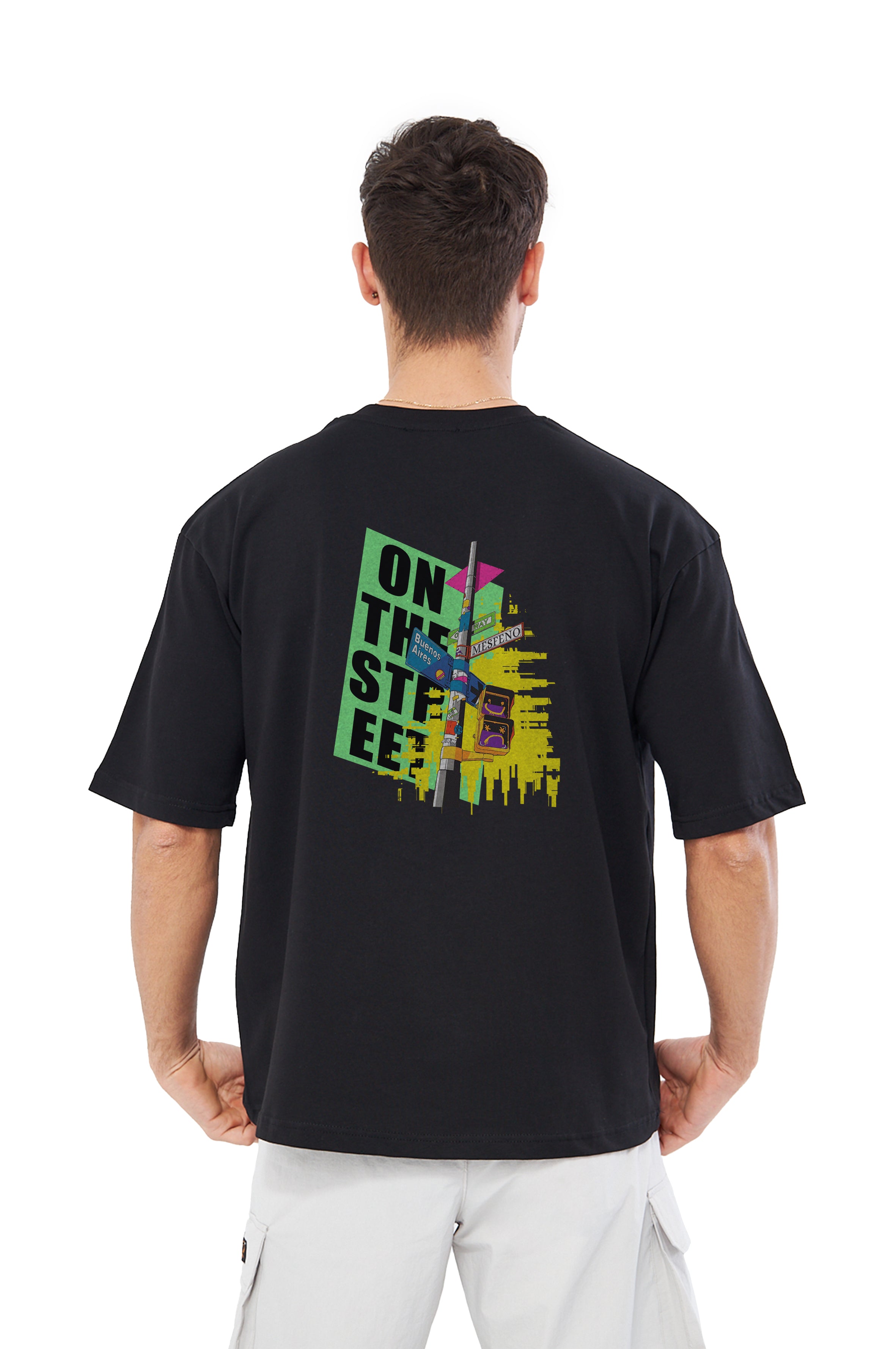 Mesfeno Men’s Oneway Printed Oversized T-Shirt – 100% Cotton, Organic Heavyweight Fabric
