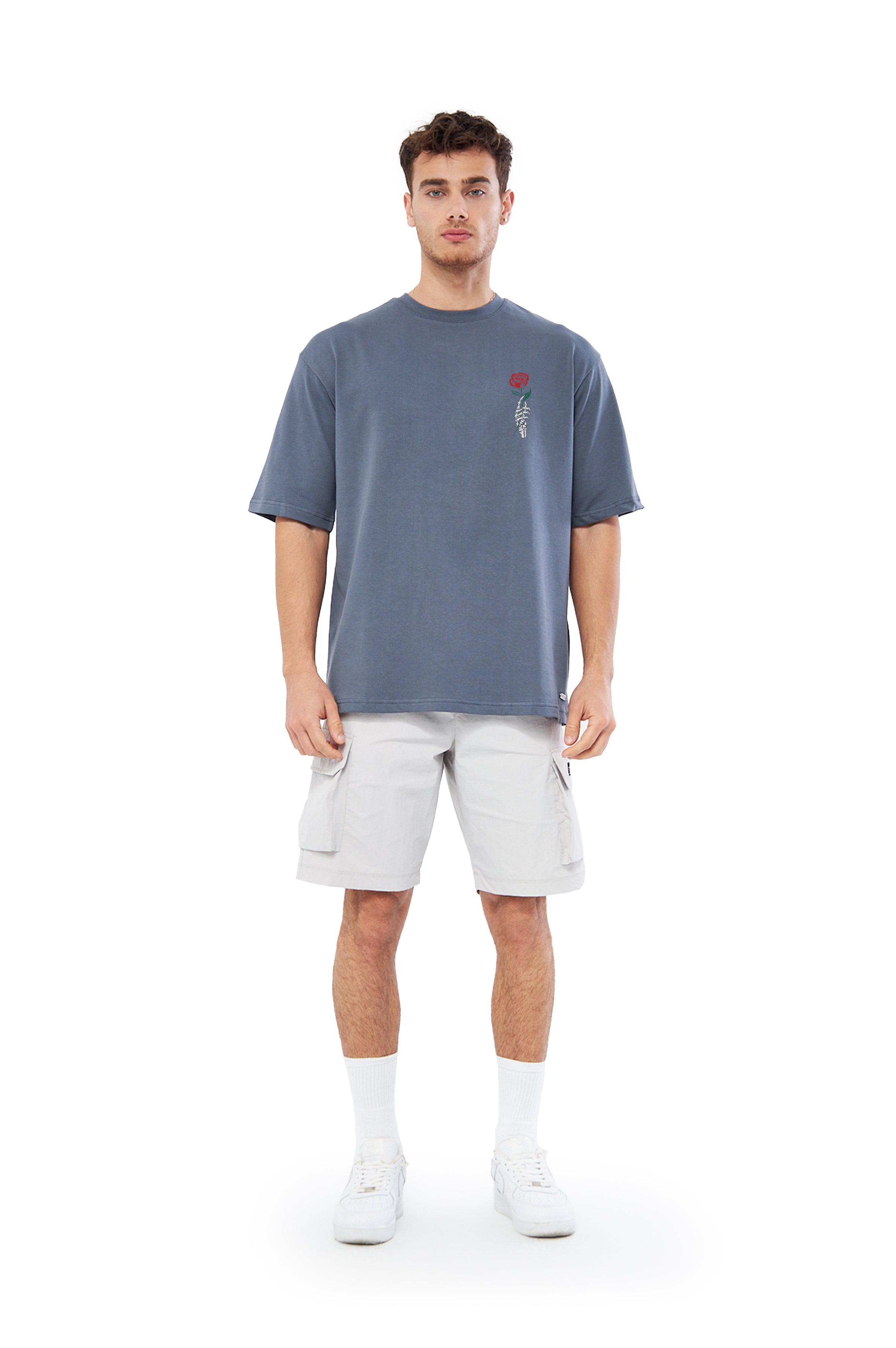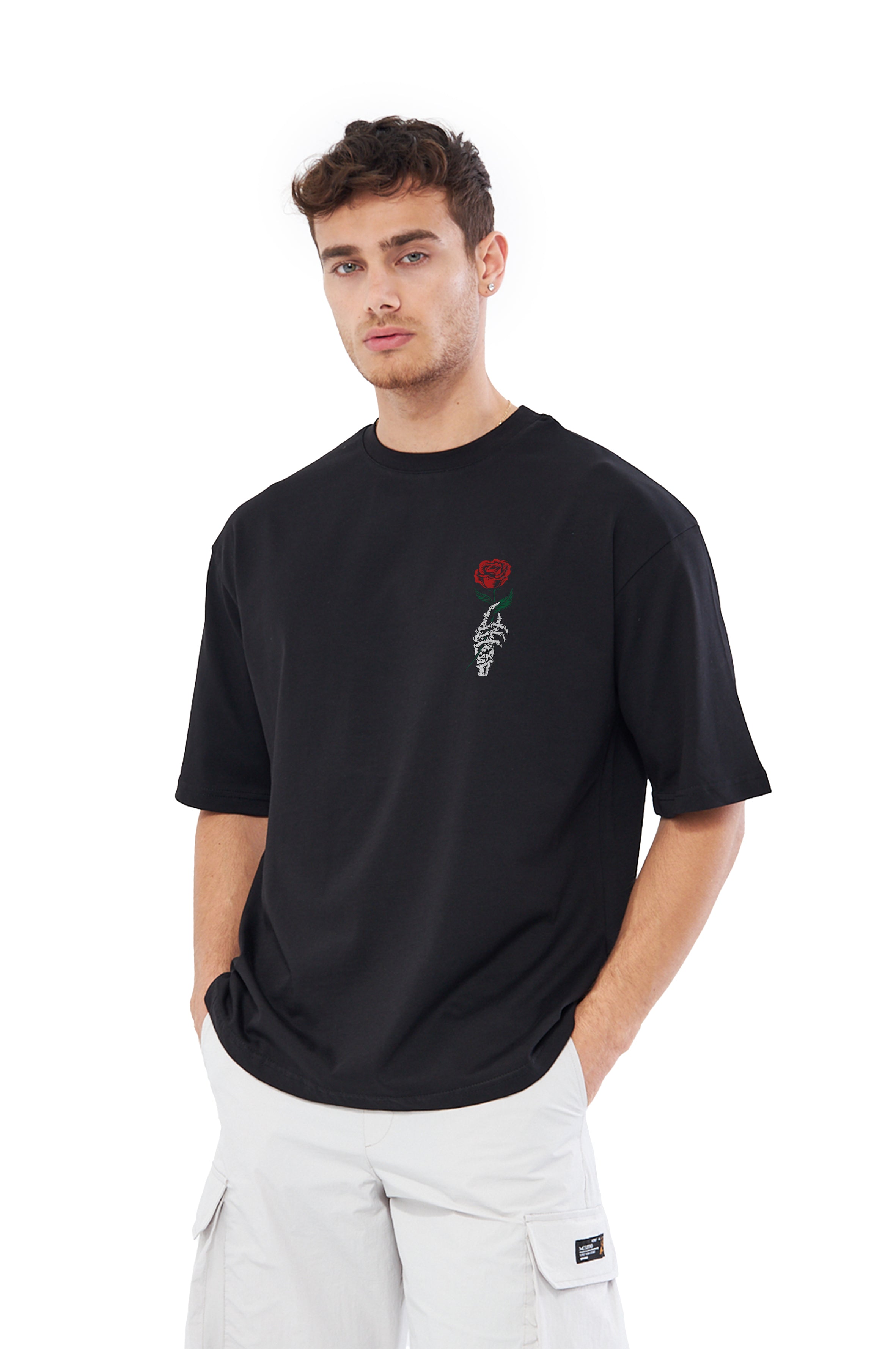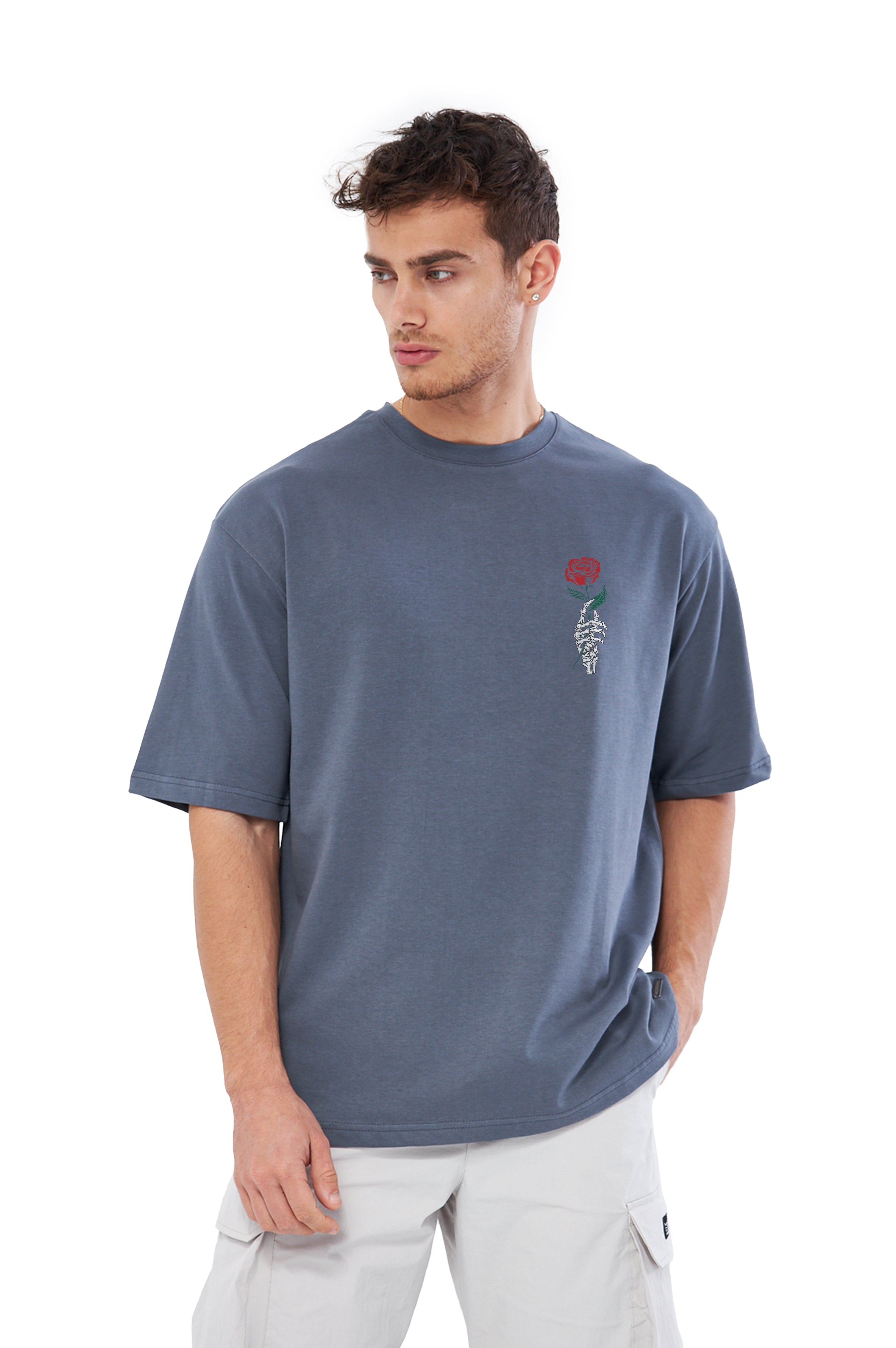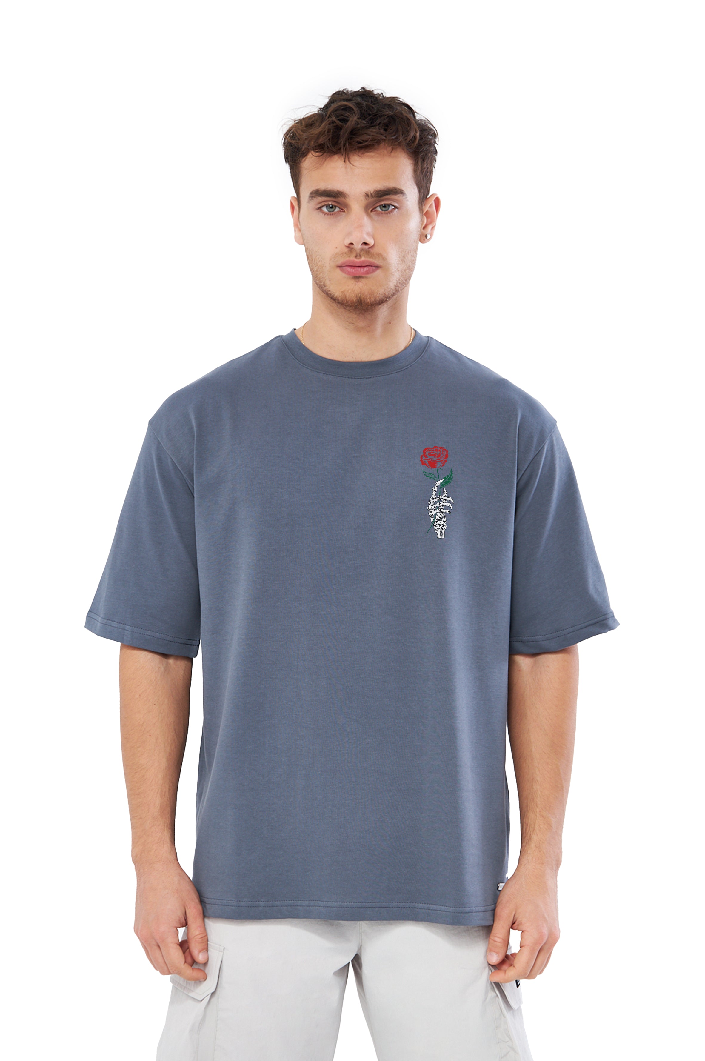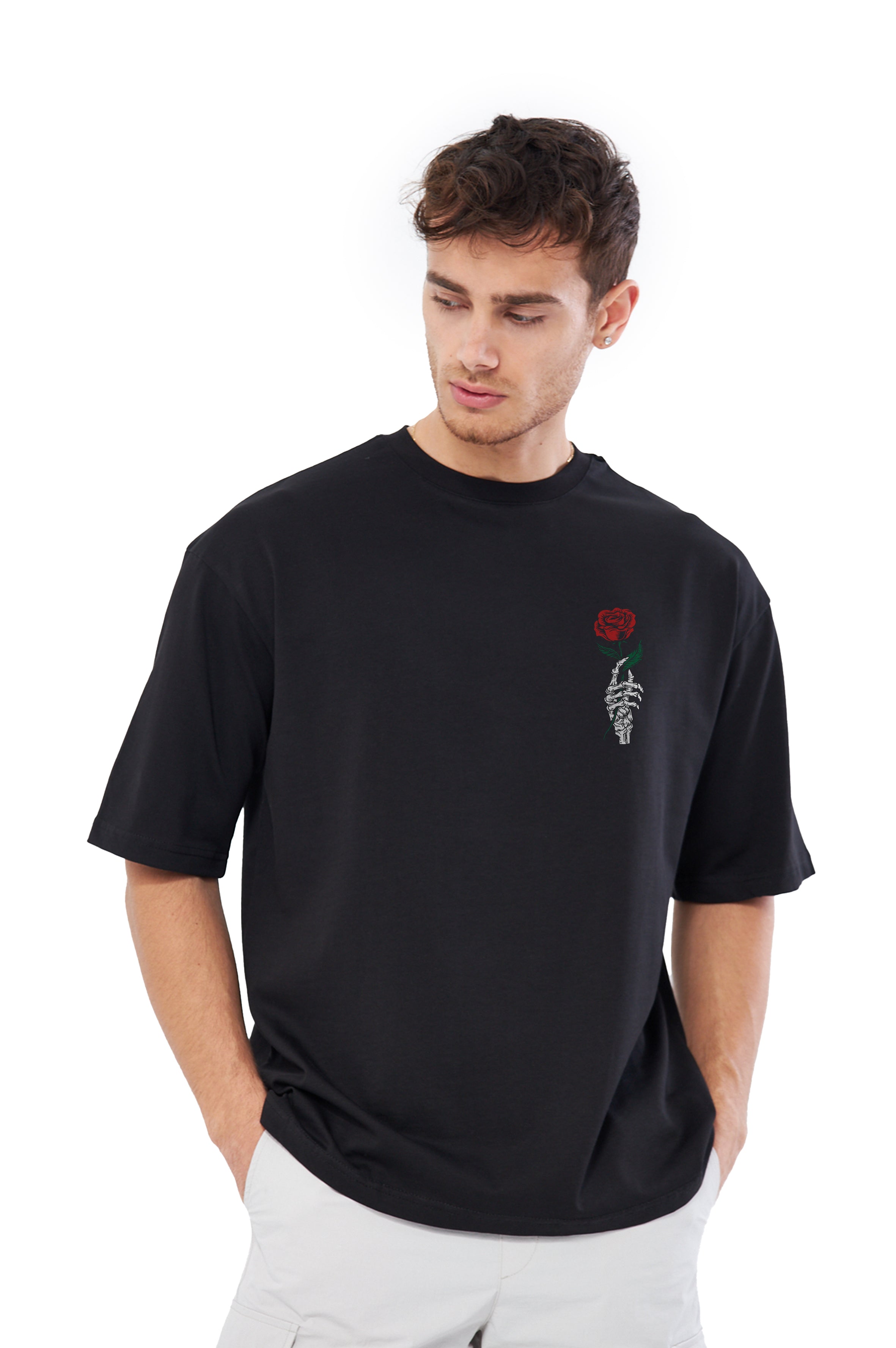 Mesfeno Men’s Skeleton Flower Printed Oversized T-Shirt – 100% Cotton, Organic Heavyweight Fabric