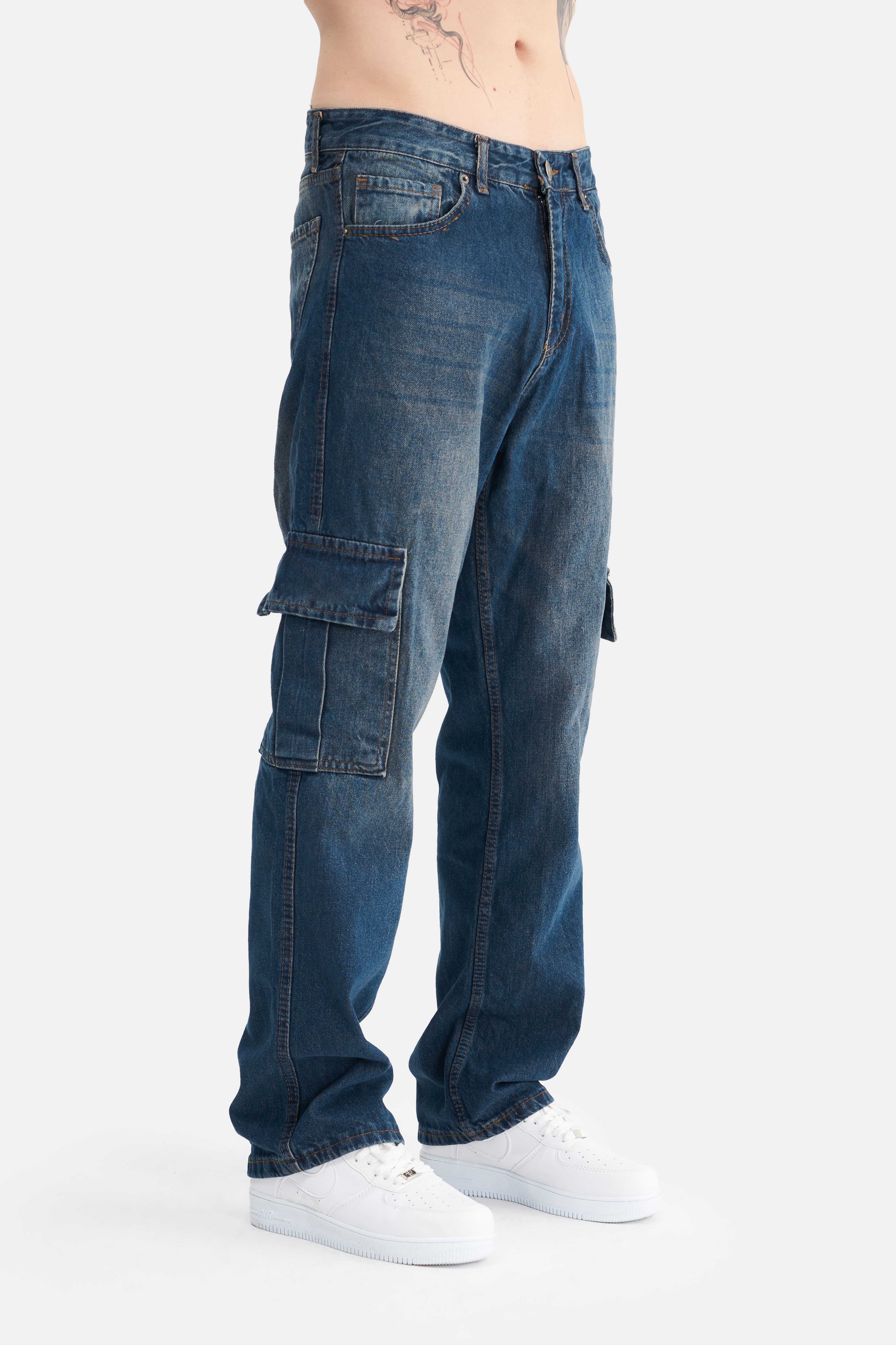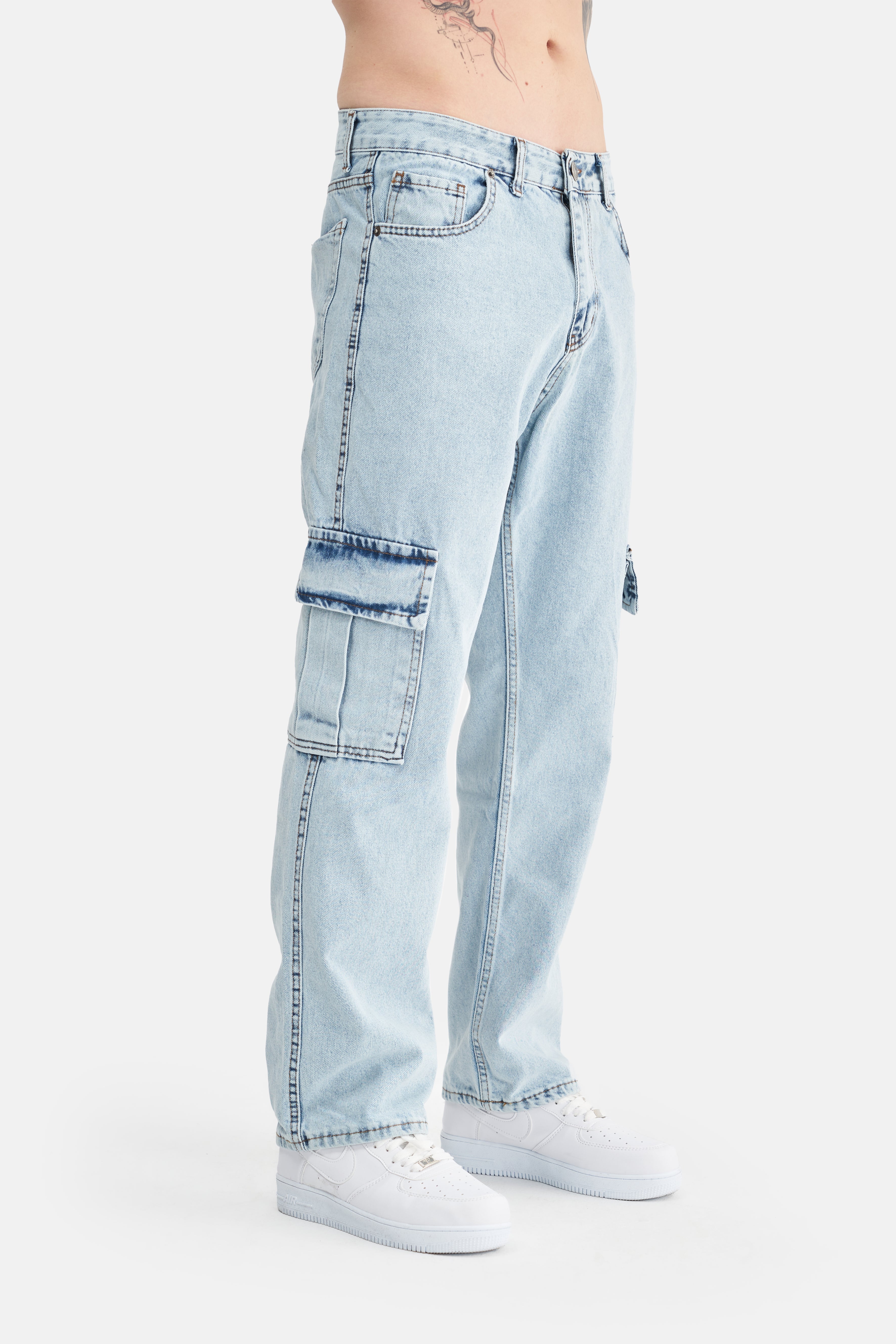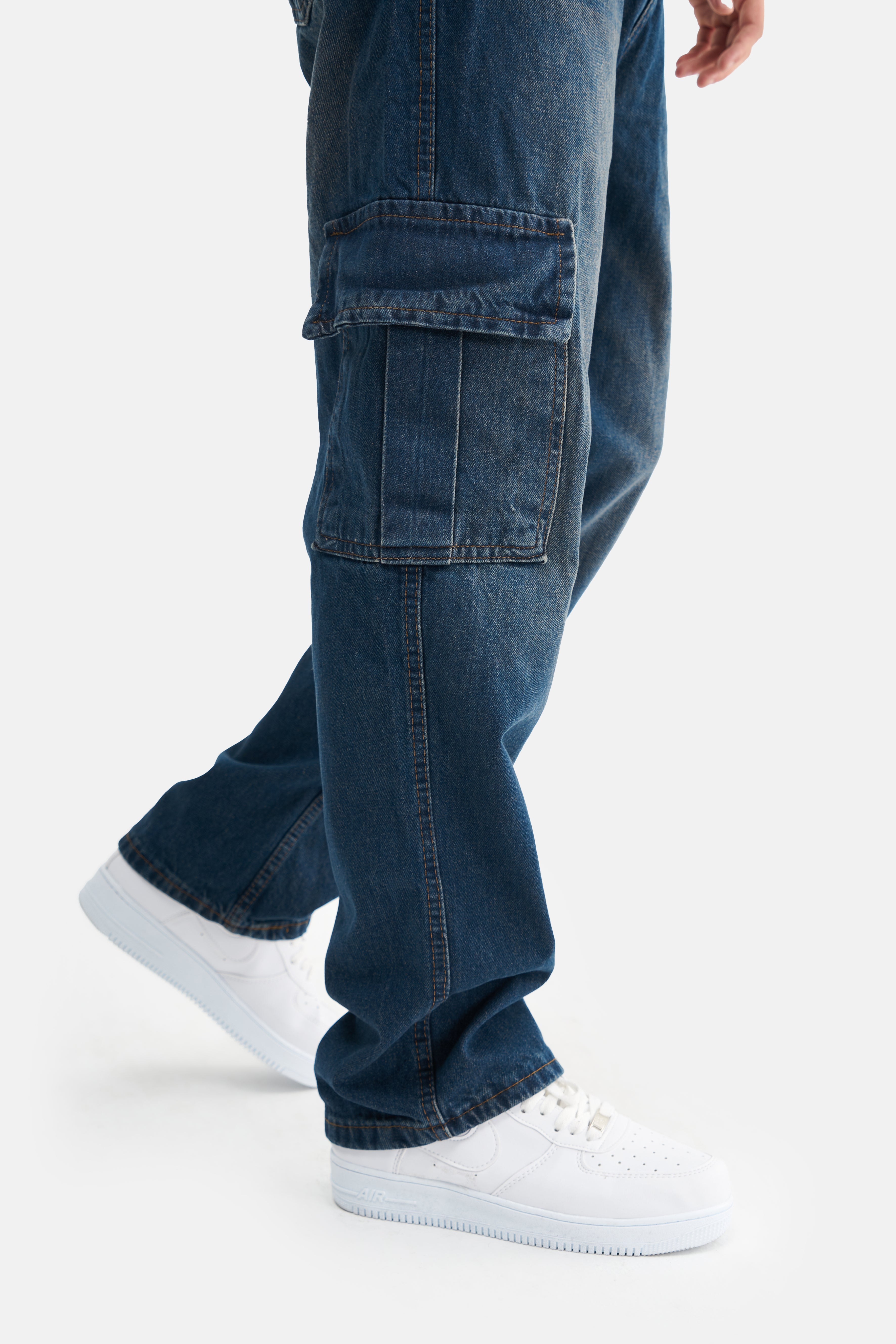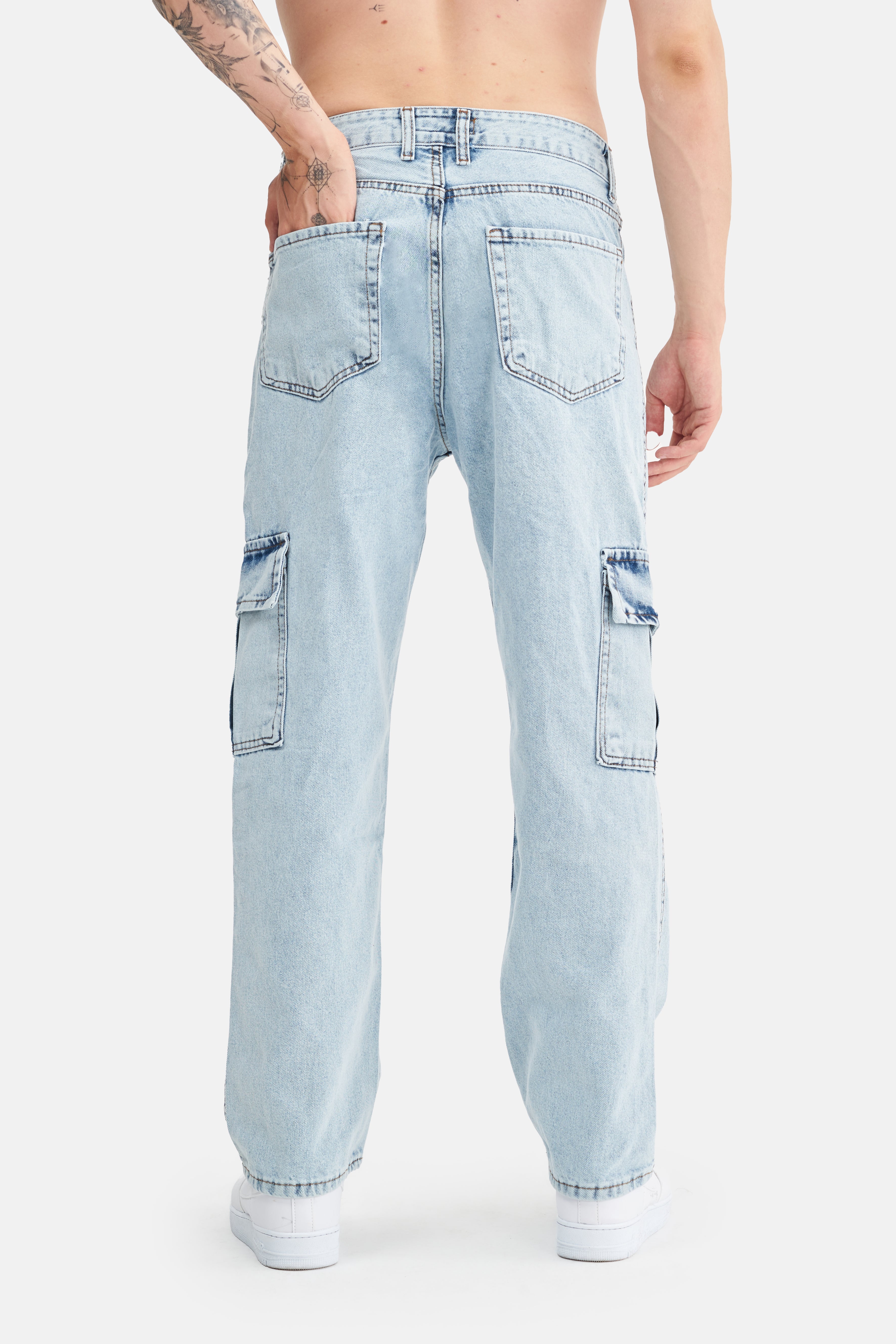 With its loose fit and high waist, these jeans take comfort to the next level, offering freedom of movement. Made from 100% cotton, they feature a breathable and soft texture, providing comfort throughout the day. The absence of Lycra gives them a natural feel, while the cargo pockets add both a stylish appearance and extra functionality.