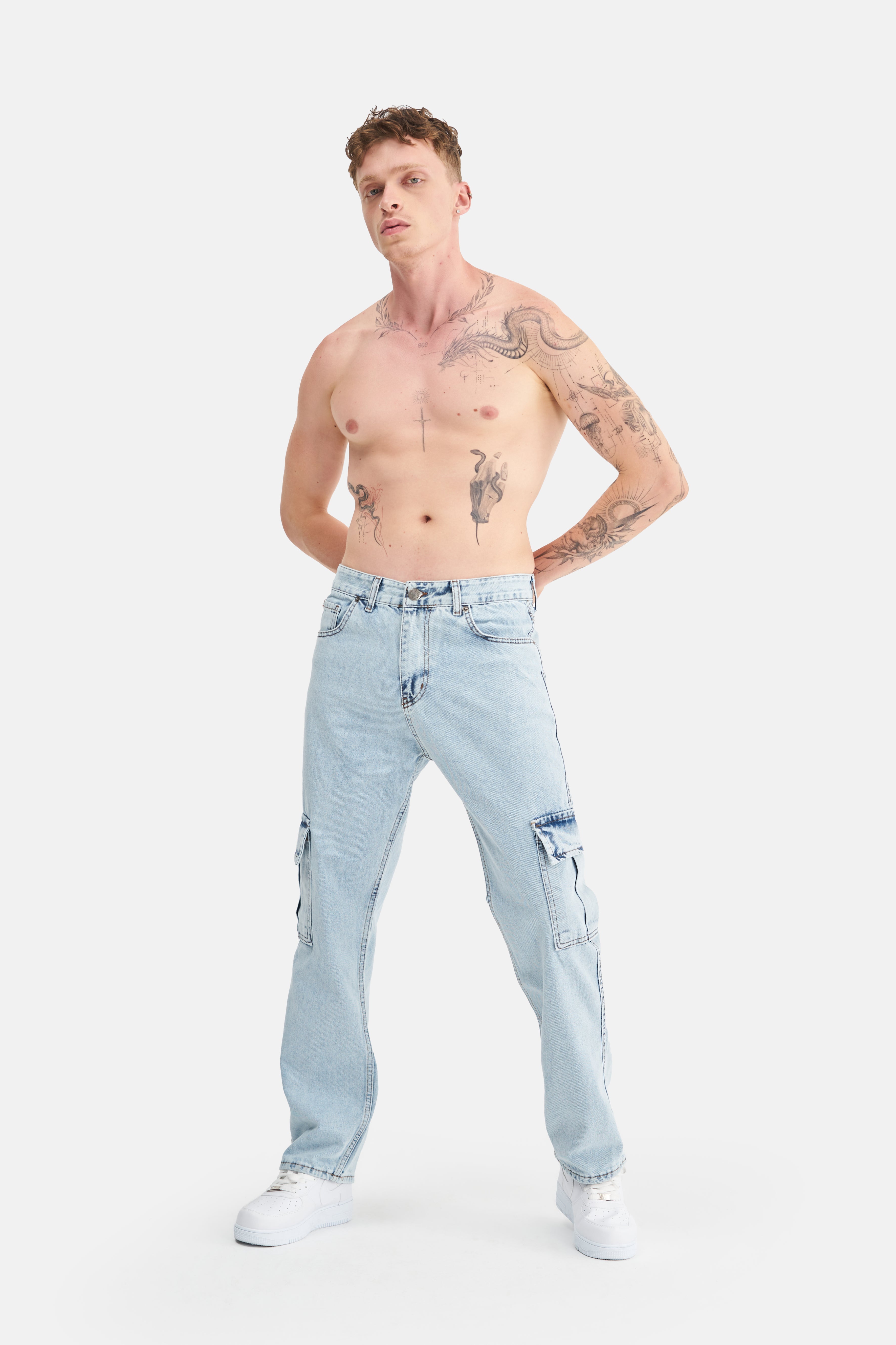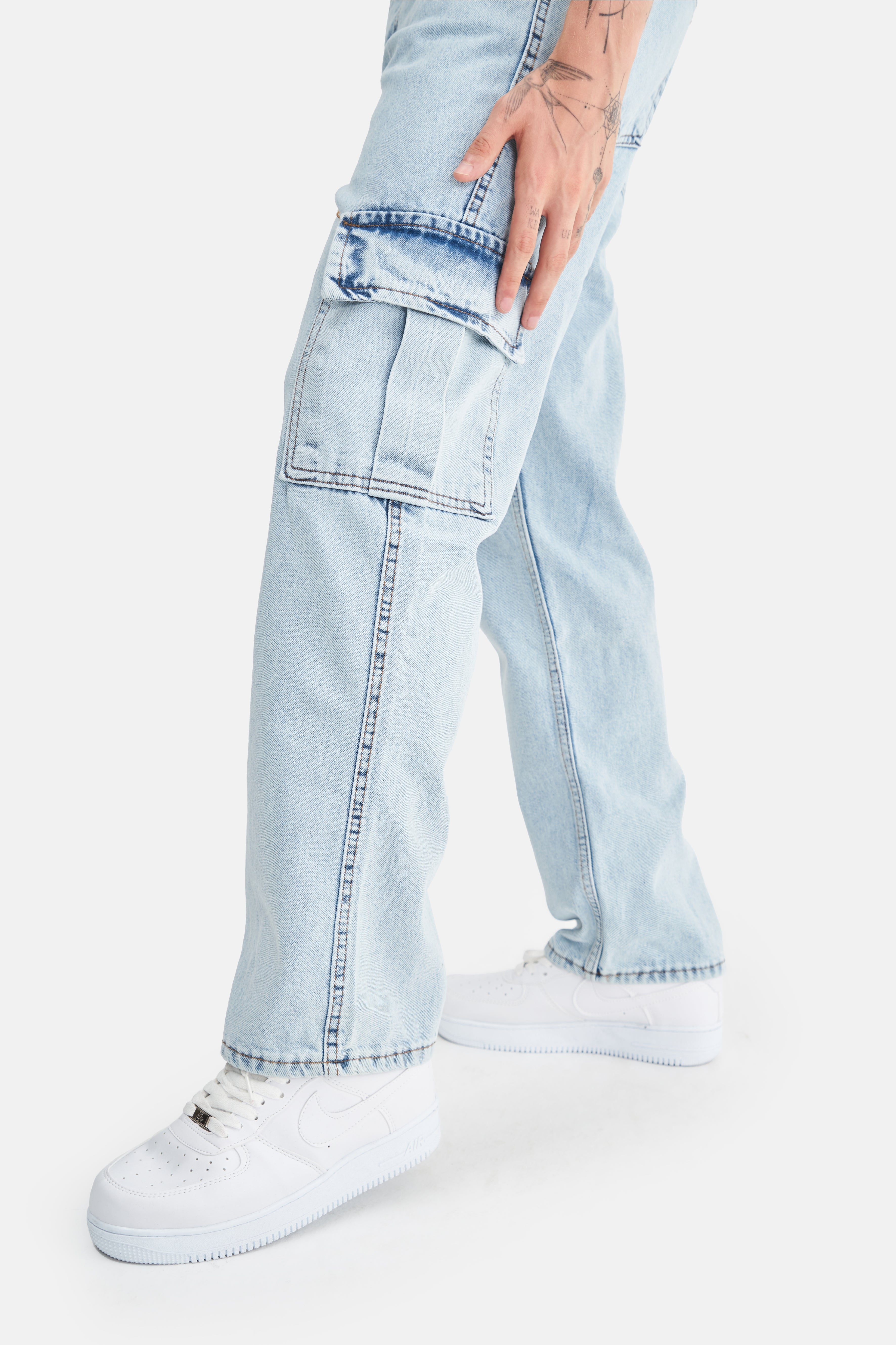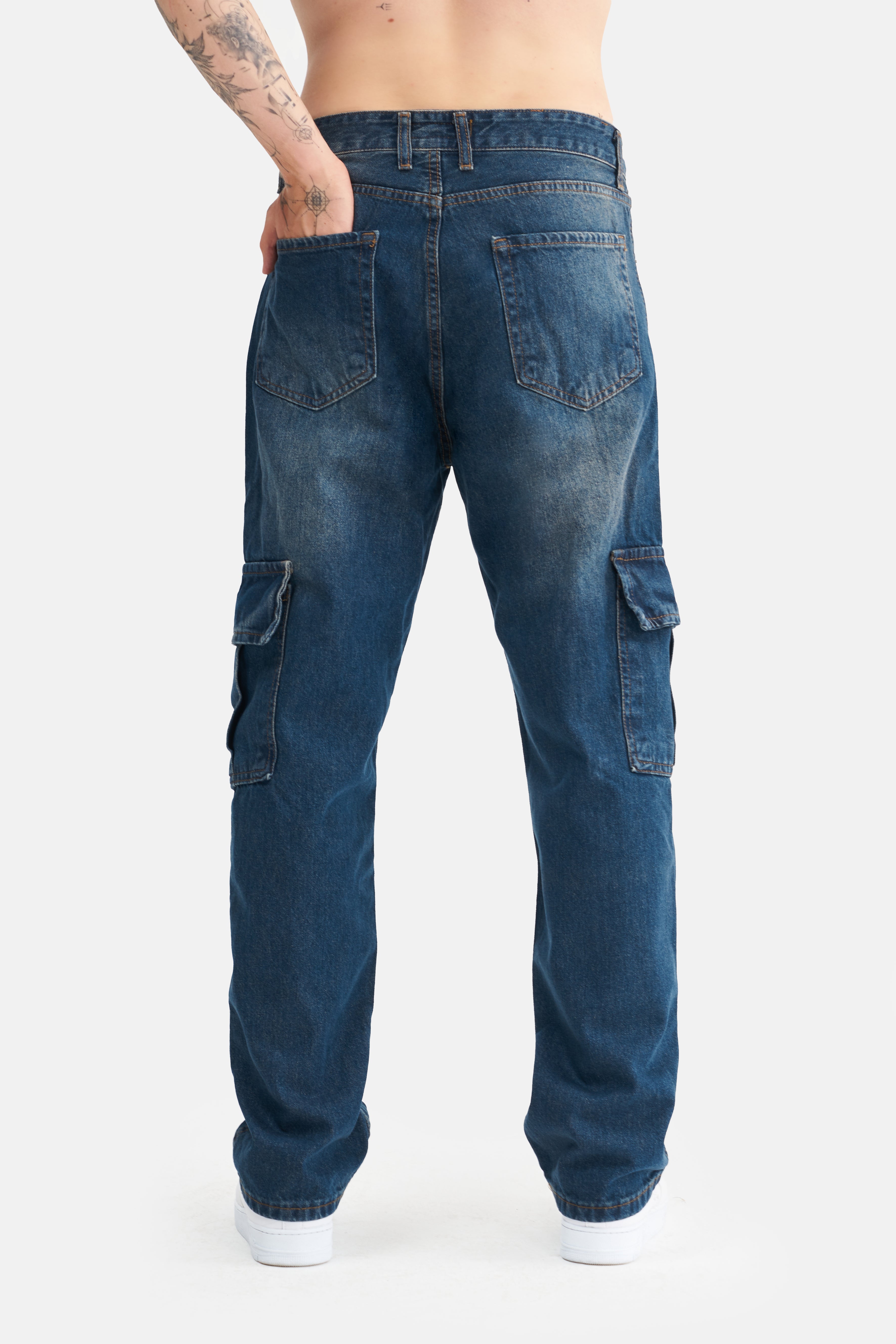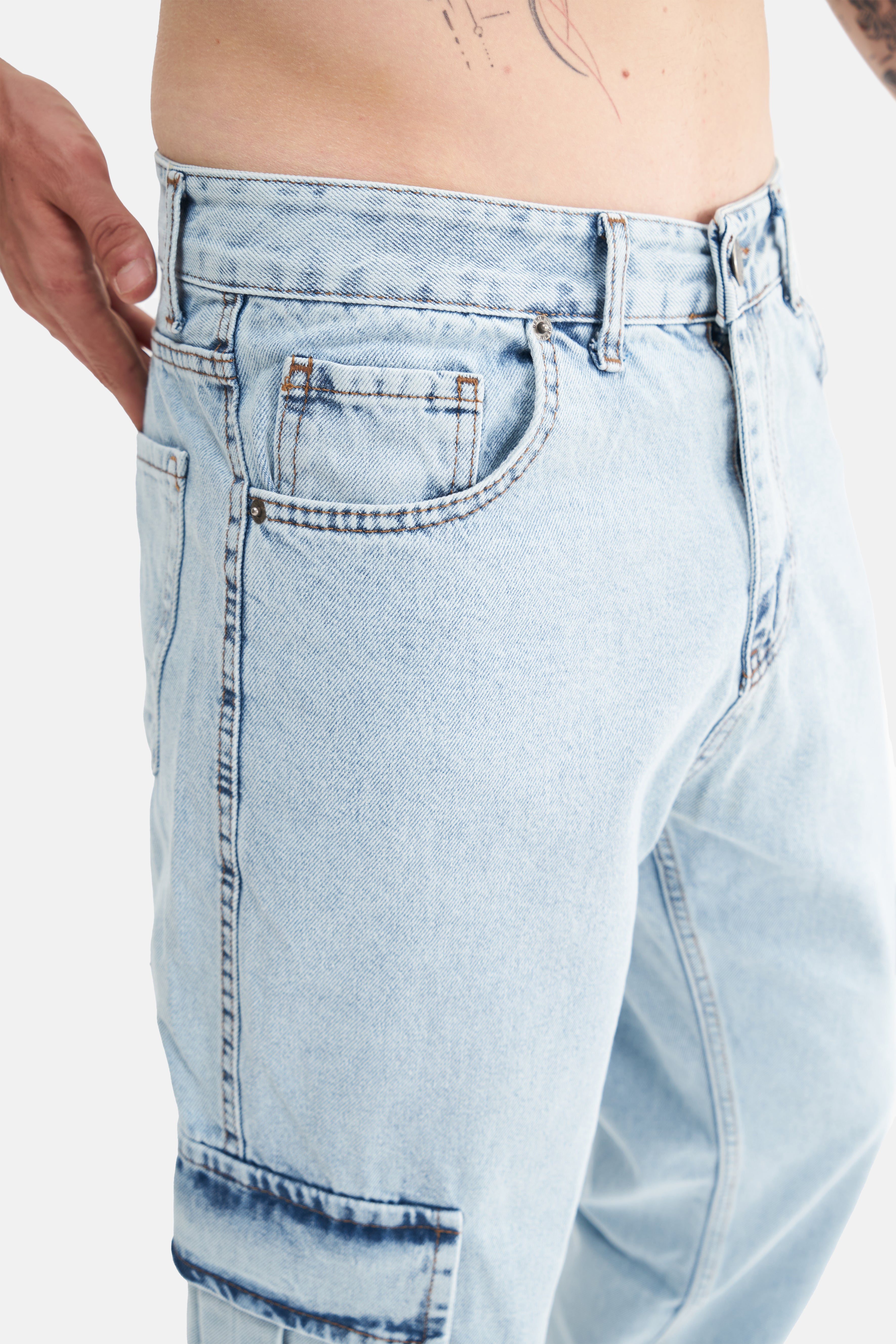 With its loose fit and high waist, these jeans take comfort to the next level, offering freedom of movement. Made from 100% cotton, they feature a breathable and soft texture, providing comfort throughout the day. The absence of Lycra gives them a natural feel, while the cargo pockets add both a stylish appearance and extra functionality.