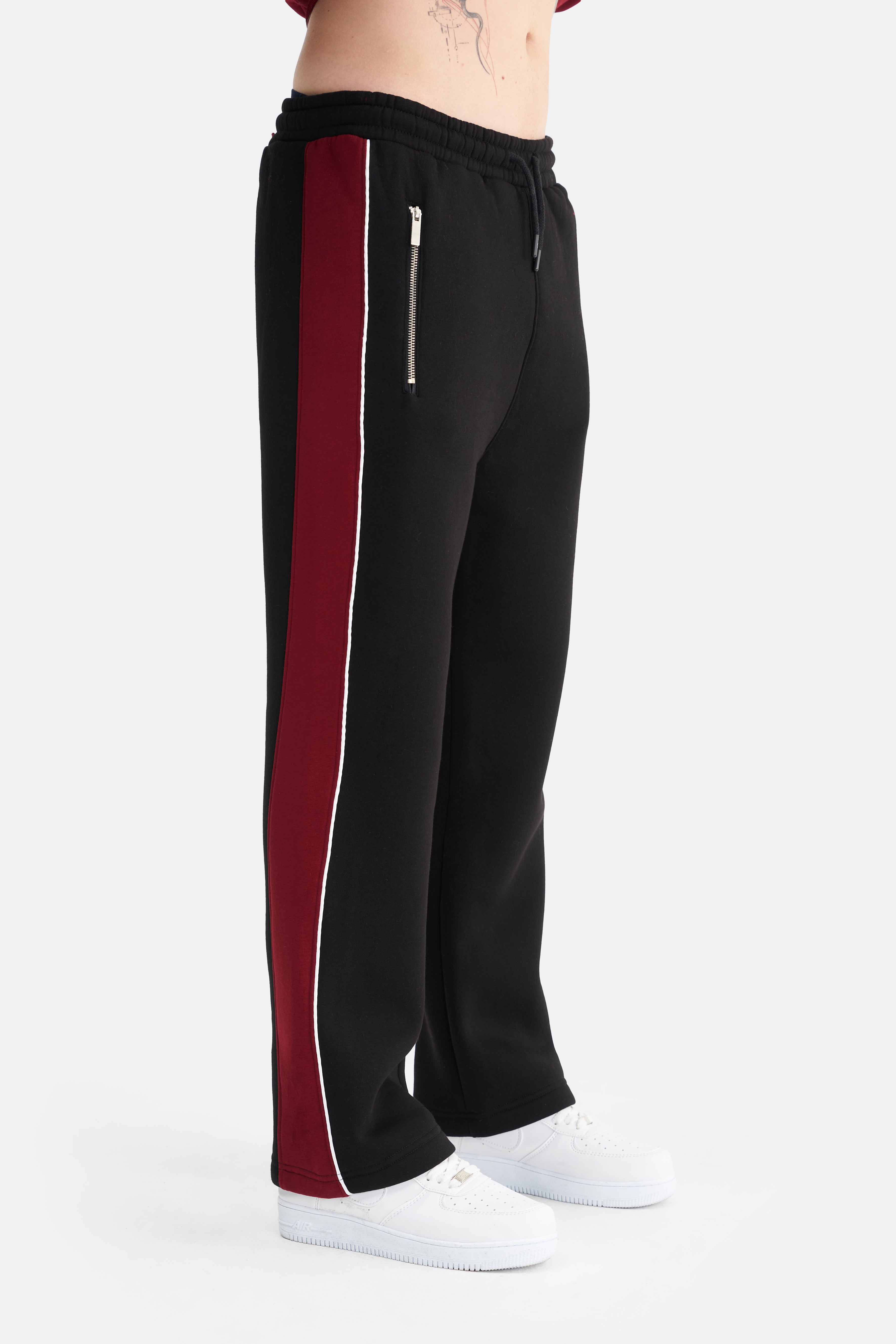 These baggy pants with contrasting side stripes and zipper pockets are perfect for creating street-style combinations in your daily life. With a soft fabric and elastic waistband, they offer both comfort and style.