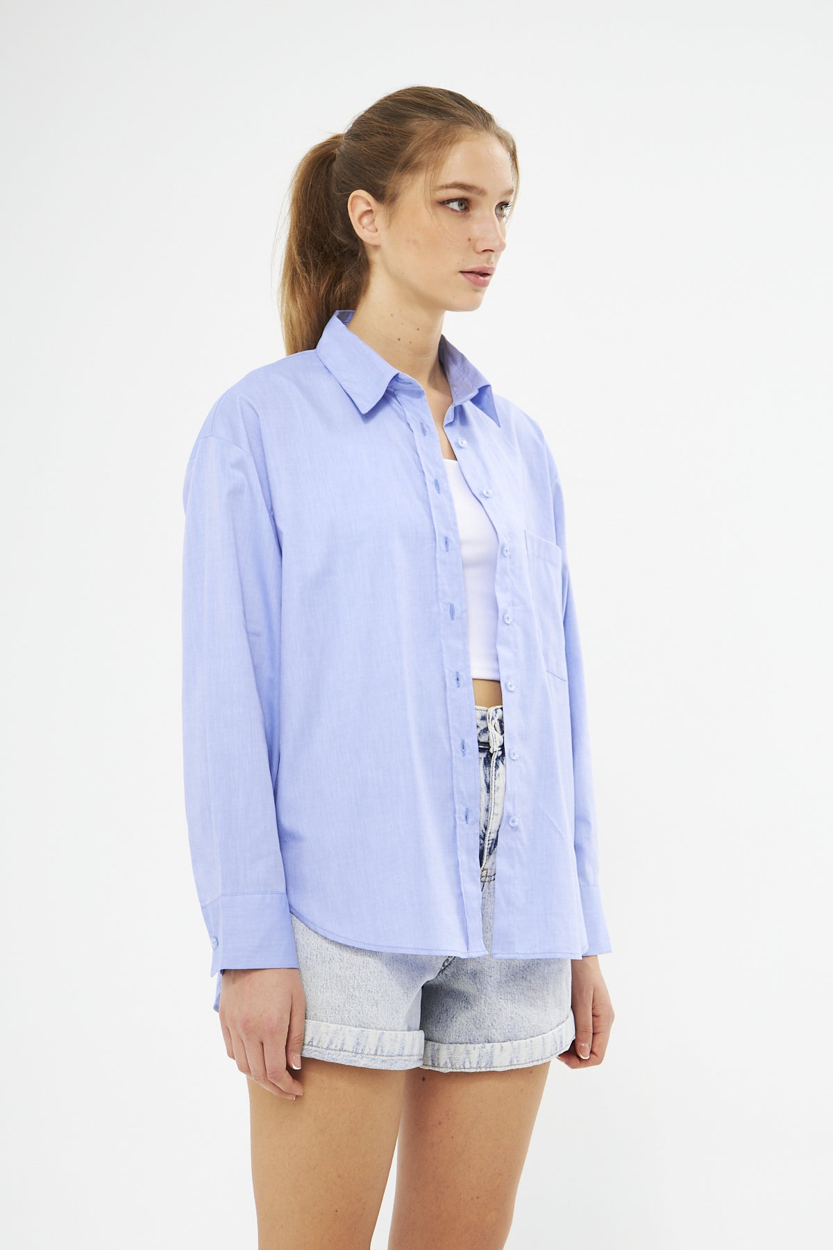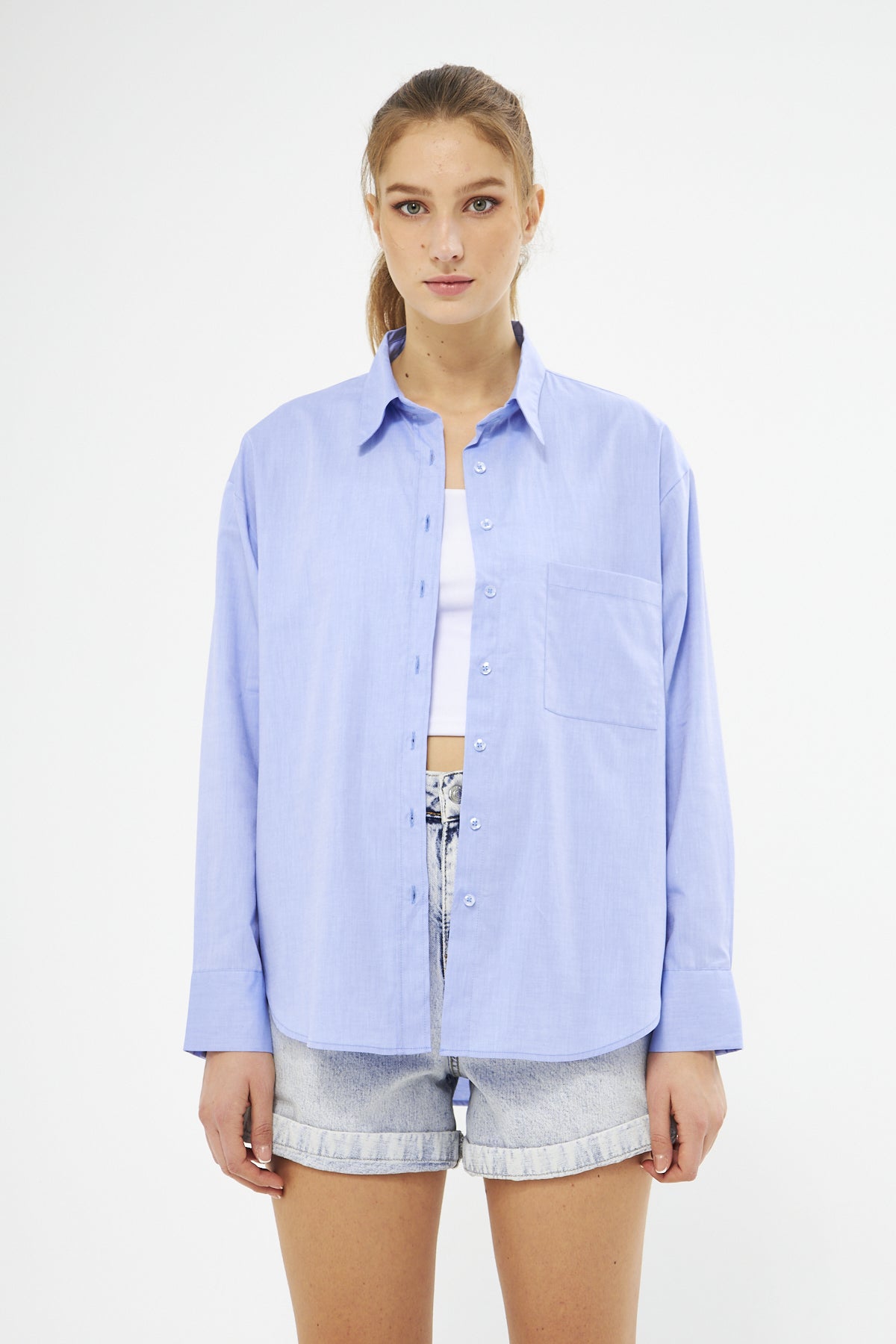 The Mesfeno Hooded Denim Fabric Women’s Sweatshirt is made from 100% cotton denim fabric, offering both durability and style. With an oversized fit, it ensures comfort throughout the day. The zip-up front makes it easy to wear, while the kangaroo pockets keep your hands warm. The drawstring hood adds a trendy element, and the elastic waistband helps retain warmth during colder weather.