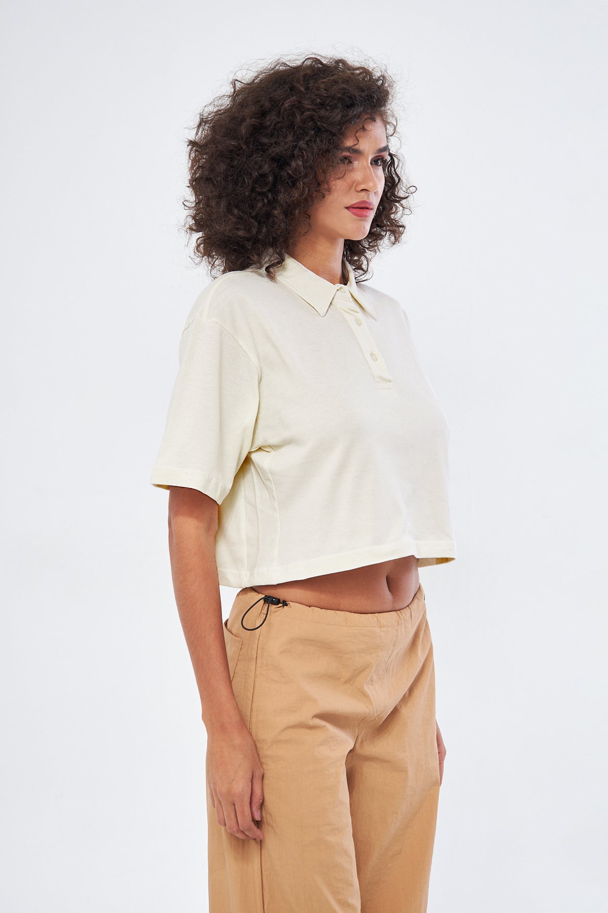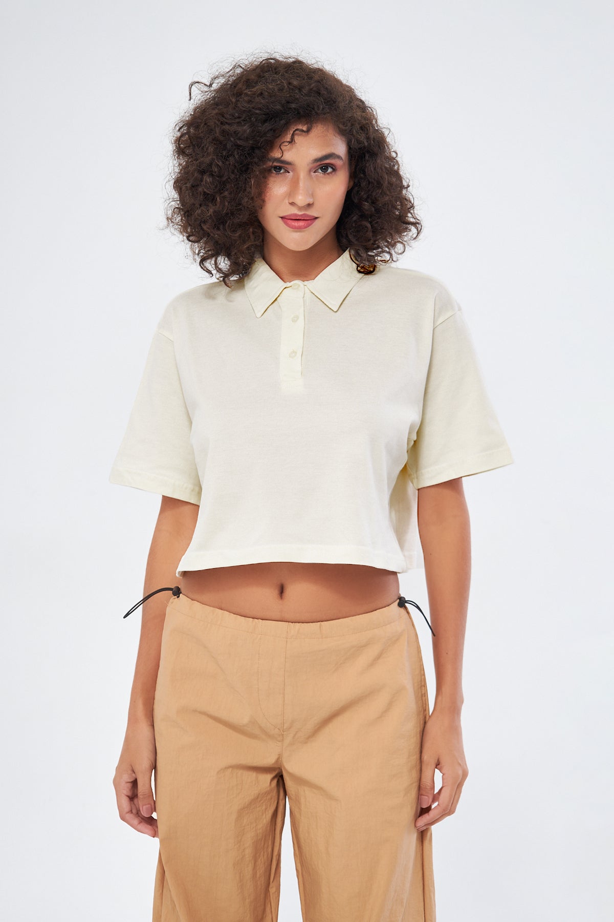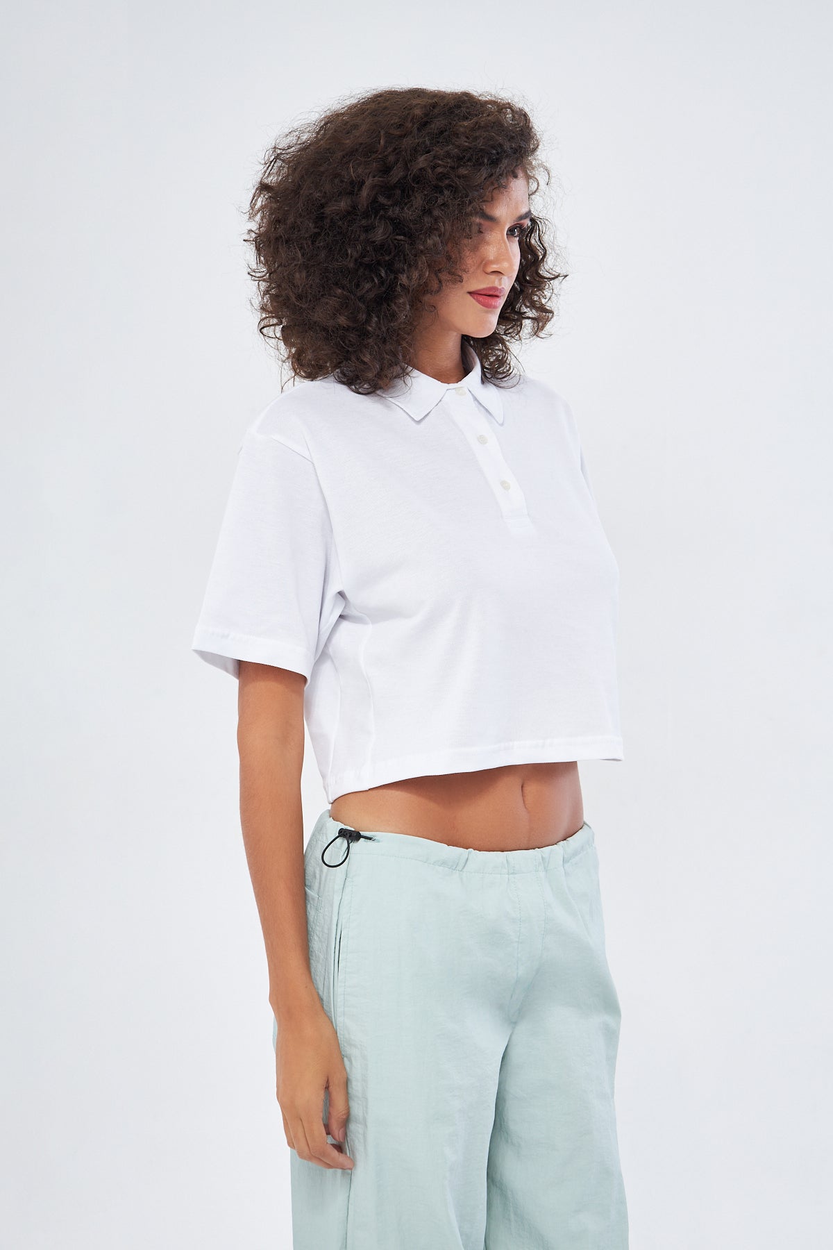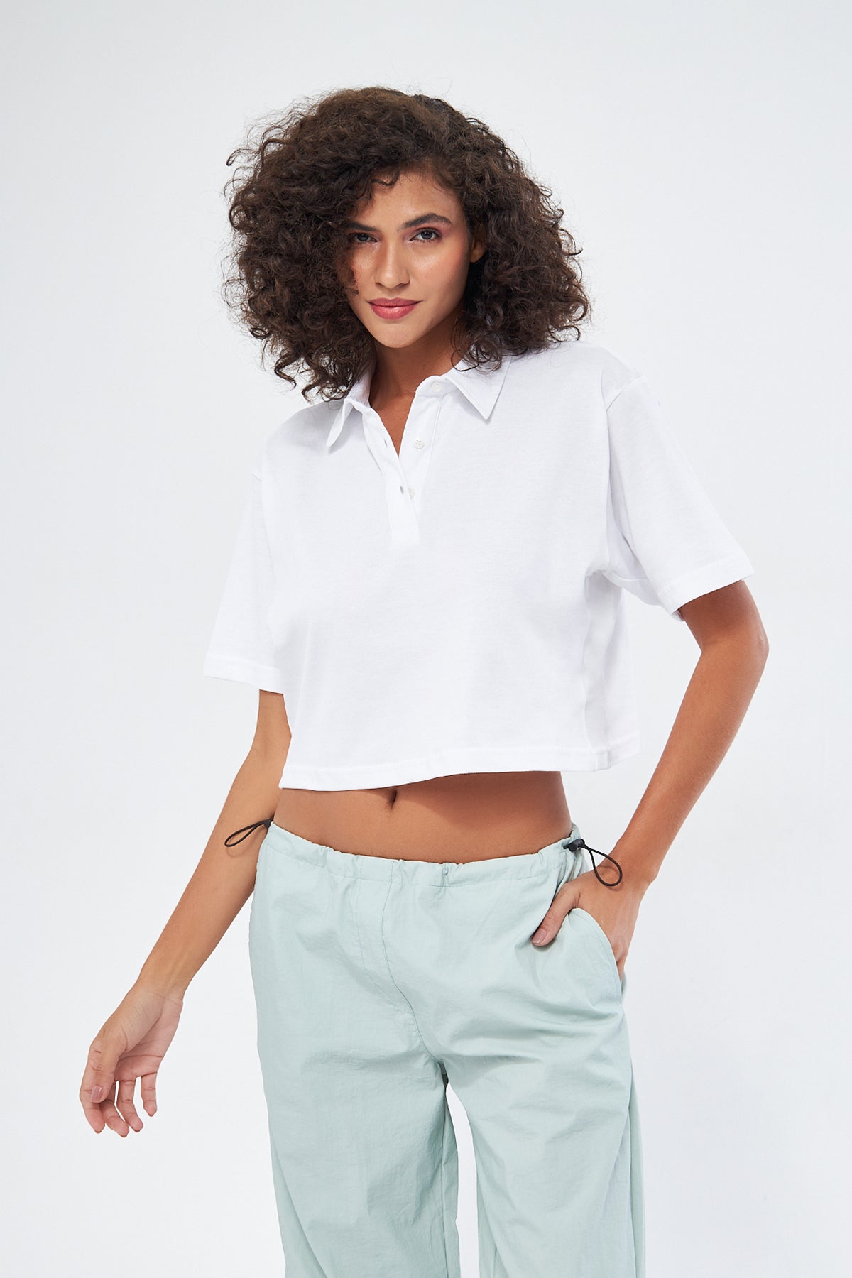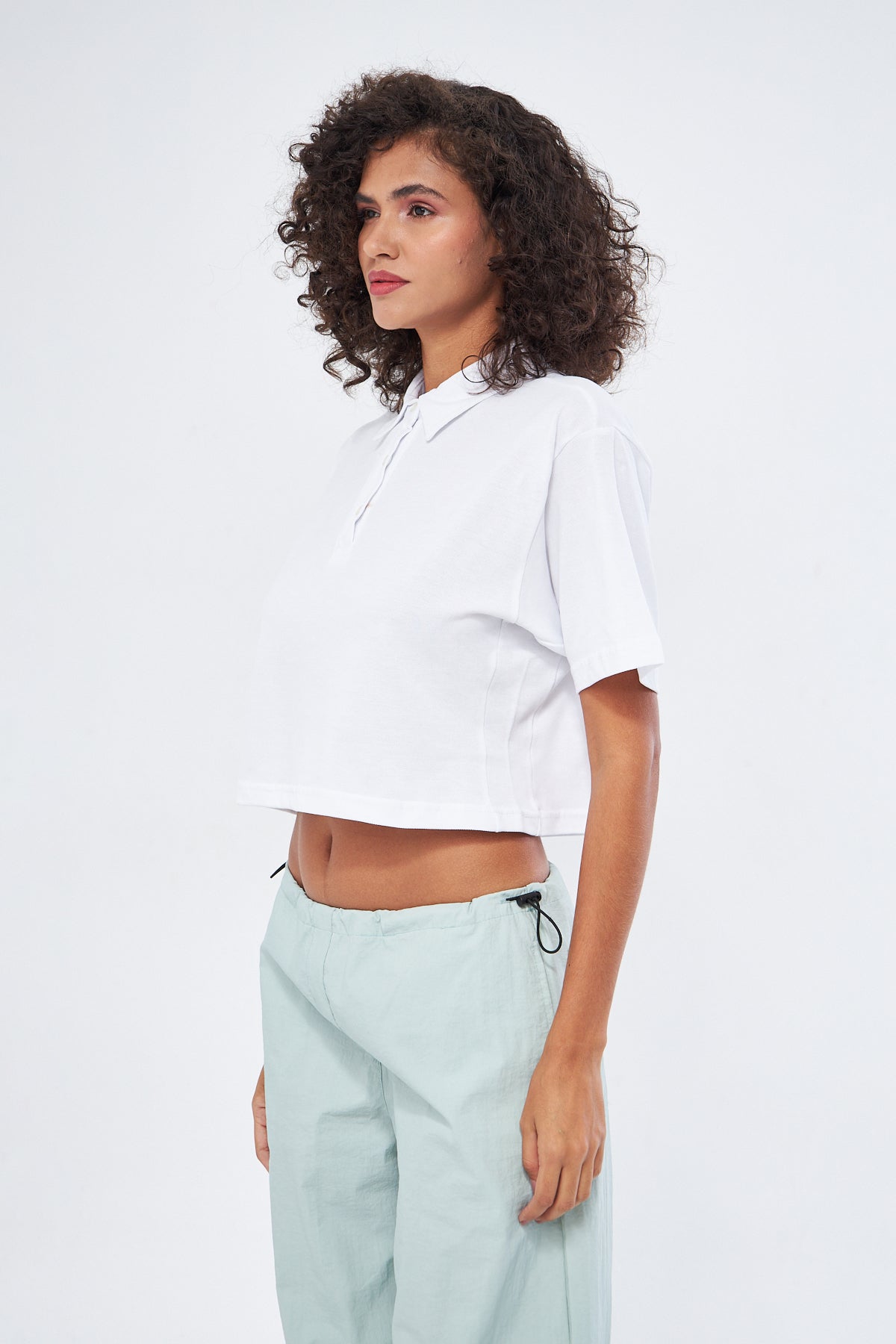 Elevate your everyday style with the Mesfeno Women's Basic Oversize Crop Polo Collar T-Shirt – where fashion meets comfort effortlessly.