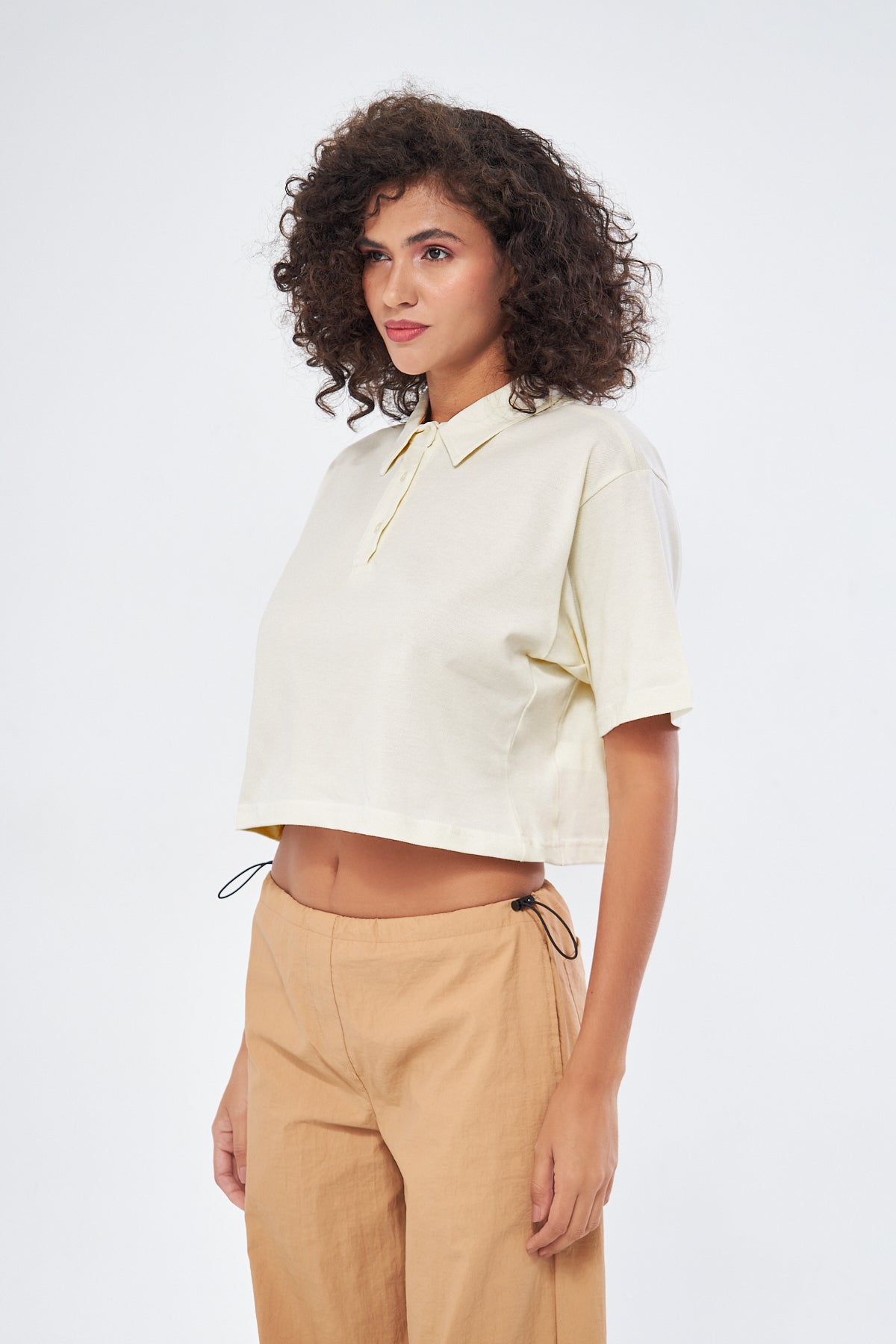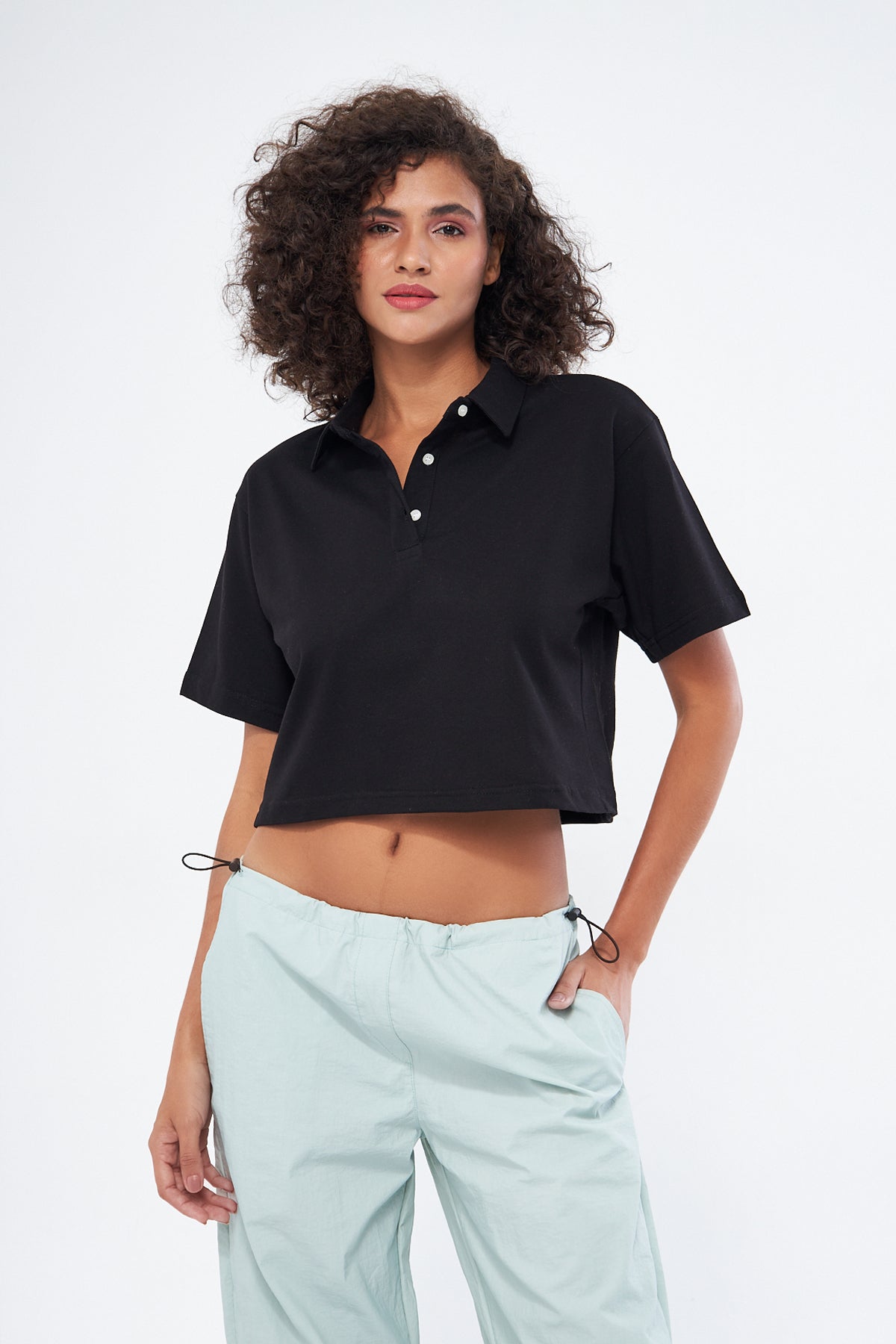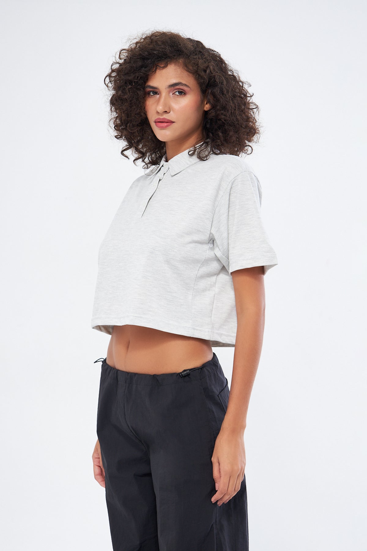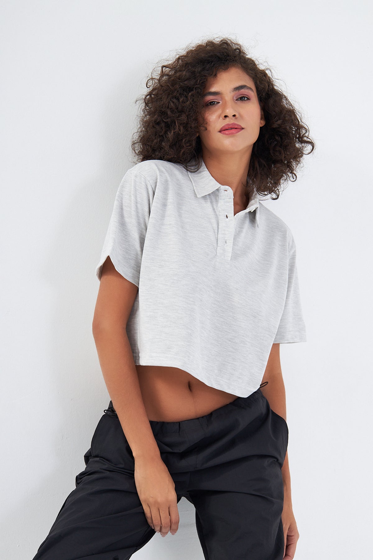 Elevate your everyday style with the Mesfeno Women's Basic Oversize Crop Polo Collar T-Shirt – where fashion meets comfort effortlessly.
