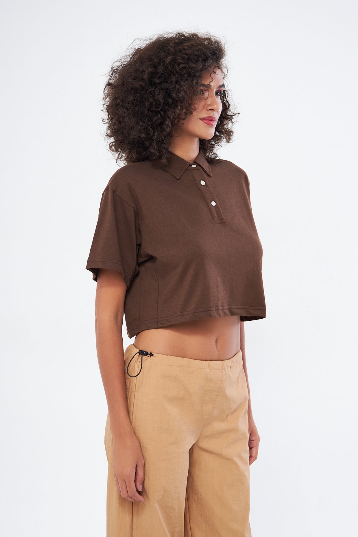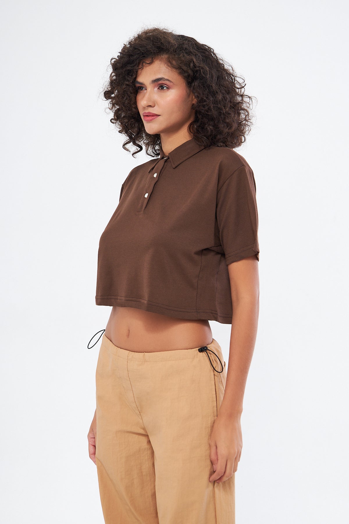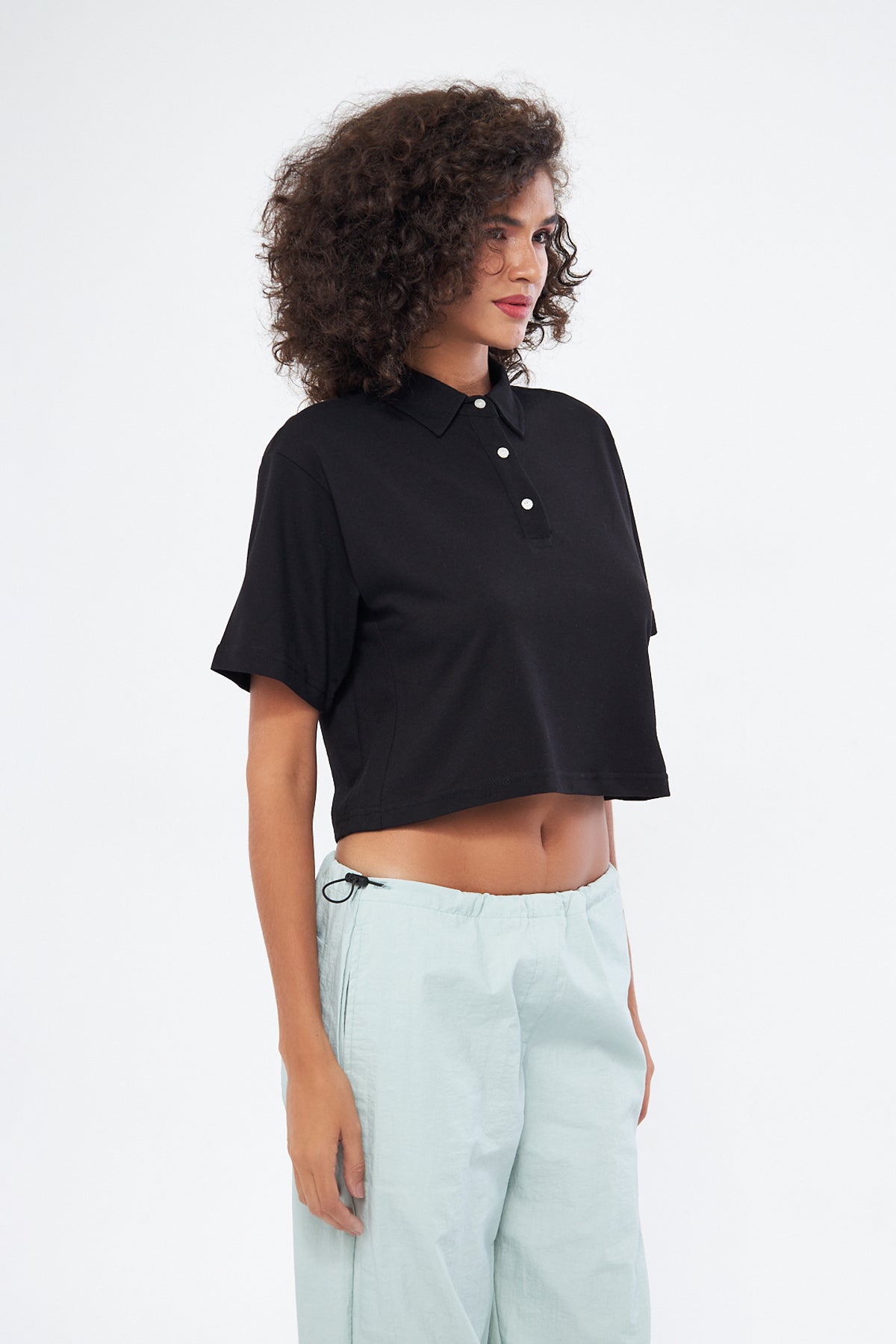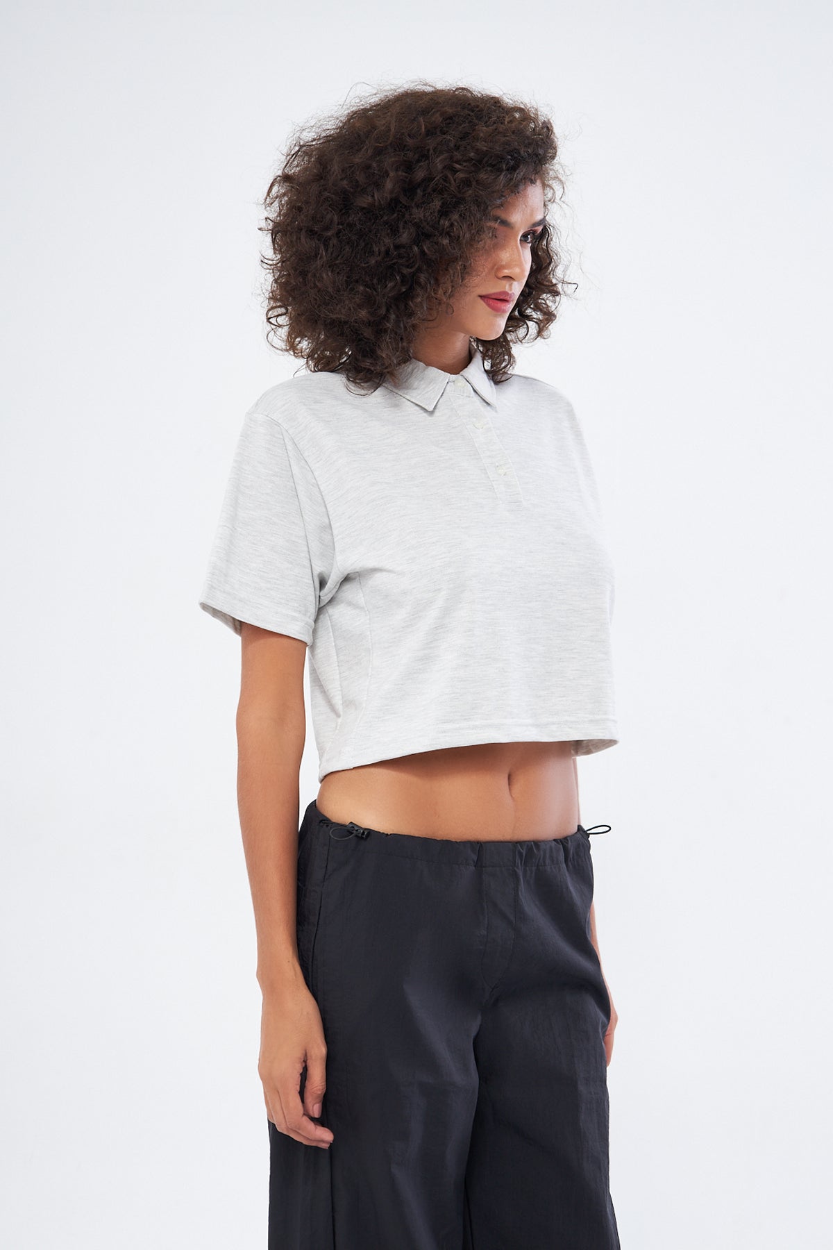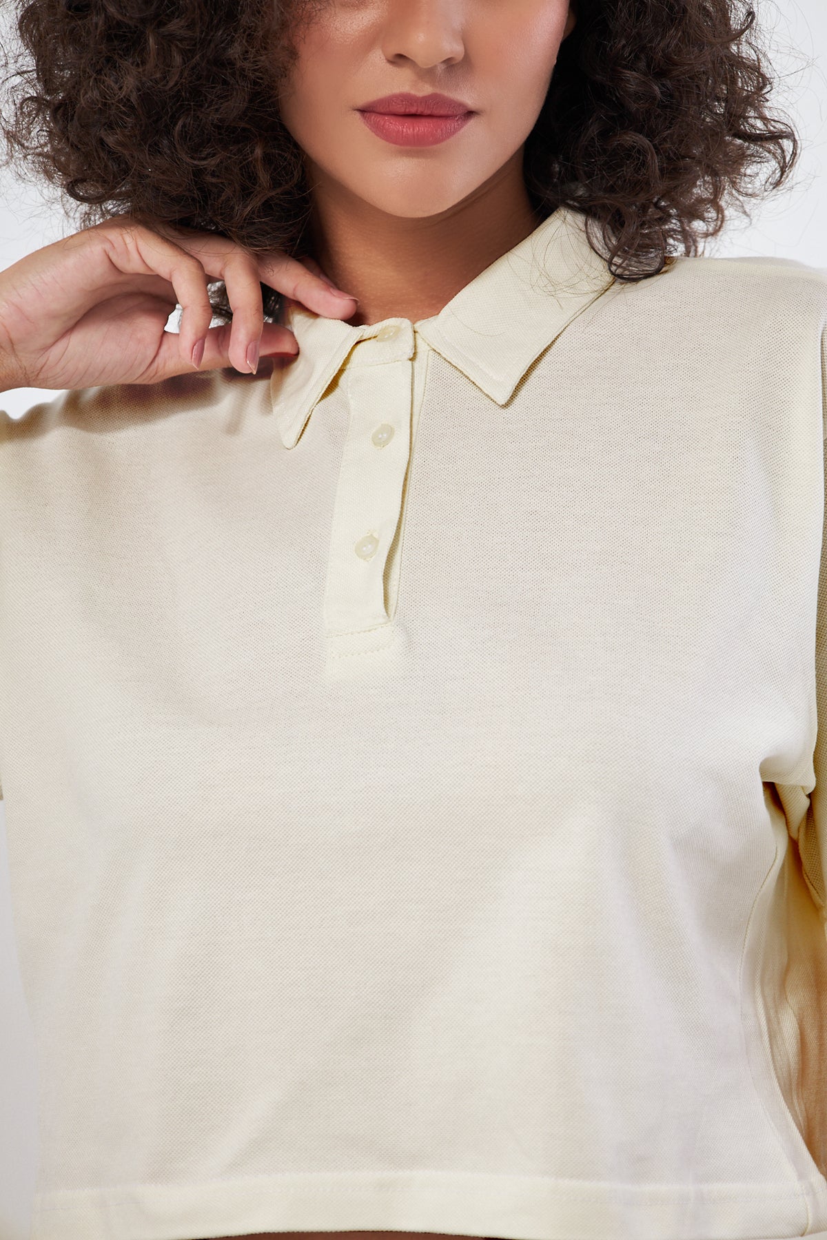 Elevate your everyday style with the Mesfeno Women's Basic Oversize Crop Polo Collar T-Shirt – where fashion meets comfort effortlessly.