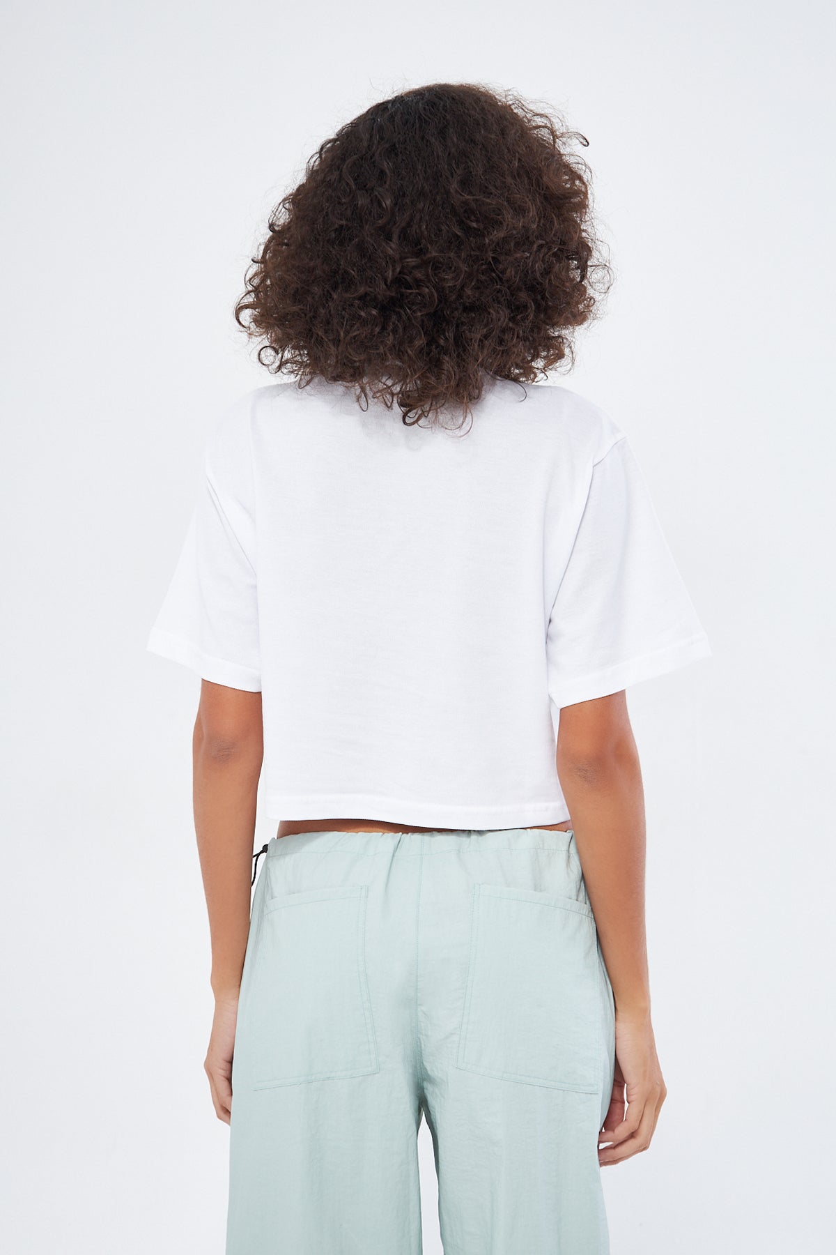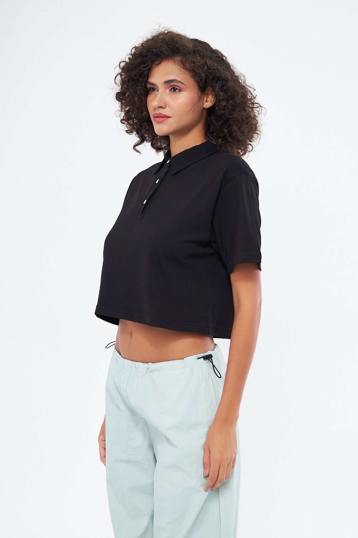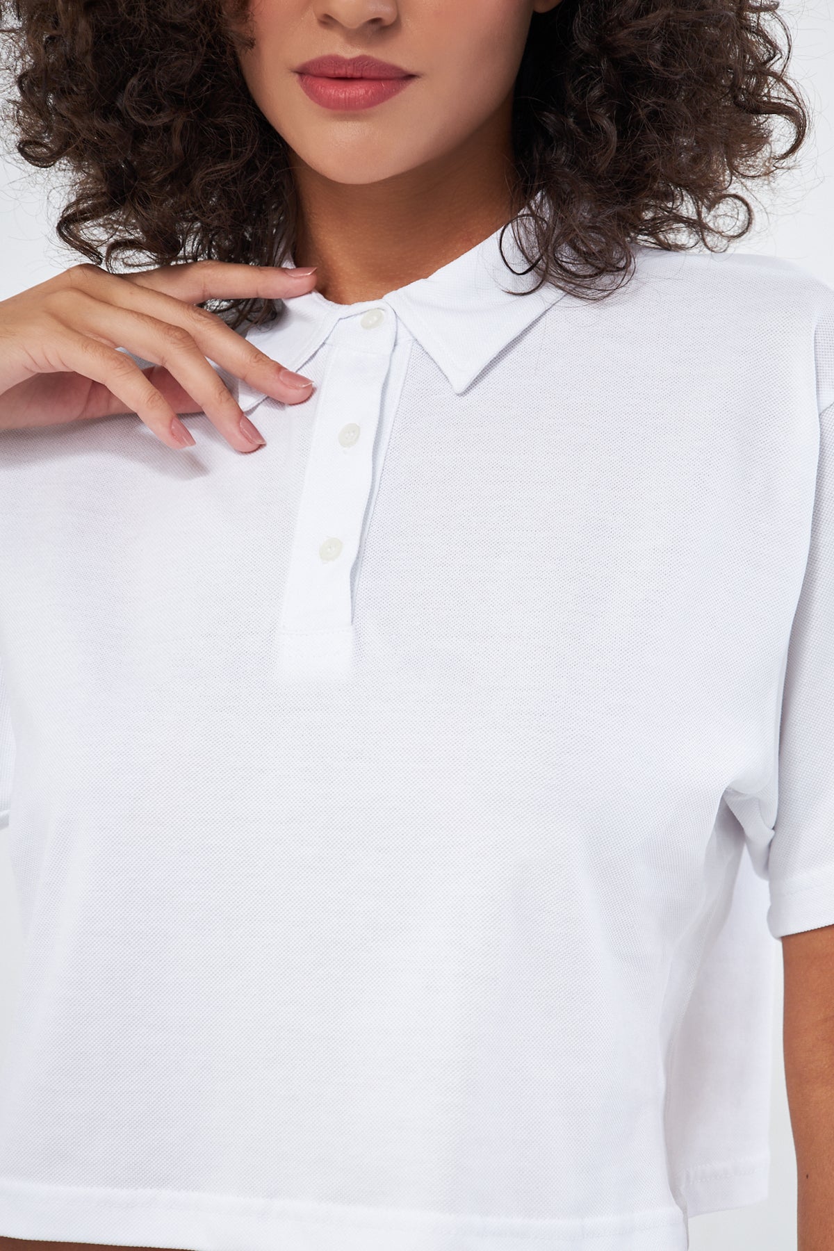 Mesfeno Women's Basic Oversize Crop Polo Collar T-Shirt