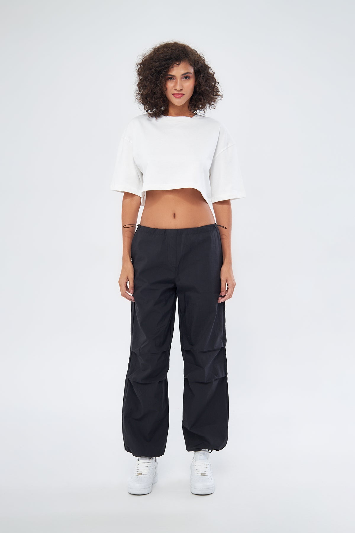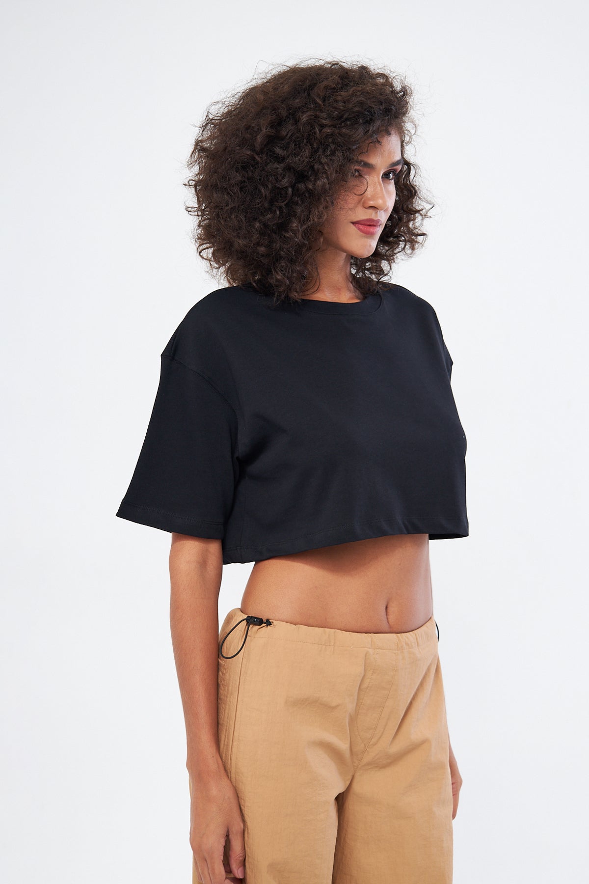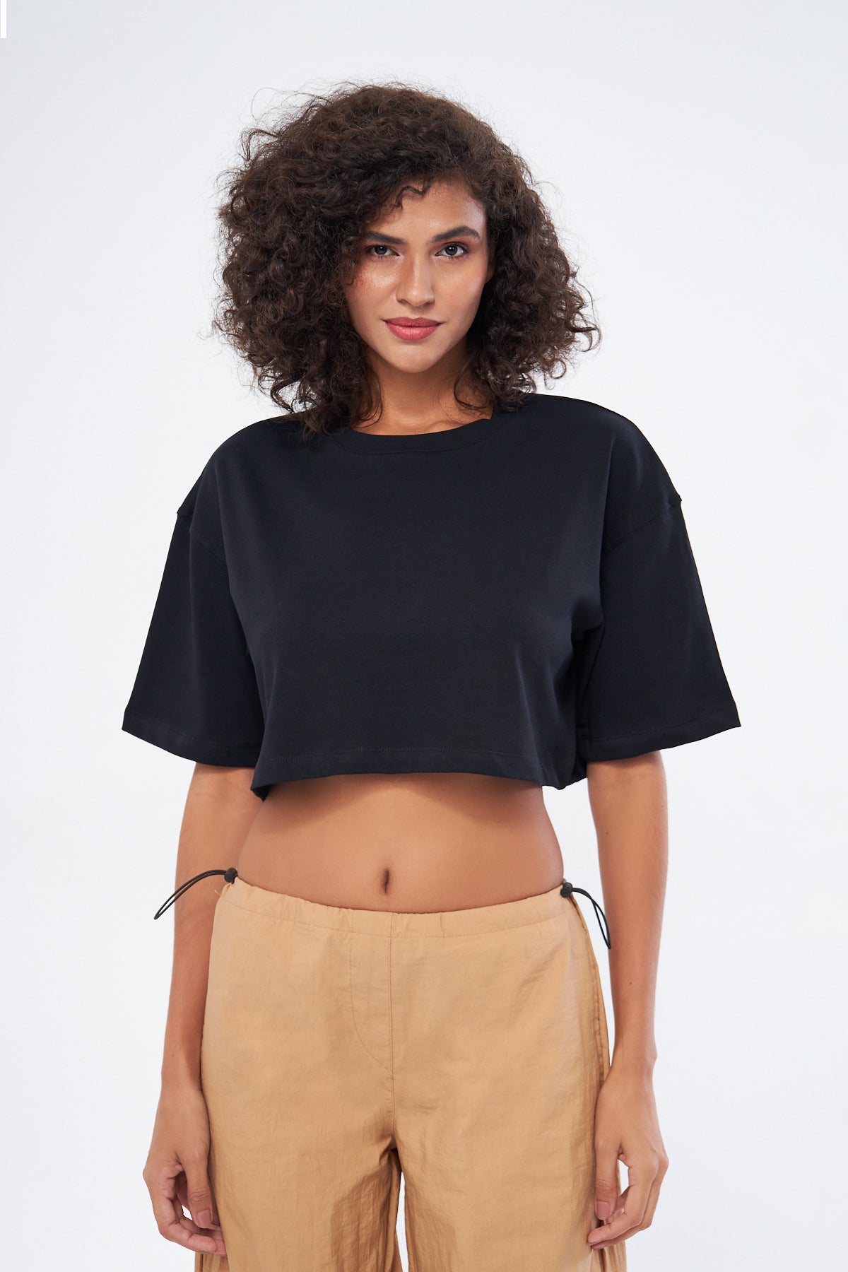 ✔ Oversized & Cropped Fit – A loose, airy silhouette with a trendy cropped cut for a flattering and stylish look.