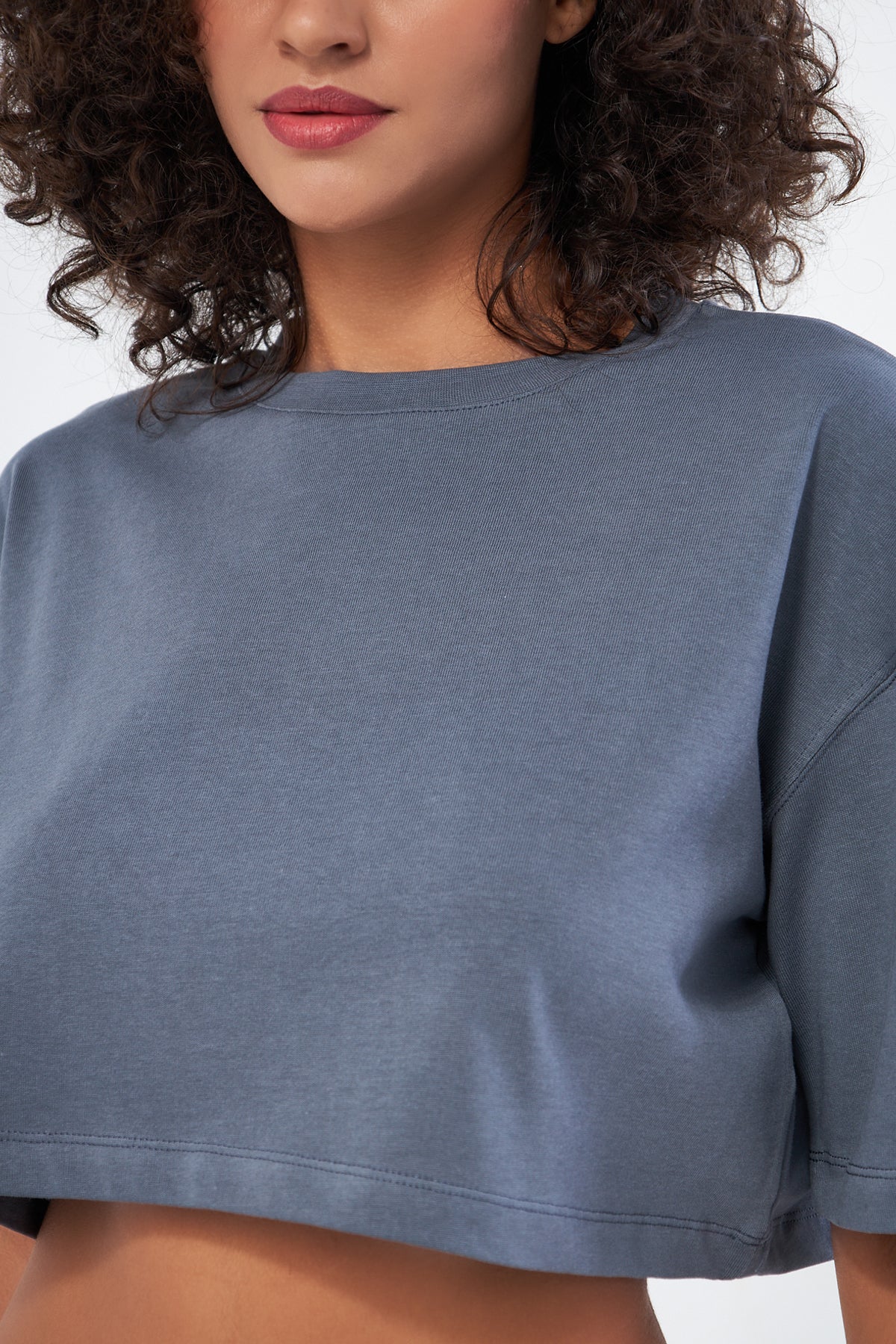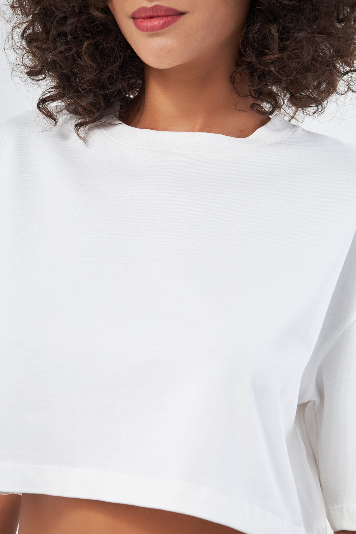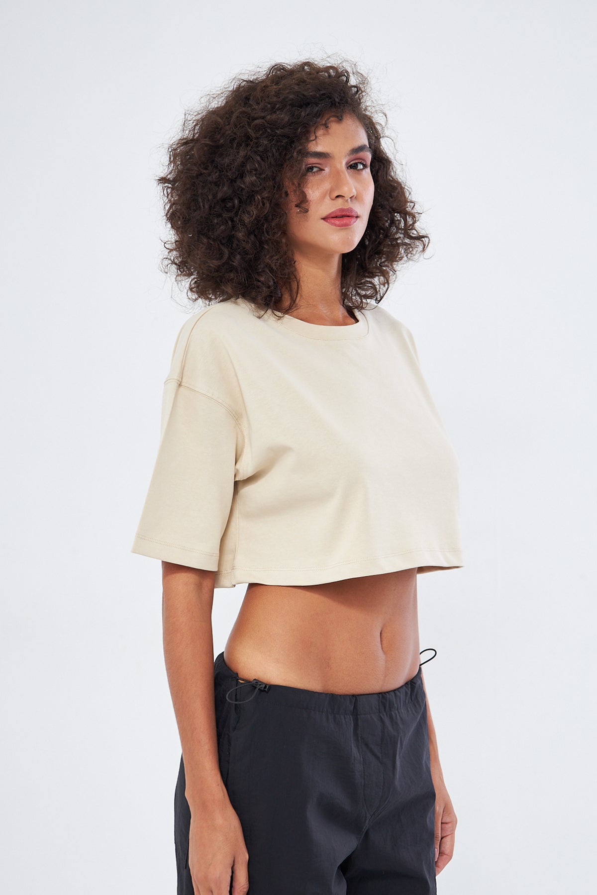 Mesfeno Women's Basic Oversize Thick Fabric Crop T-Shirt