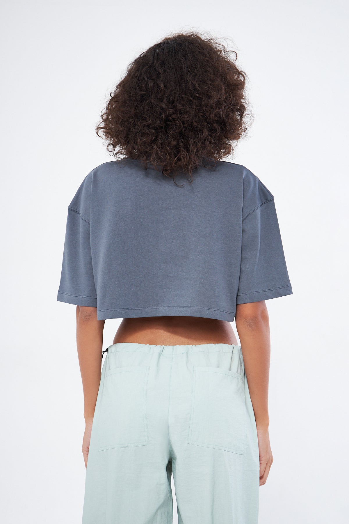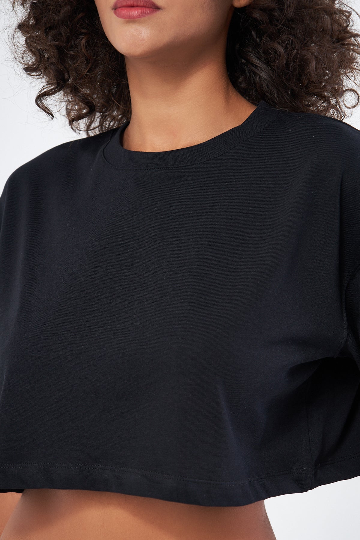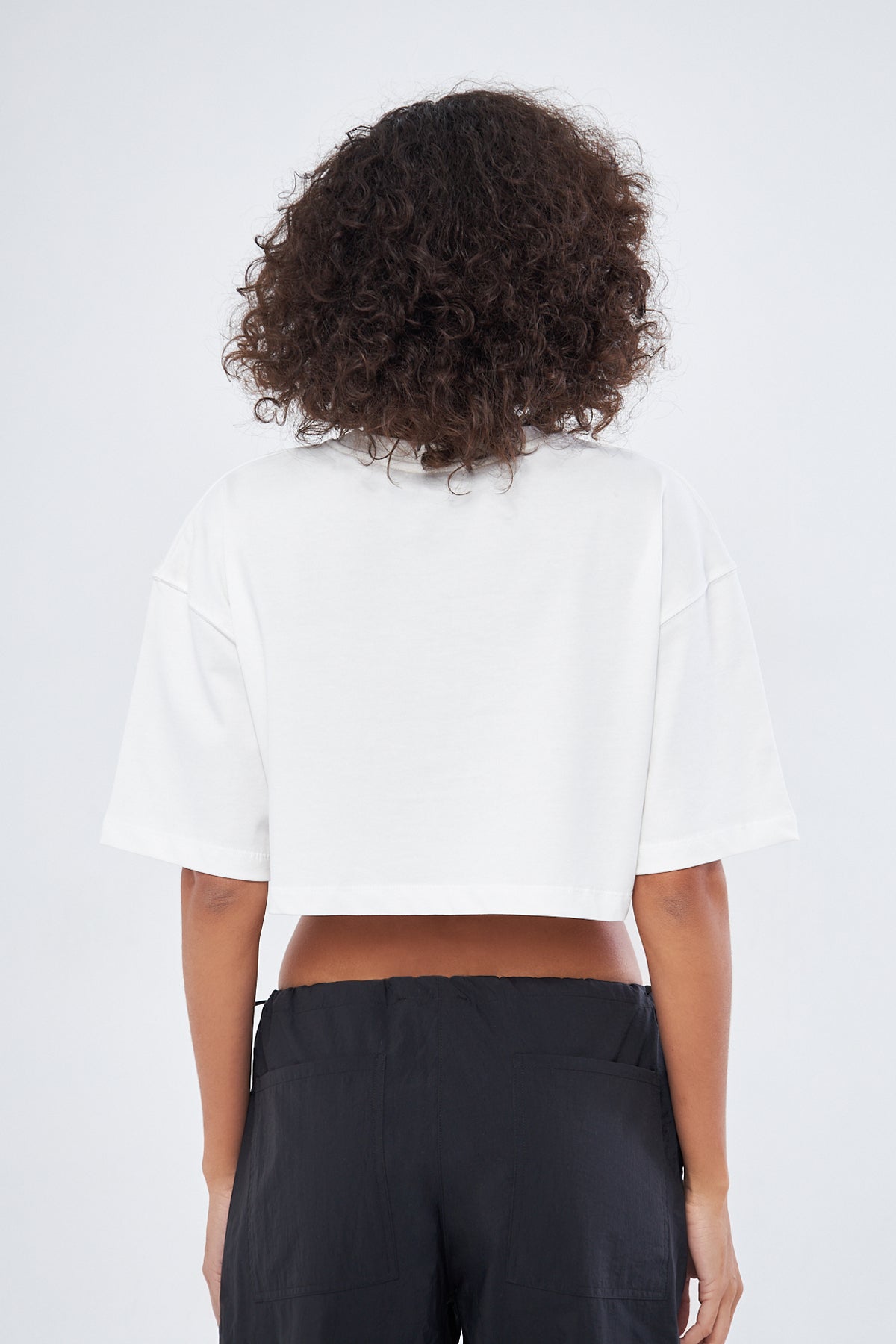 Mesfeno Women's Basic Oversize Thick Fabric Crop T-Shirt