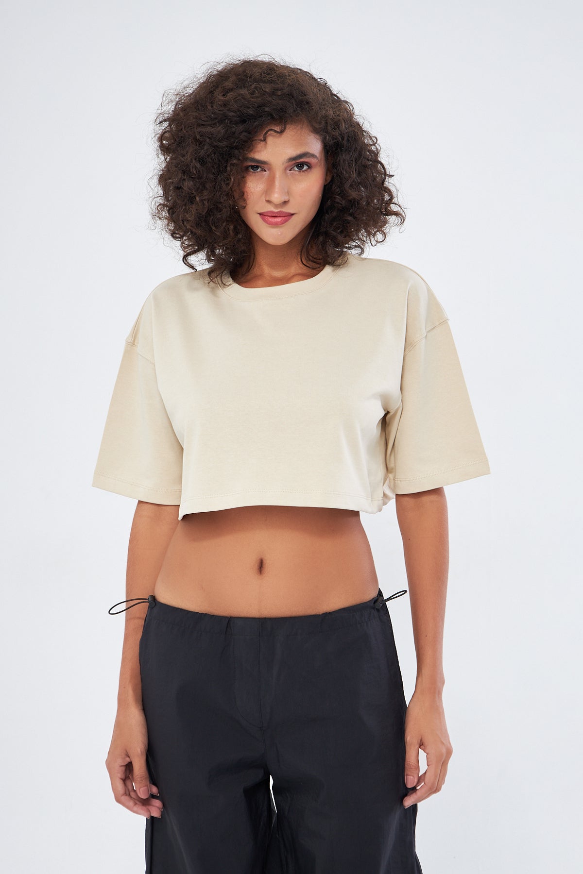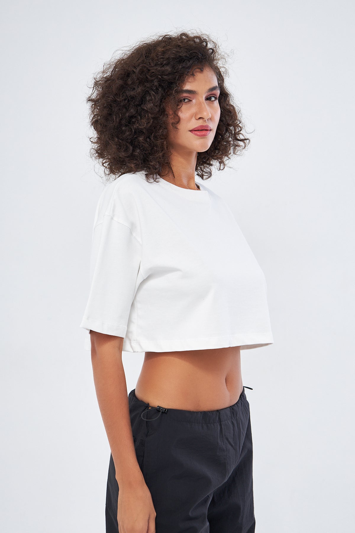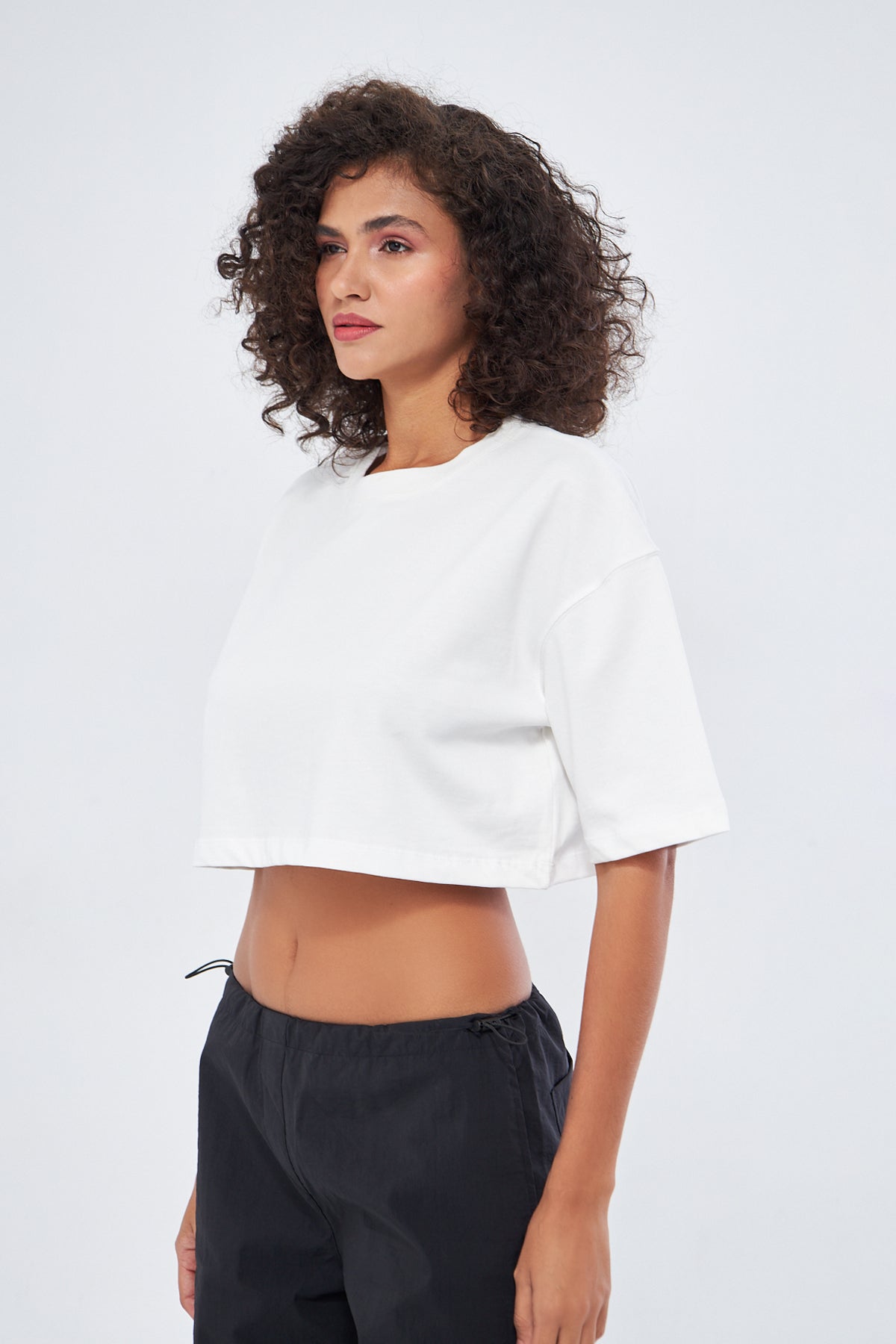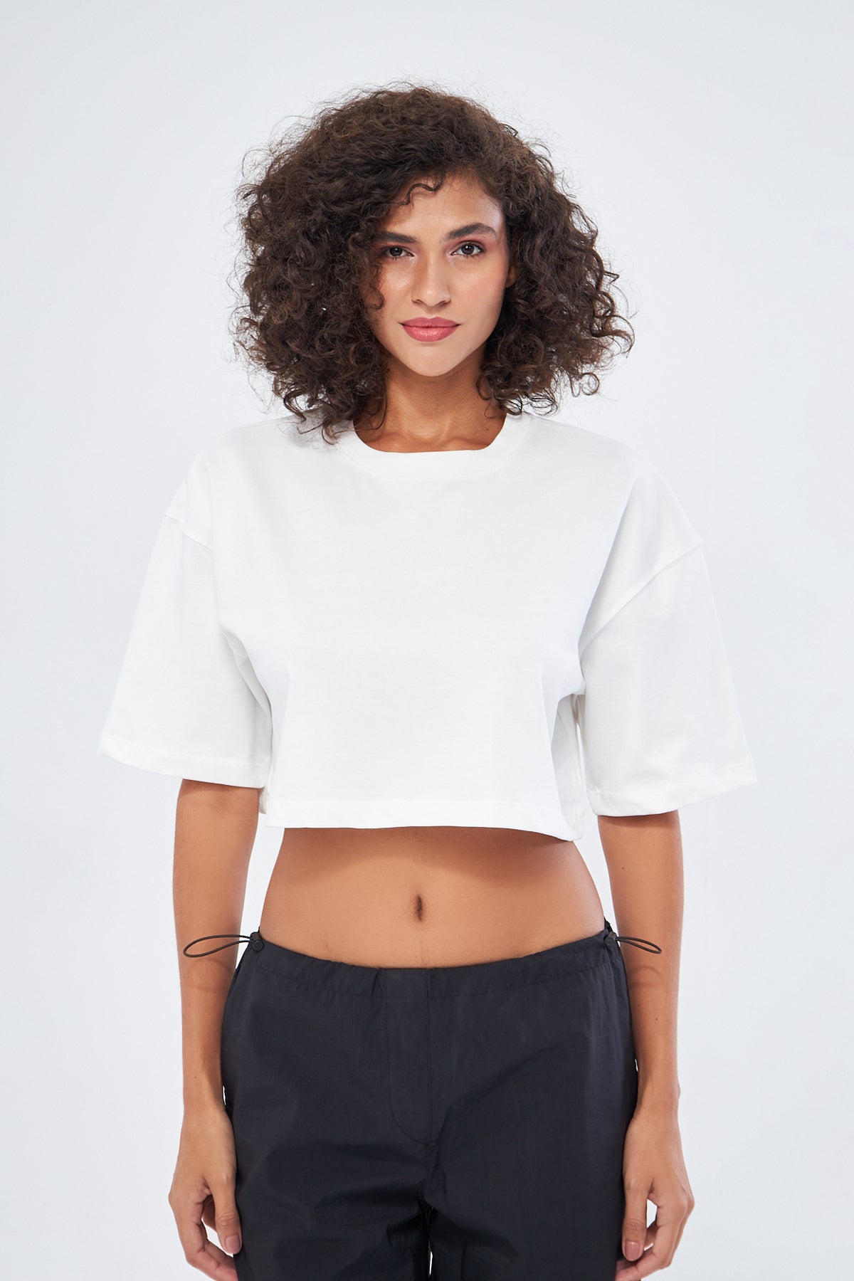 Step into effortless fashion with the Mesfeno Women's Basic Oversize Thick Fabric Crop T-Shirt – the perfect combination of comfort, durability, and modern style.