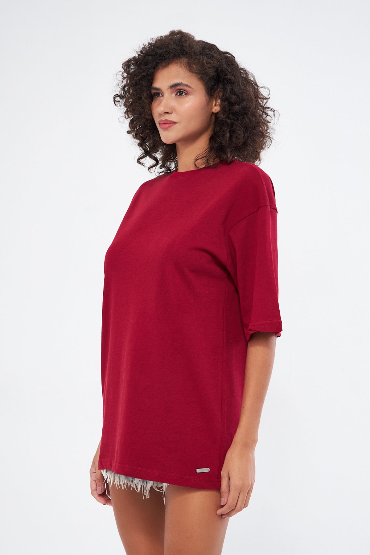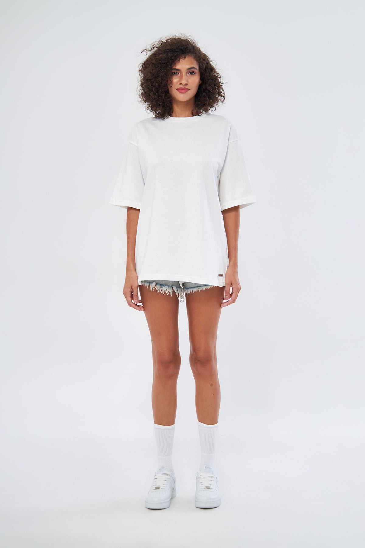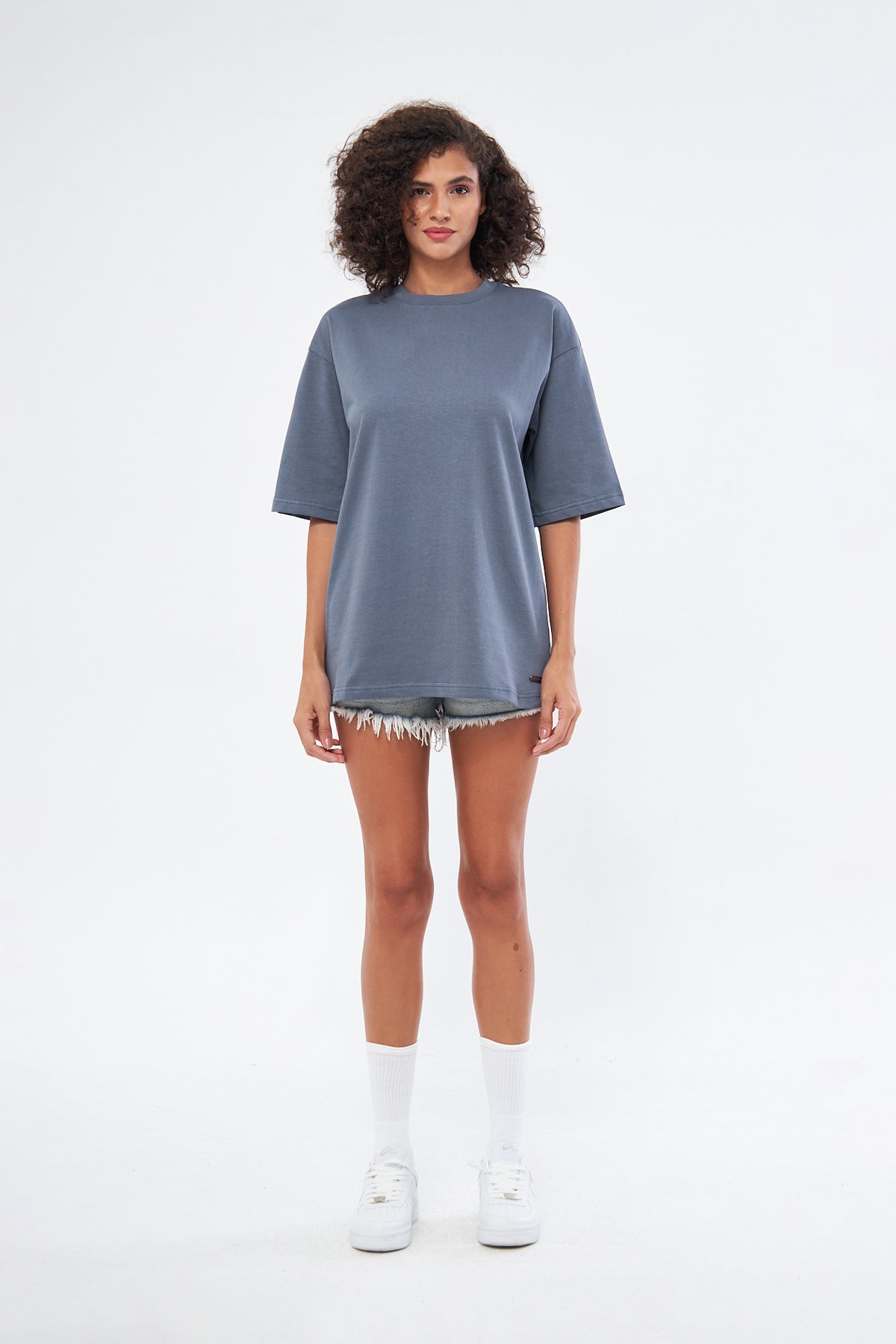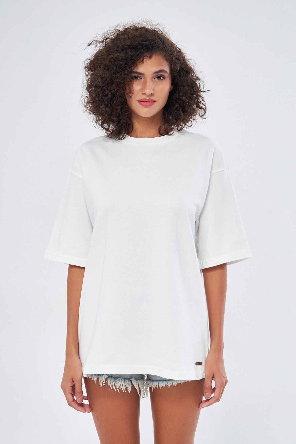 This basic t-shirt, with its round neckline and thick fabric, offers both comfort and style. Made from 100% cotton, it provides a soft and breathable texture, making it perfect for everyday wear. The oversized, loose fit ensures comfort throughout the day. You can choose your preferred size by referring to the size chart in the images.