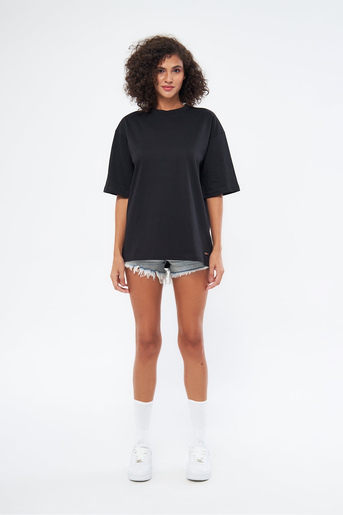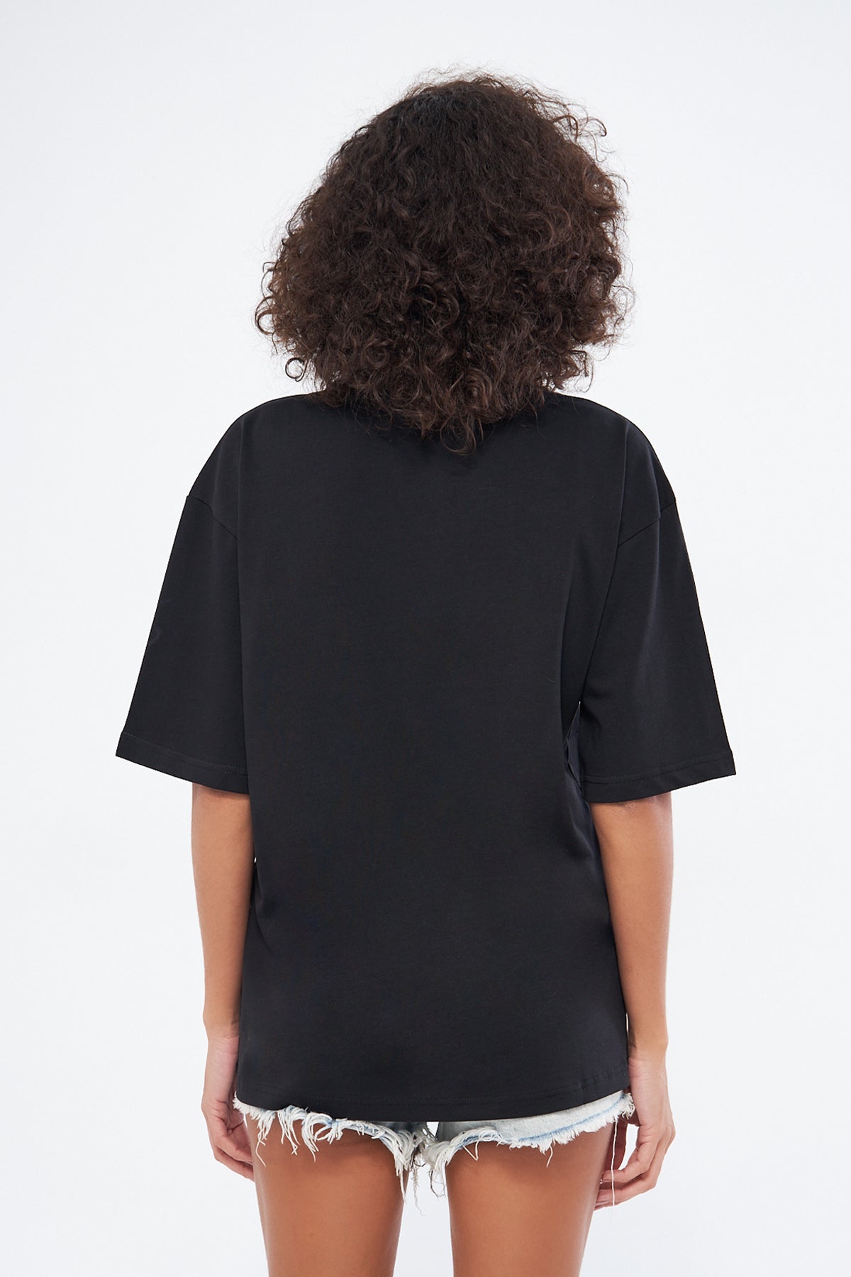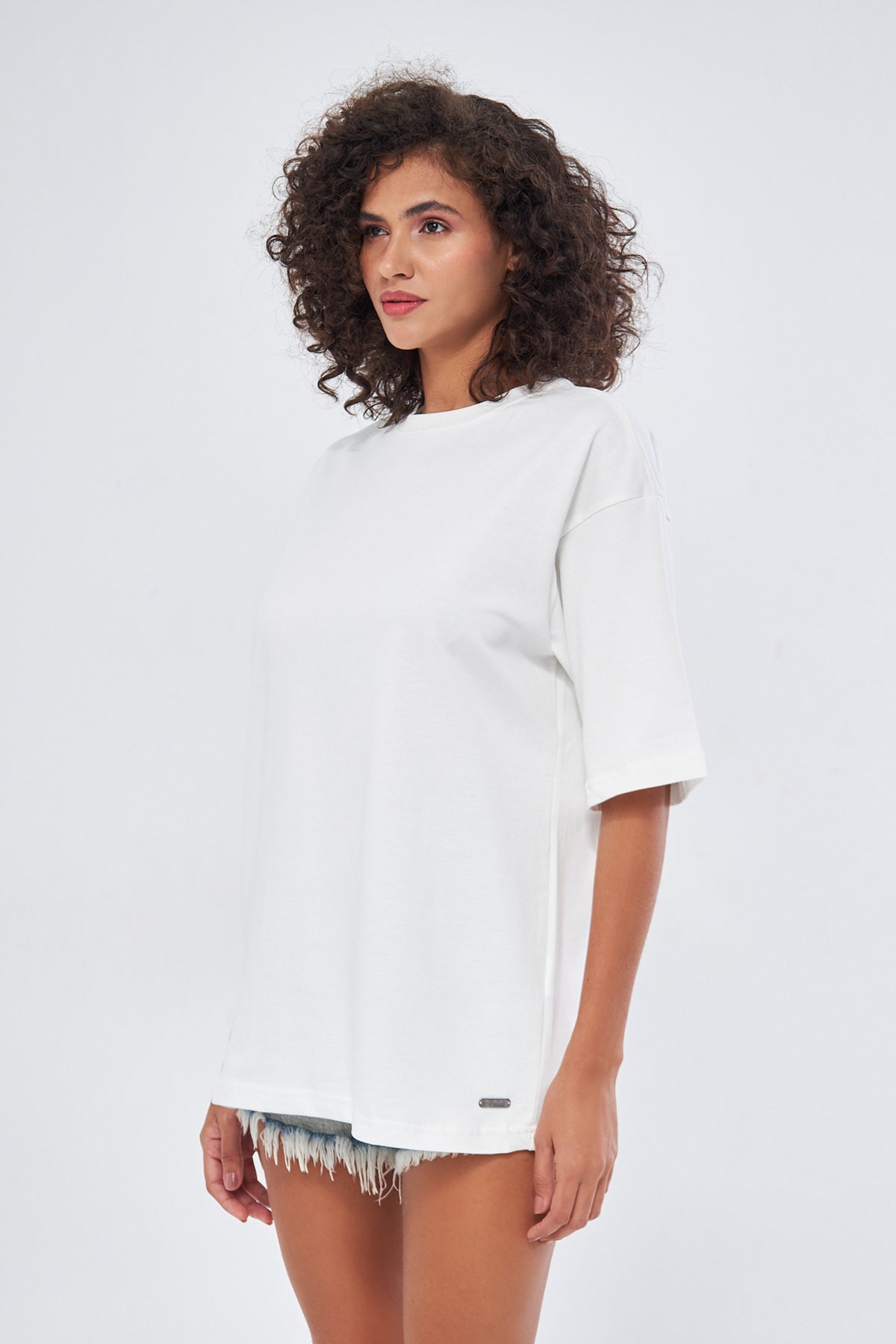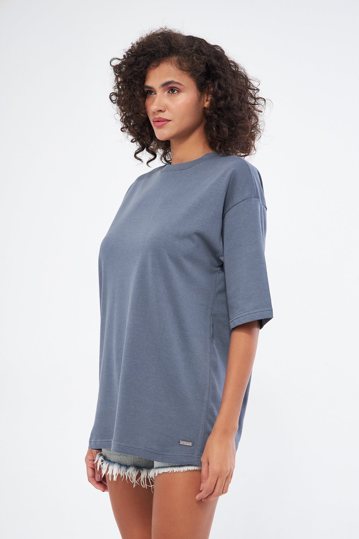 This basic t-shirt, with its round neckline and thick fabric, offers both comfort and style. Made from 100% cotton, it provides a soft and breathable texture, making it perfect for everyday wear. The oversized, loose fit ensures comfort throughout the day. You can choose your preferred size by referring to the size chart in the images.