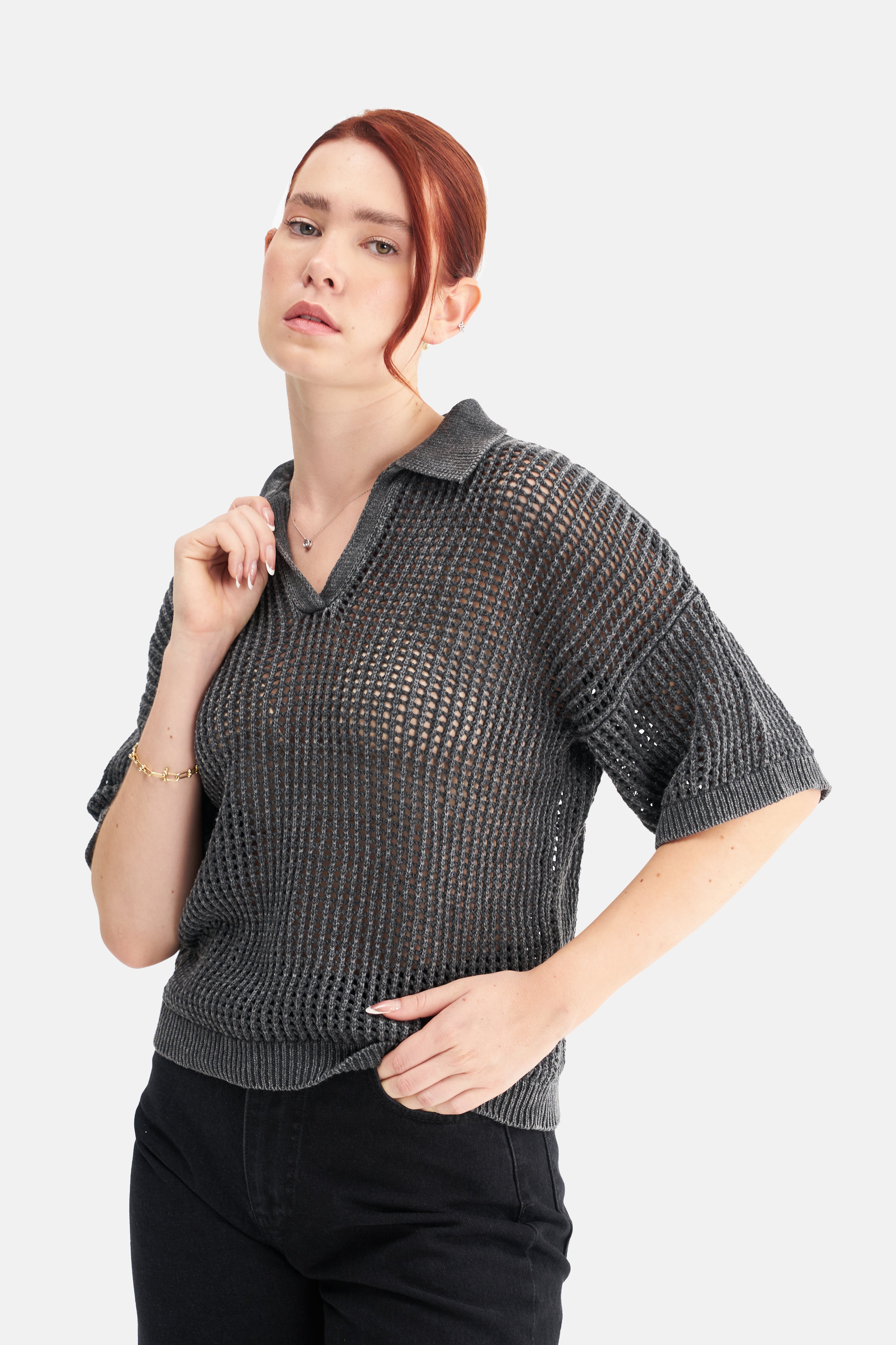 This crop knit sweater offers comfort throughout the day with its soft texture and stands out with its washed effect. Its mock neck and regular fit provide a perfect match for every body type. Whether for casual or chic outfits, this sweater will become one of your favorite pieces in your wardrobe.