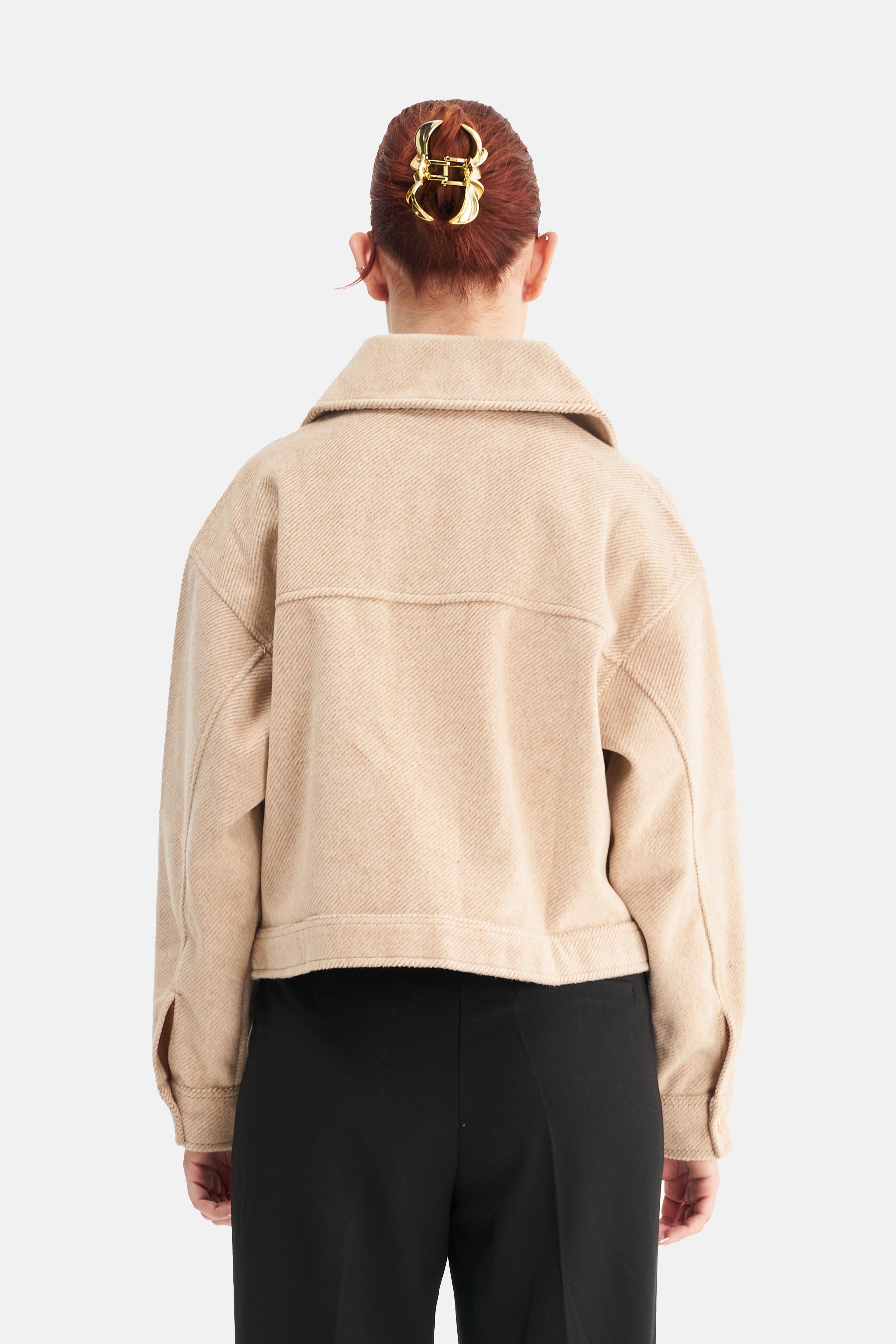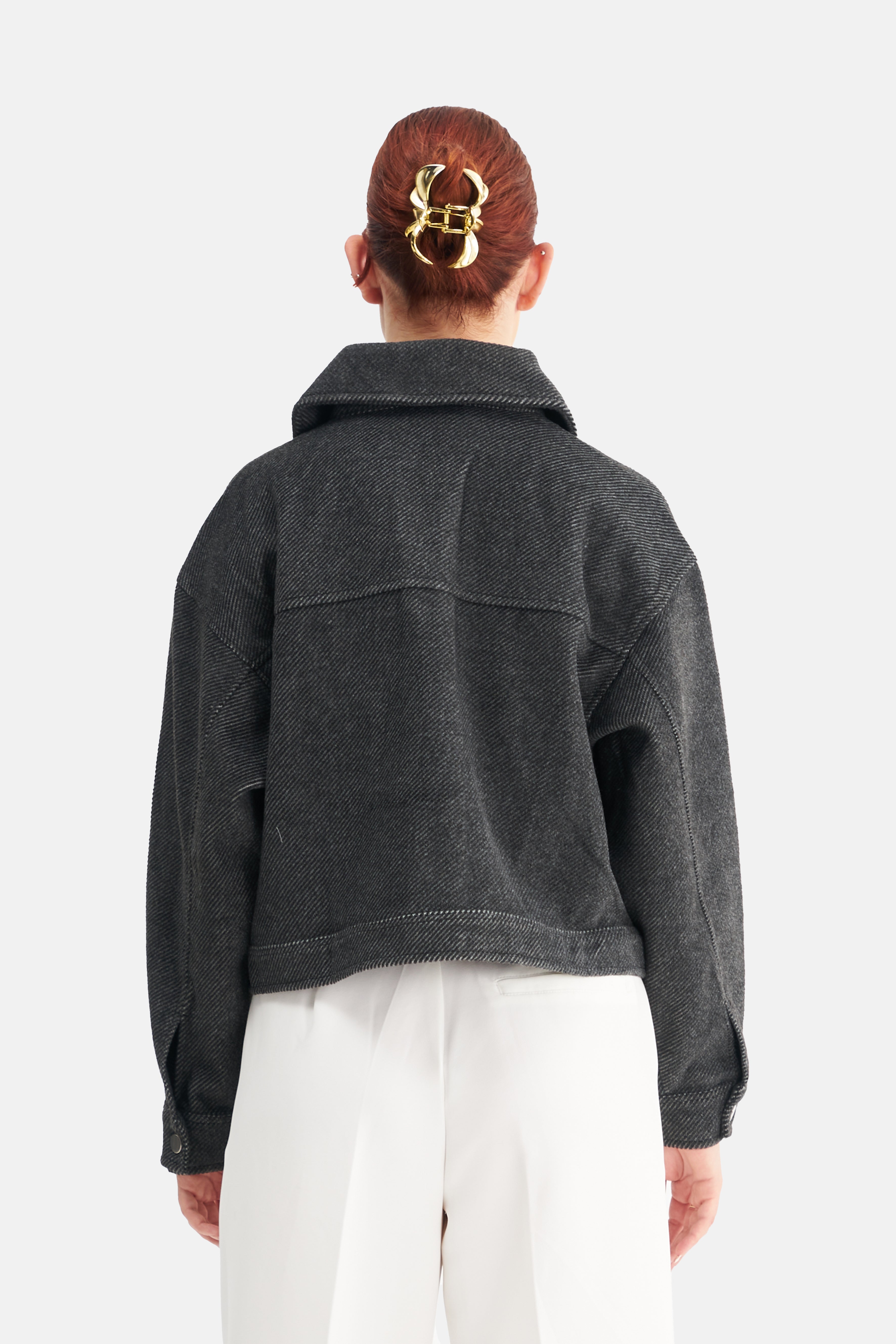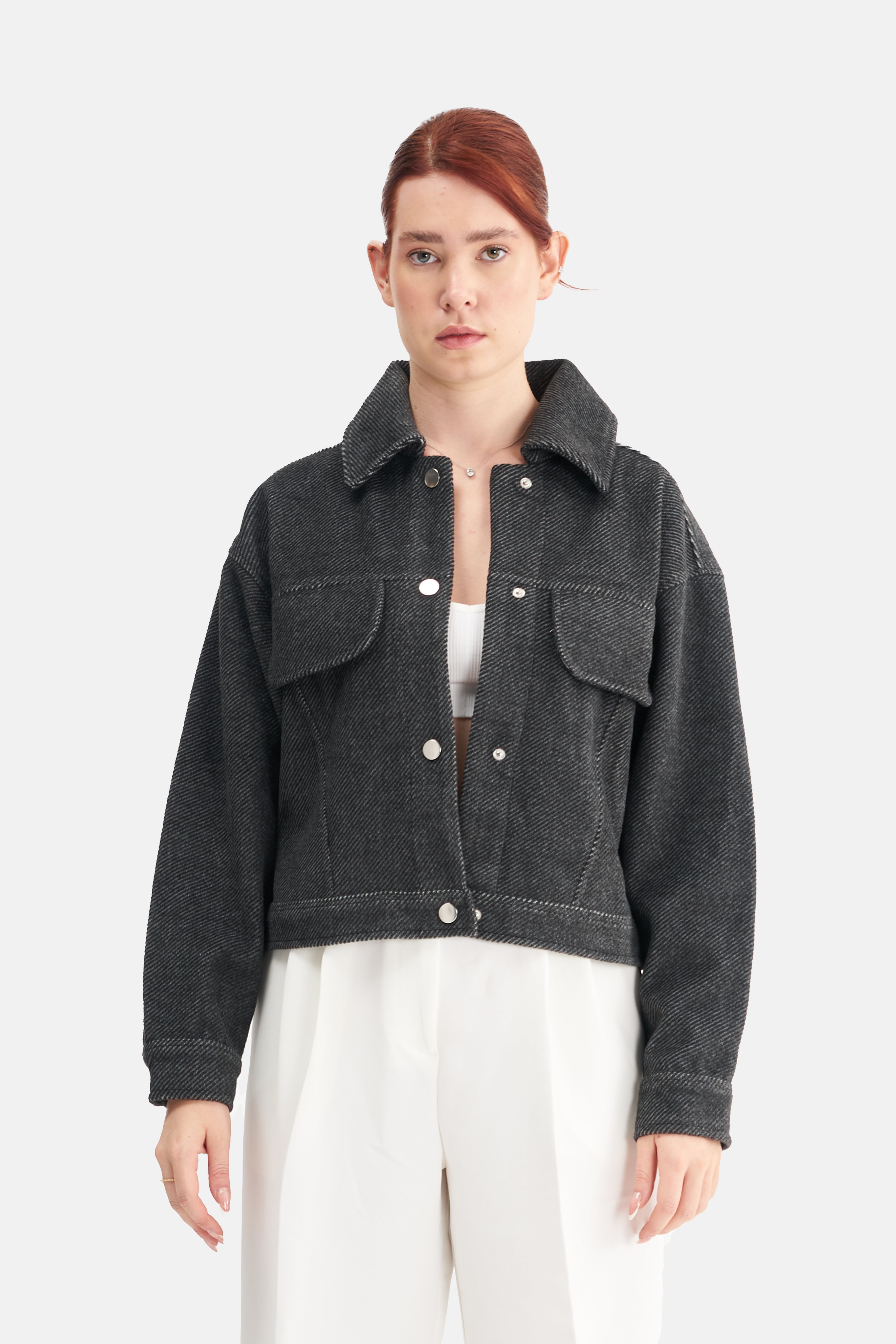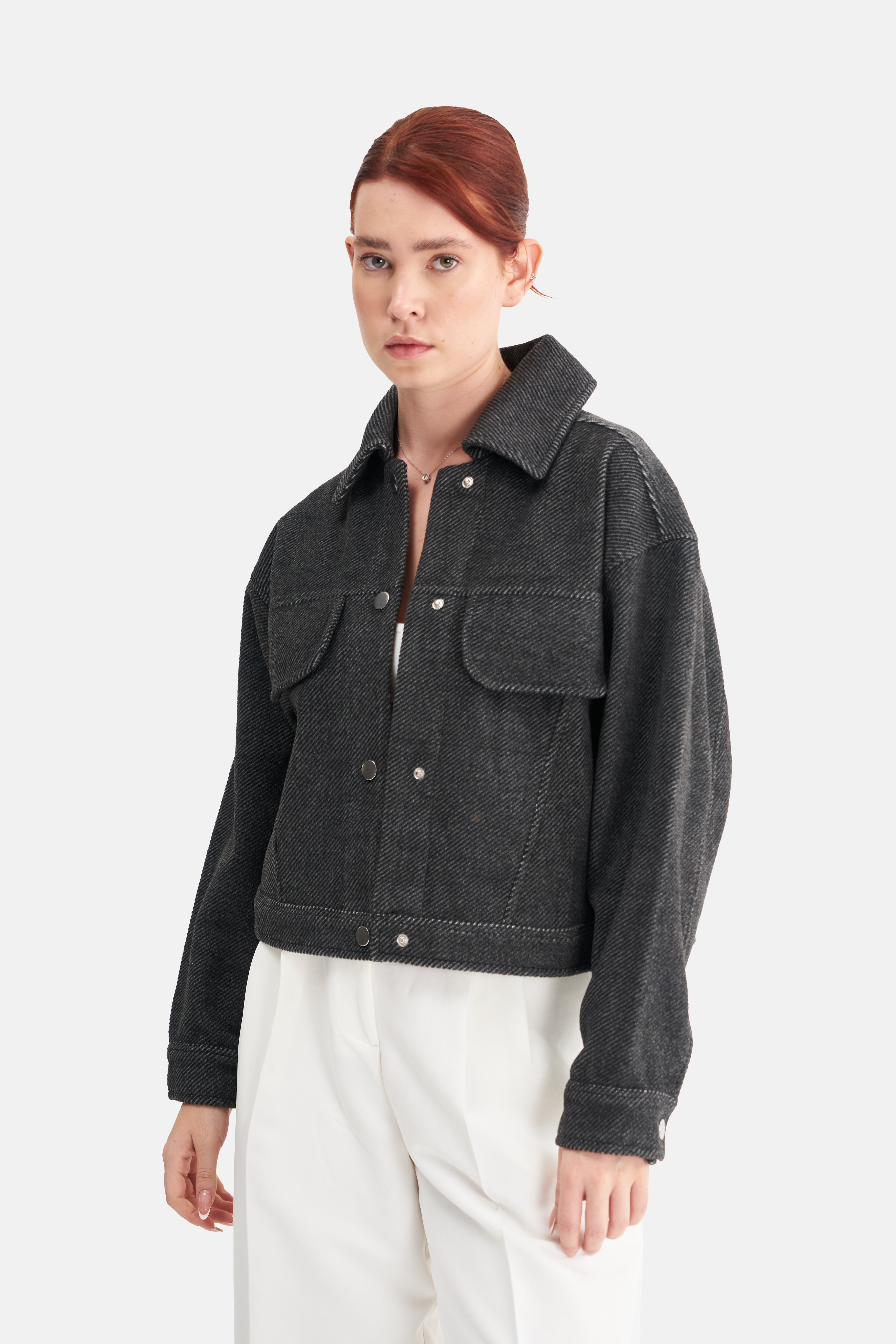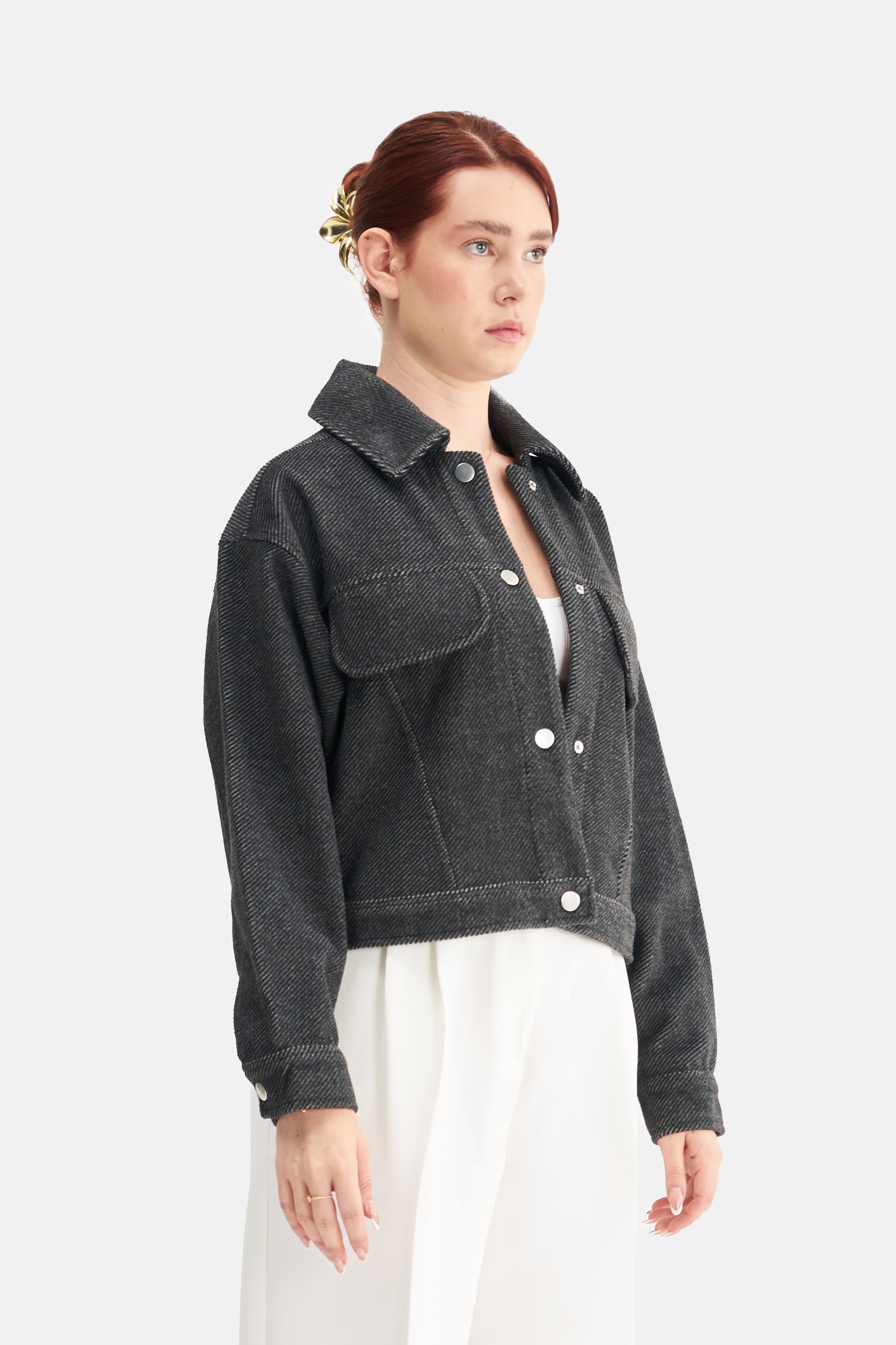 This coat, made from soft wool fabric, provides warmth while offering comfortable wear. Its wide collar enhances the definition of your face, and the decorative flap details add an extra touch of elegance. The snap button closures make it easy to wear and take off, making this coat an essential piece in your wardrobe.