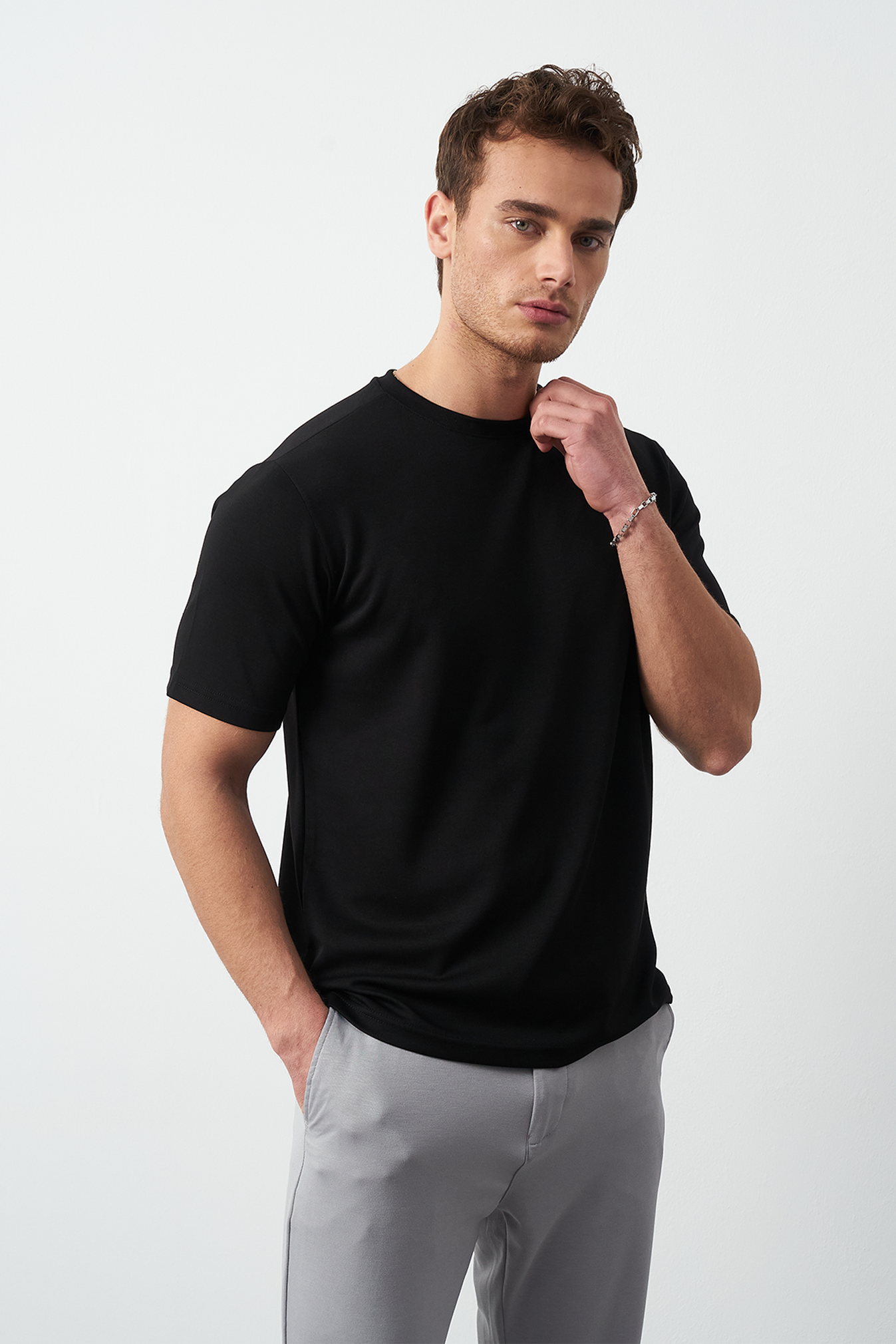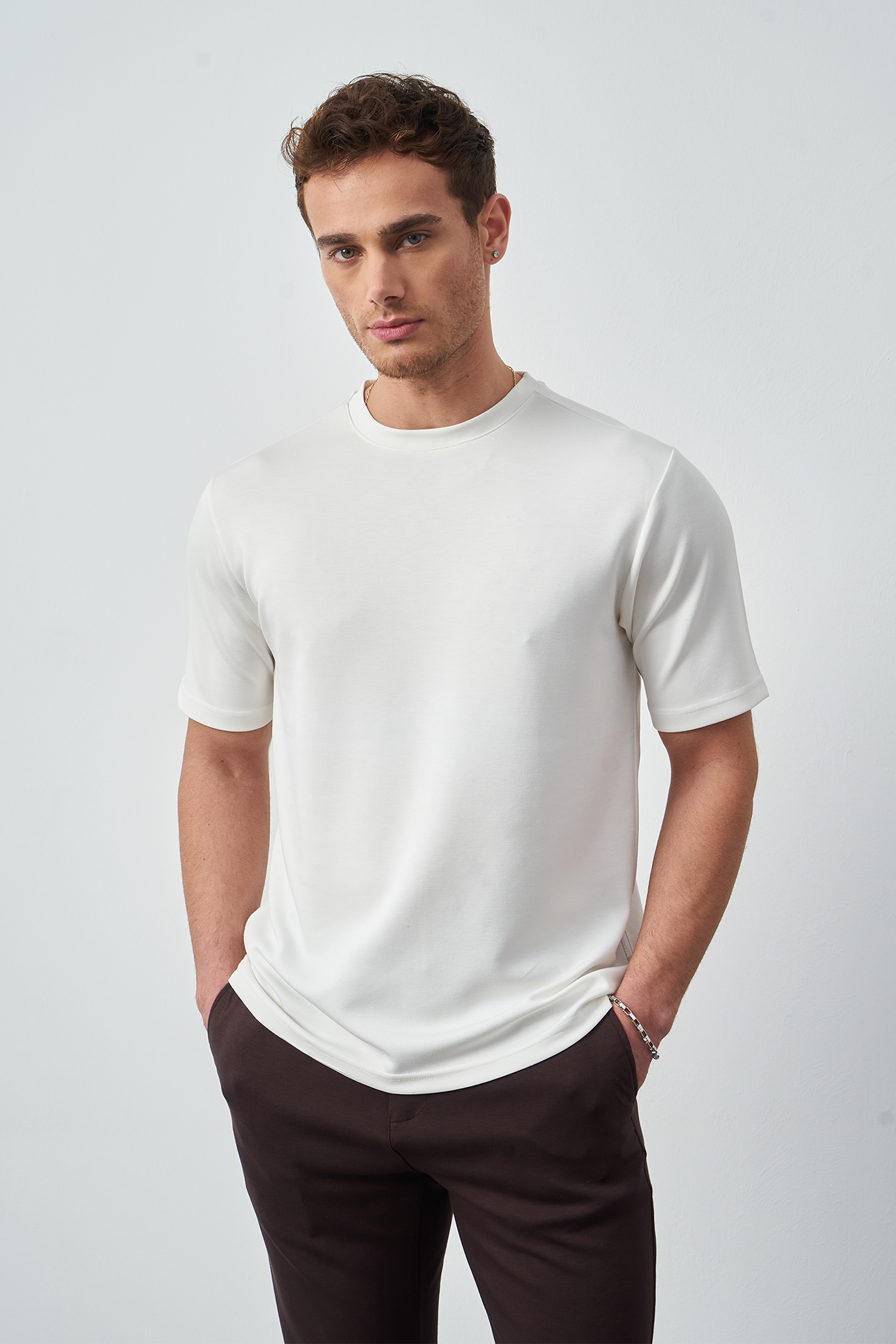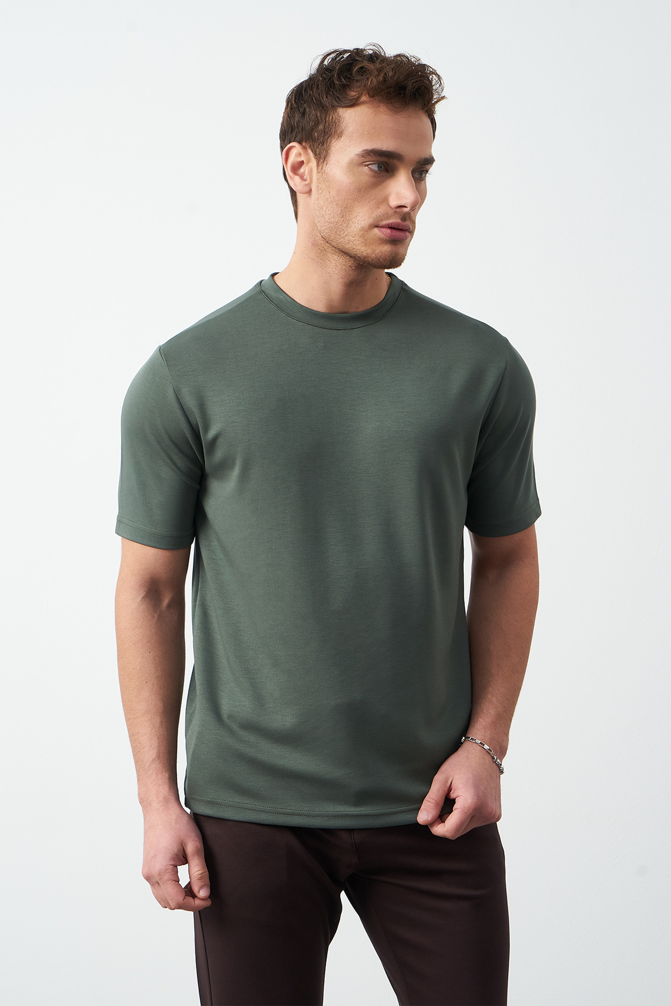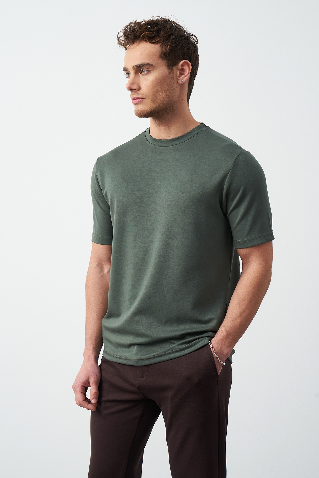 The perfect combination of comfort and style – men's modal t-shirt! The soft texture of modal fabric, with its lightweight and breathable structure, provides all-day comfort. Available in four different colors, it offers versatile outfit combinations. The regular fit ensures a balanced fit, while the crew neck design delivers a modern, minimalist, and premium look.