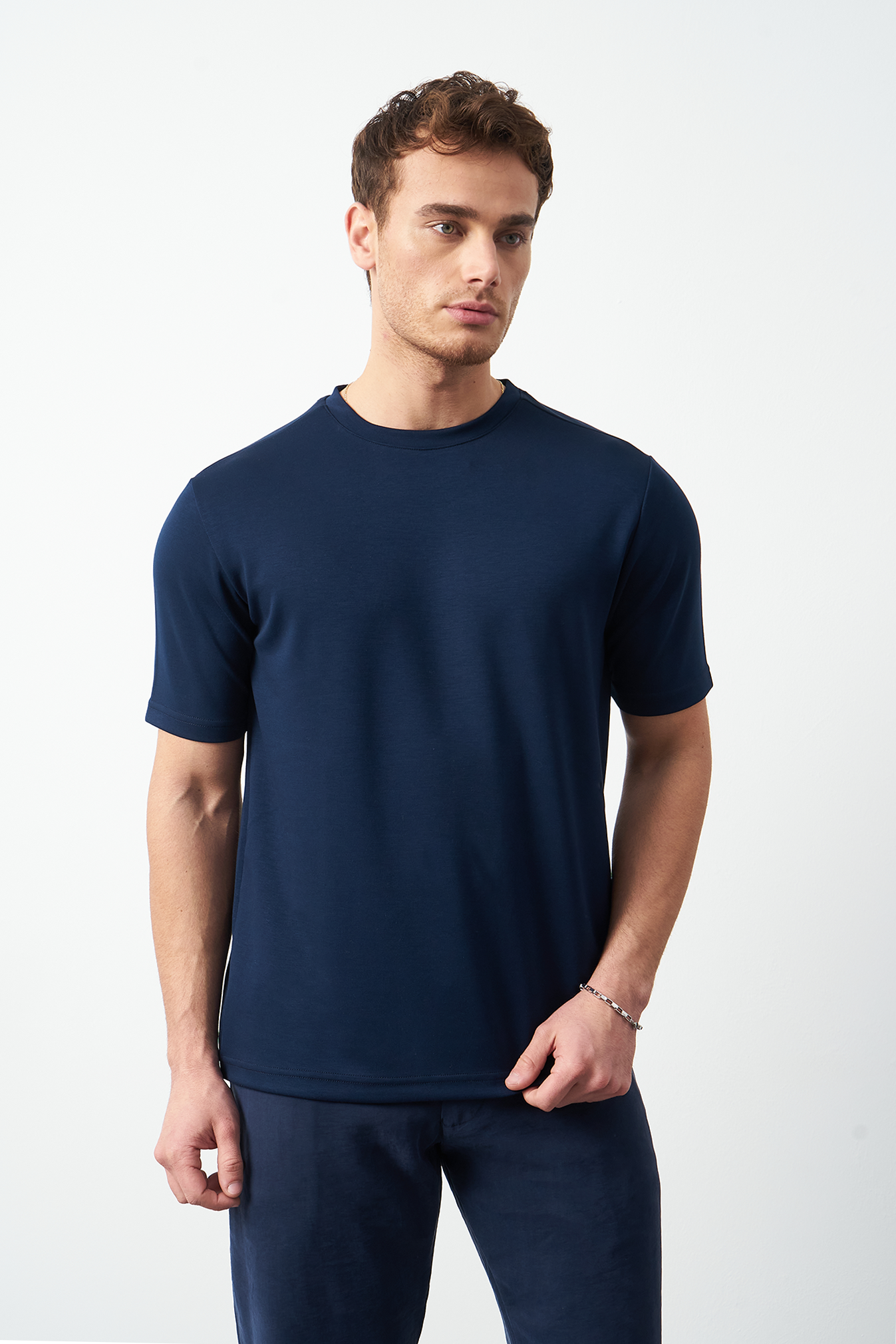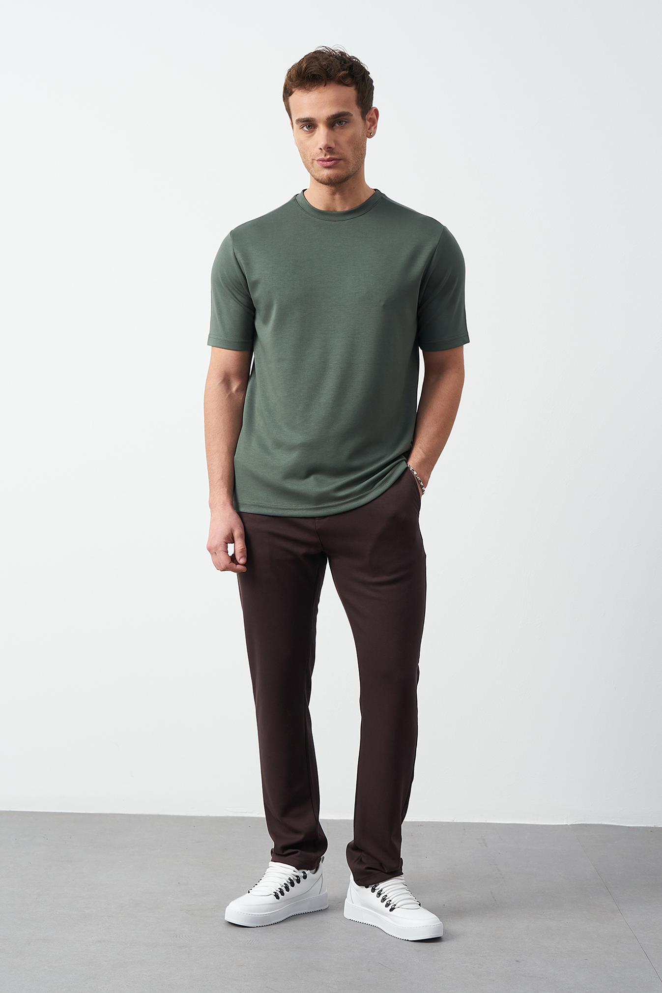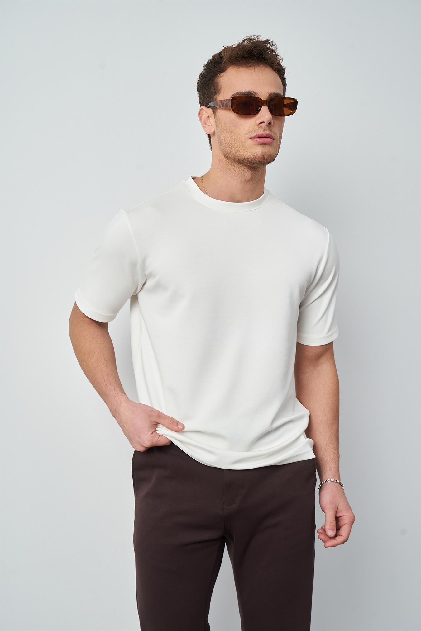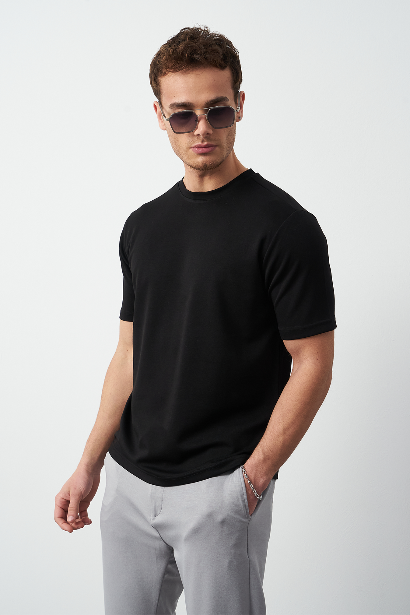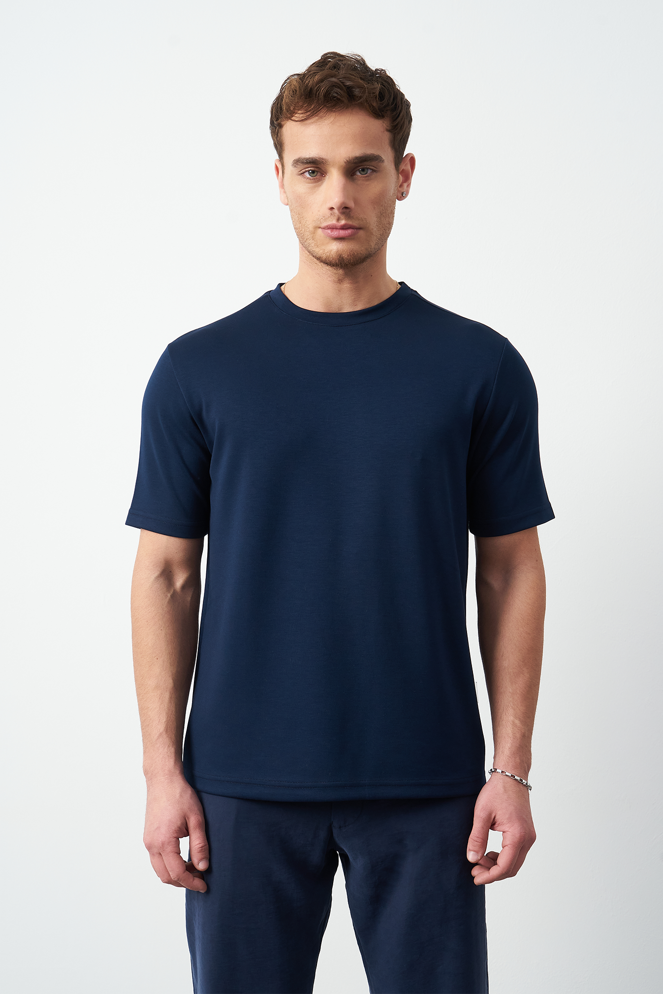 The perfect combination of comfort and style – men's modal t-shirt! The soft texture of modal fabric, with its lightweight and breathable structure, provides all-day comfort. Available in four different colors, it offers versatile outfit combinations. The regular fit ensures a balanced fit, while the crew neck design delivers a modern, minimalist, and premium look.