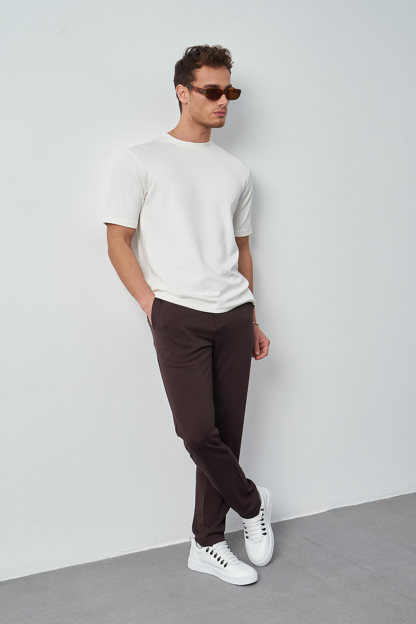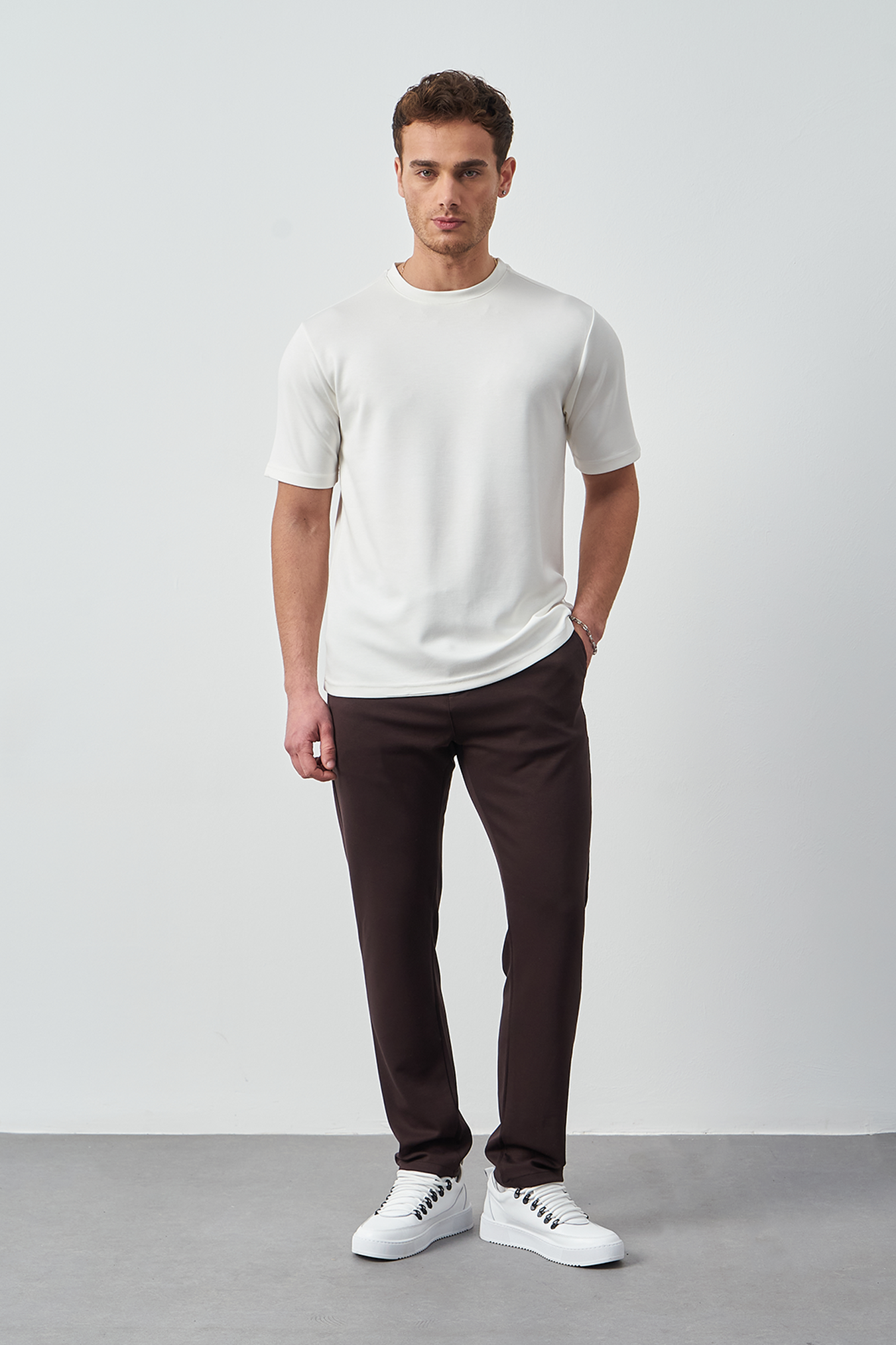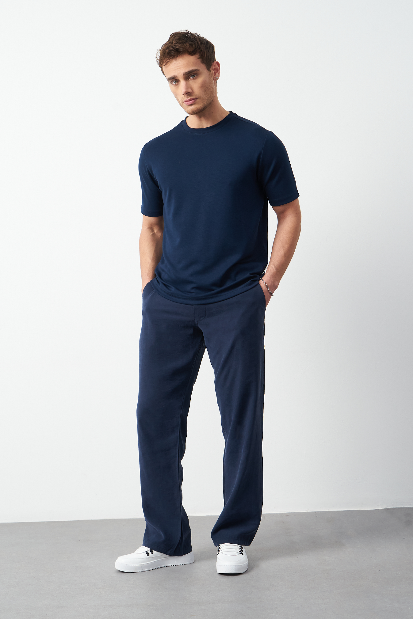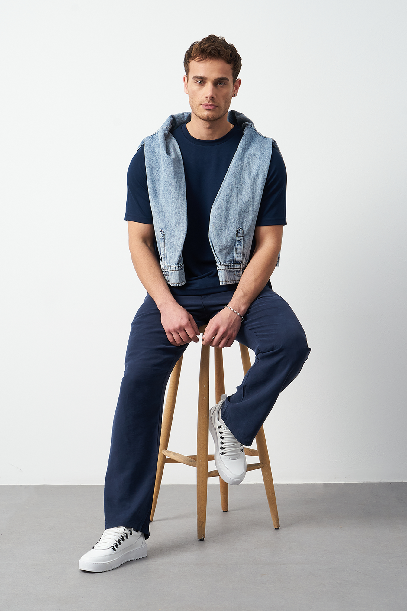 The perfect combination of comfort and style – men's modal t-shirt! The soft texture of modal fabric, with its lightweight and breathable structure, provides all-day comfort. Available in four different colors, it offers versatile outfit combinations. The regular fit ensures a balanced fit, while the crew neck design delivers a modern, minimalist, and premium look.