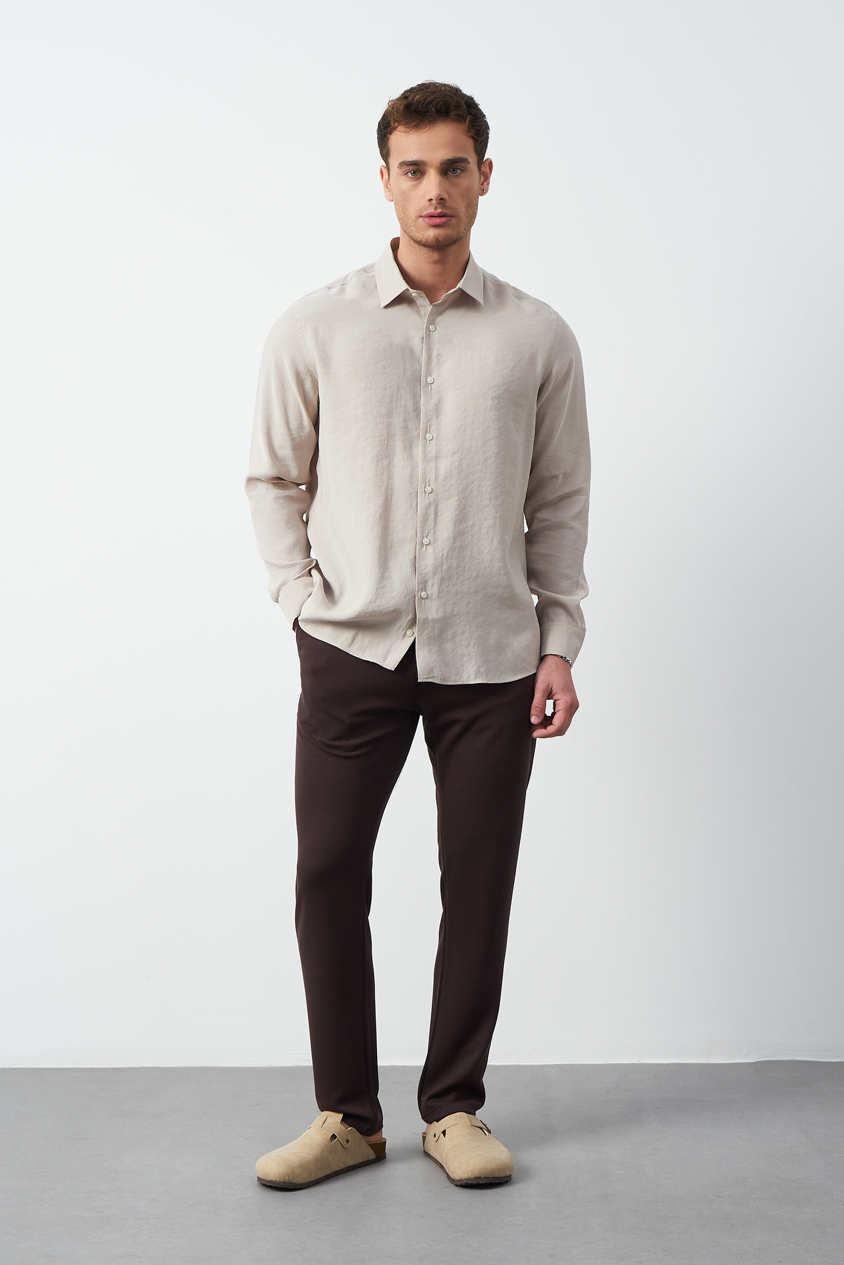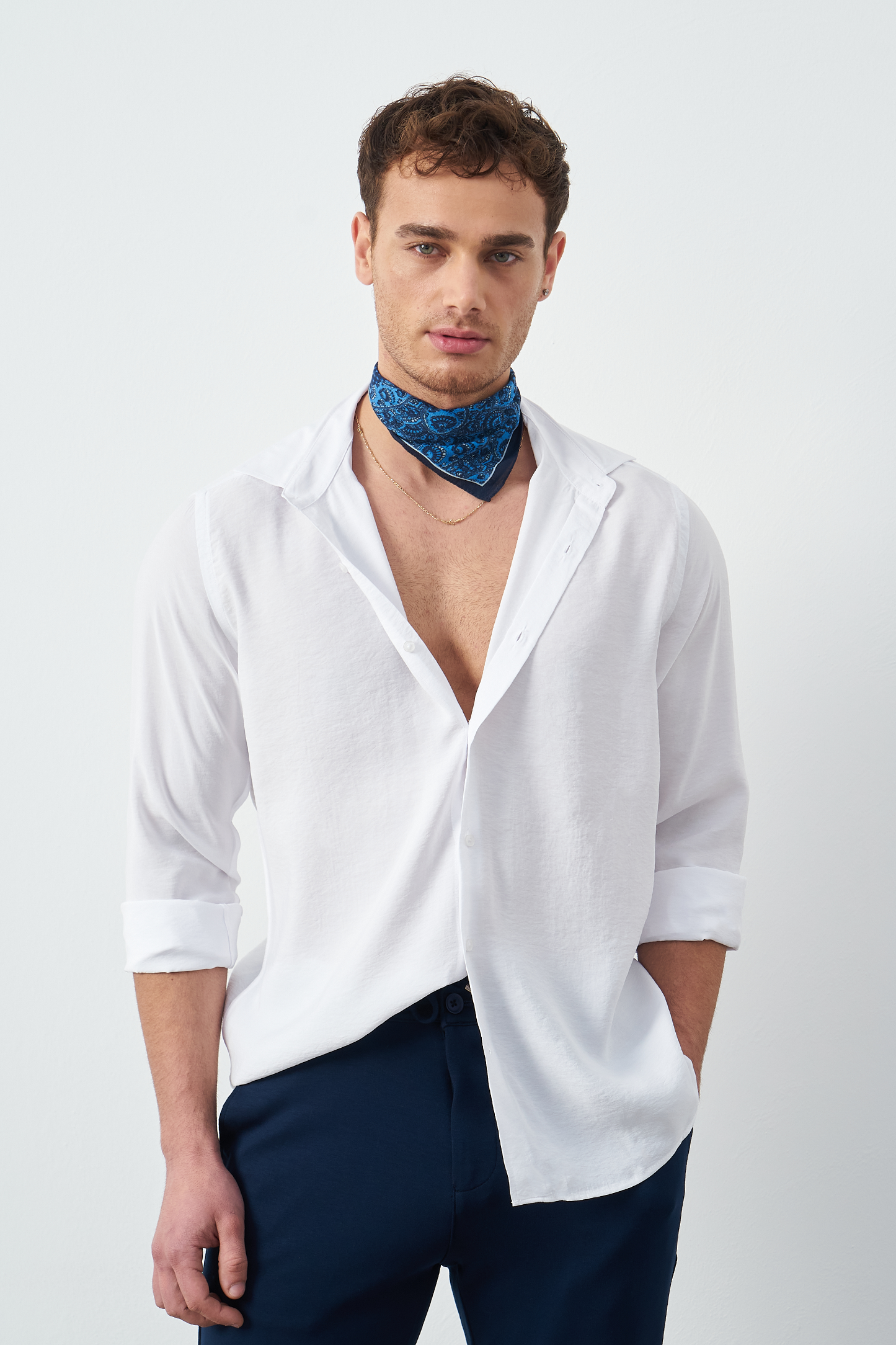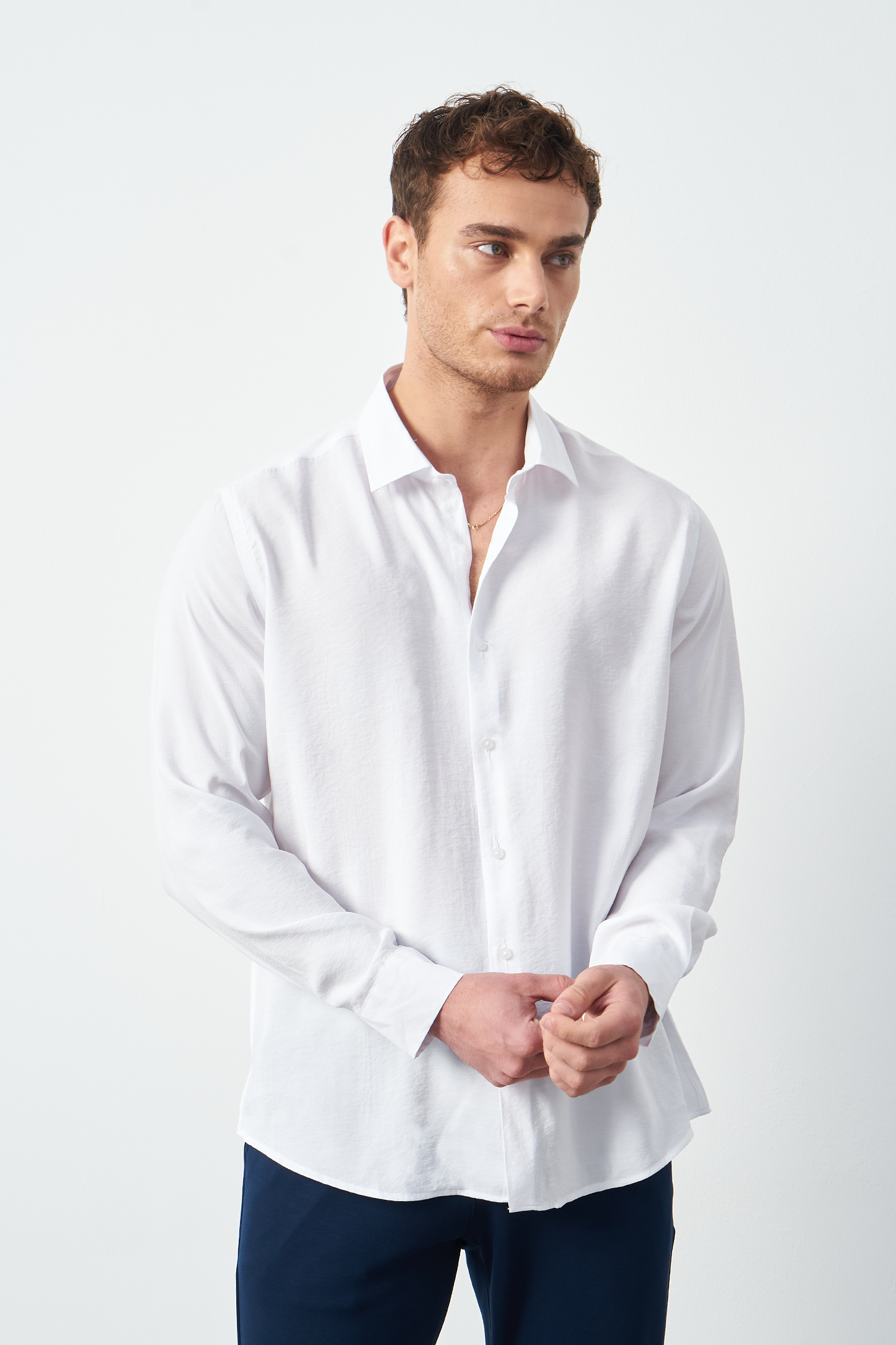 Ideal for a light and comfortable style! This loose-fit modal men's shirt, with its thin fabric, keeps you cool while providing all-day comfort with its soft texture. Its relaxed fit allows for freedom of movement. Available in 5 different colors, offering versatile outfit combinations. A perfect choice for street fashion and casual looks!