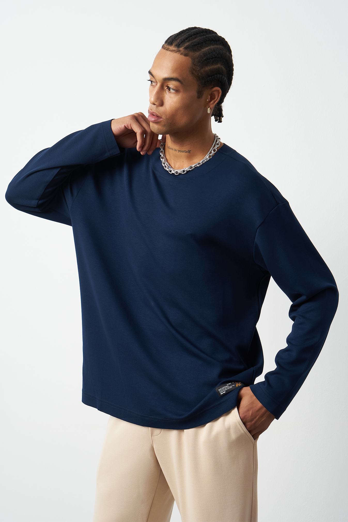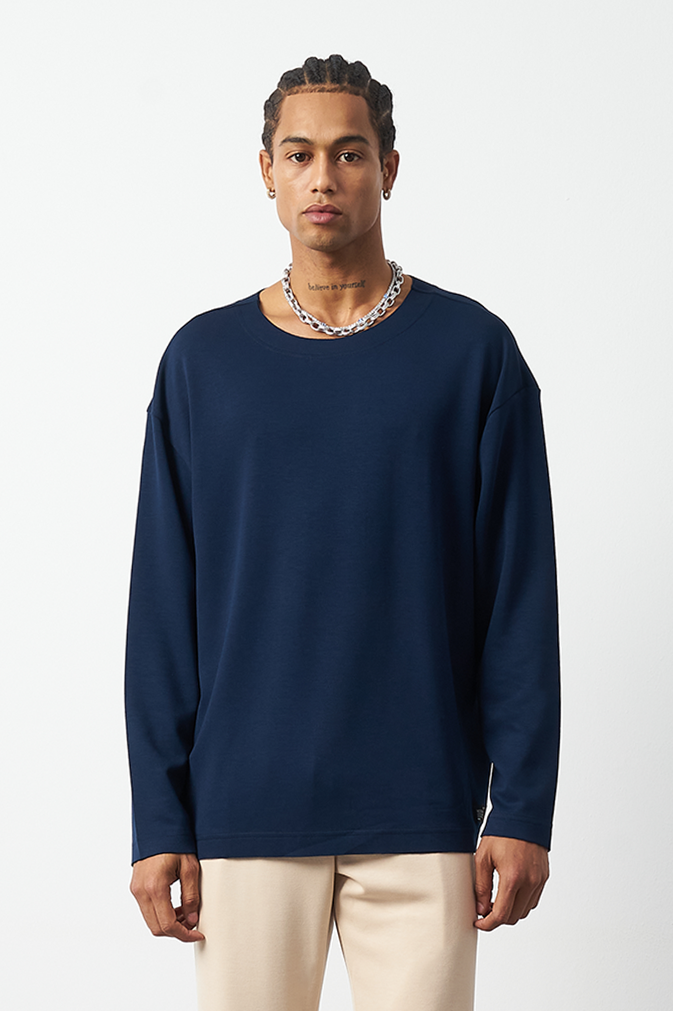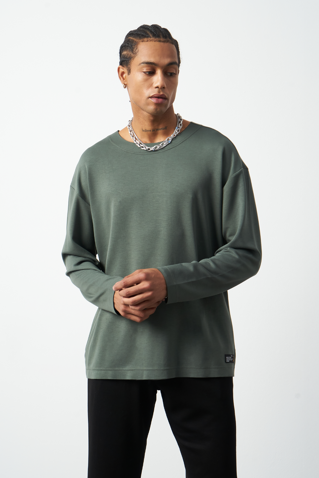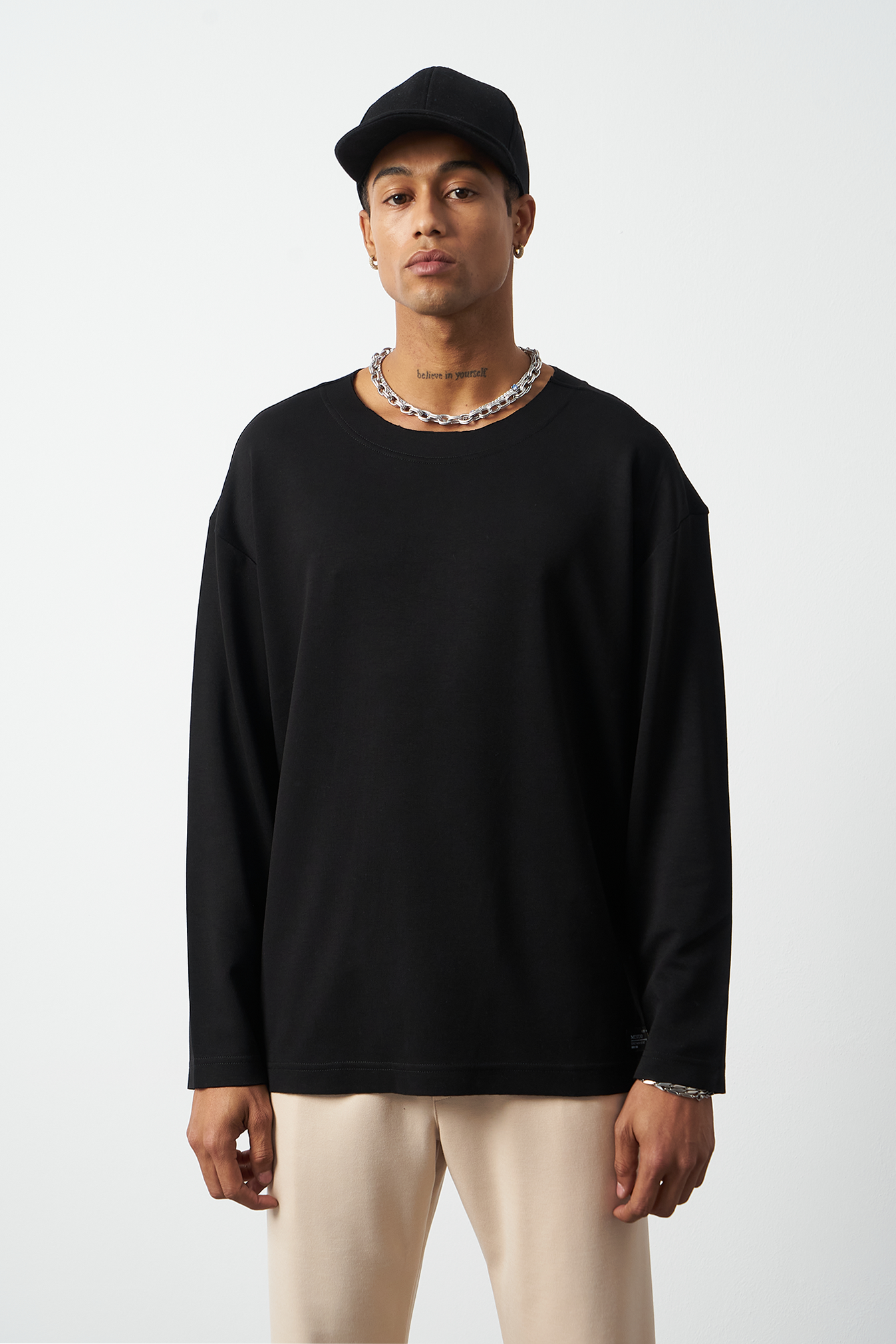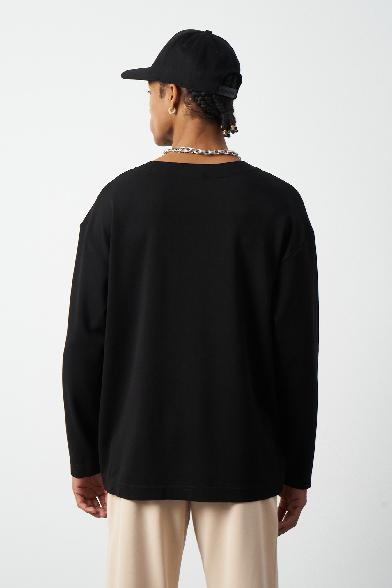 This breathable long-sleeve oversized men's t-shirt offers both style and comfort. The flexible modal fabric provides all-day comfort, while the collar stitching details add a subtle touch to the design. Available in 4 different colors, it offers versatile outfit combinations. A perfect choice for street fashion and casual looks!