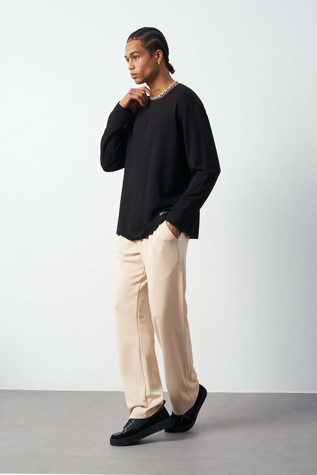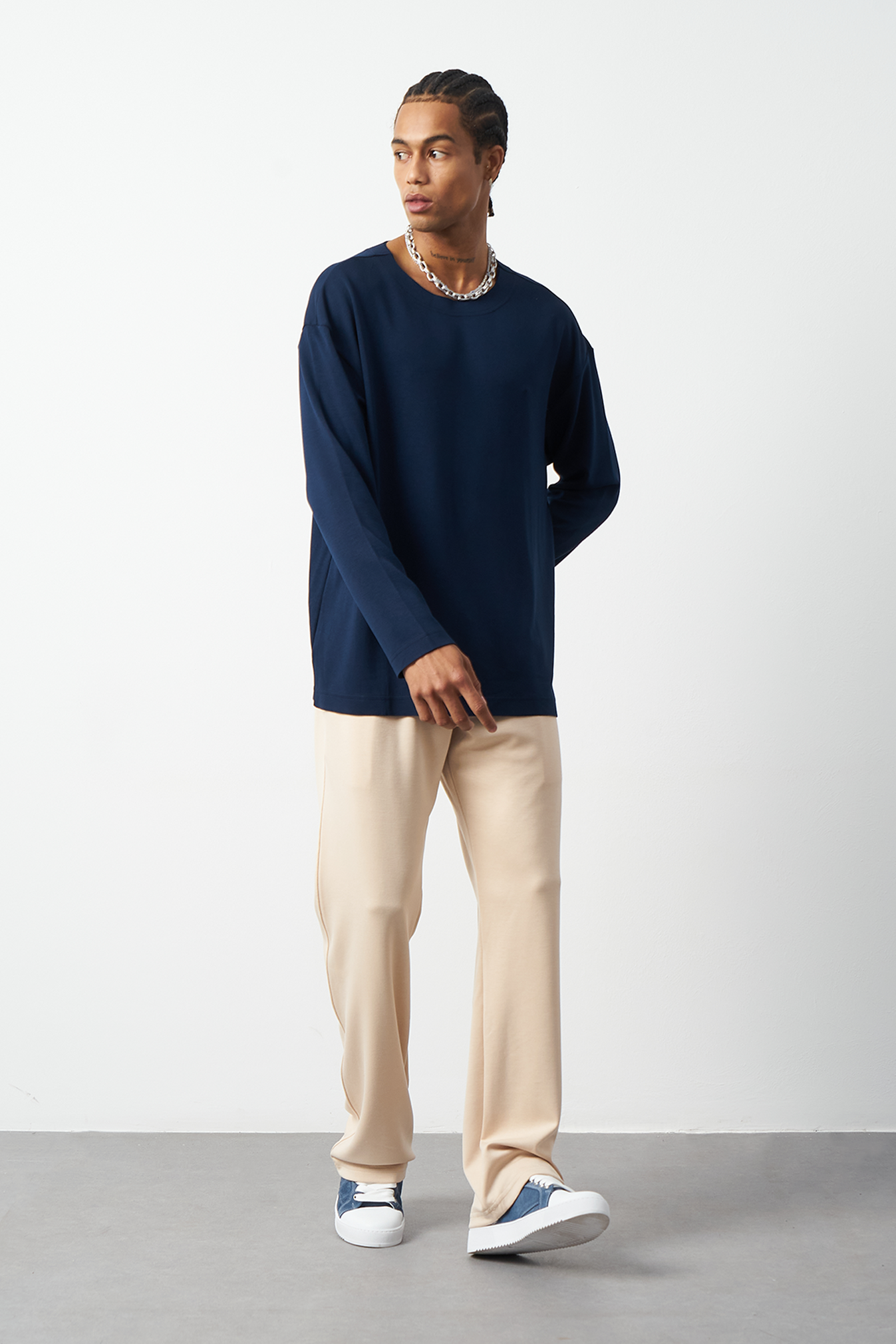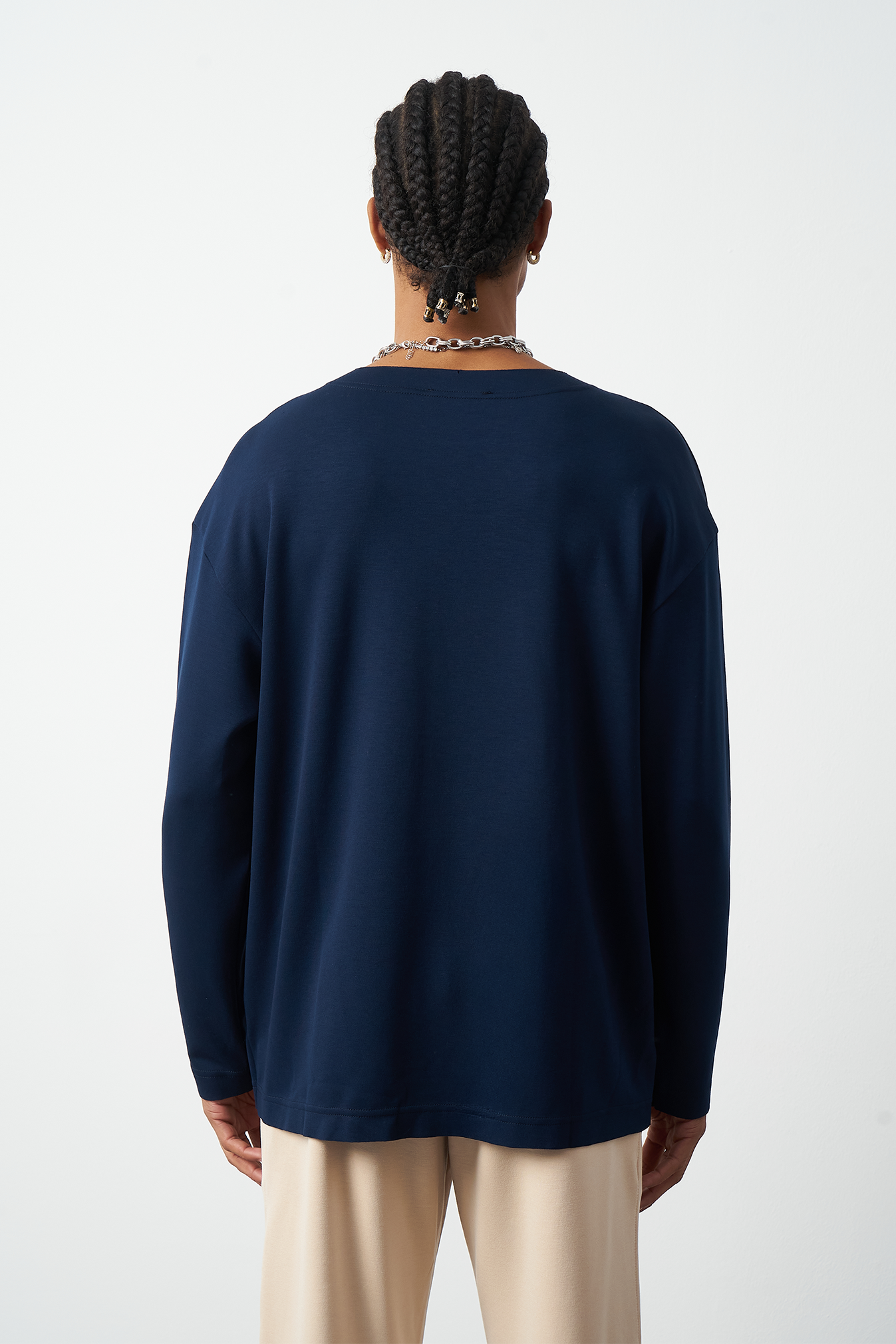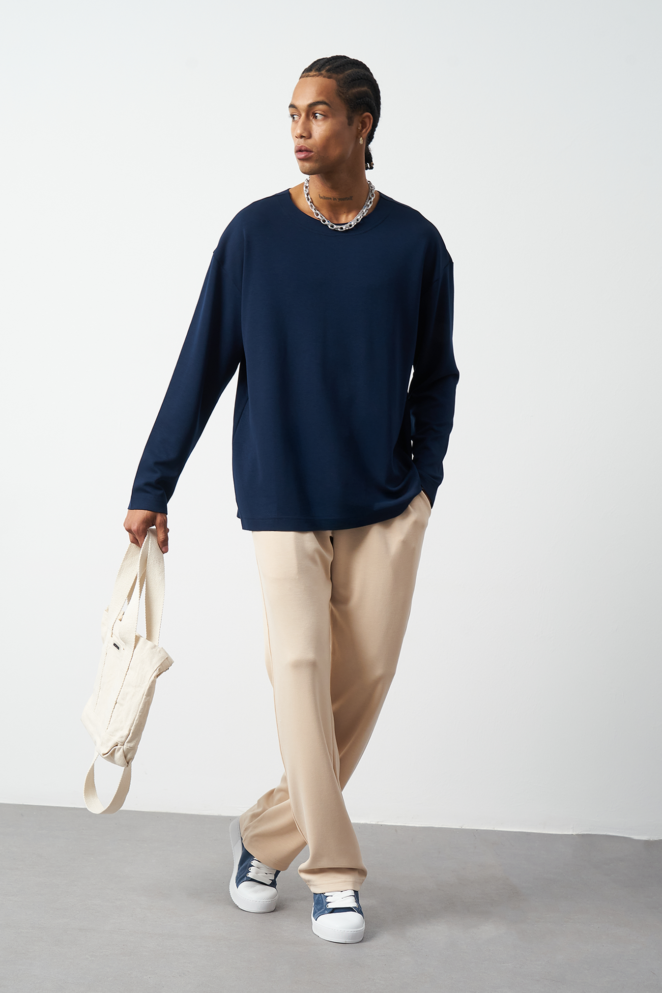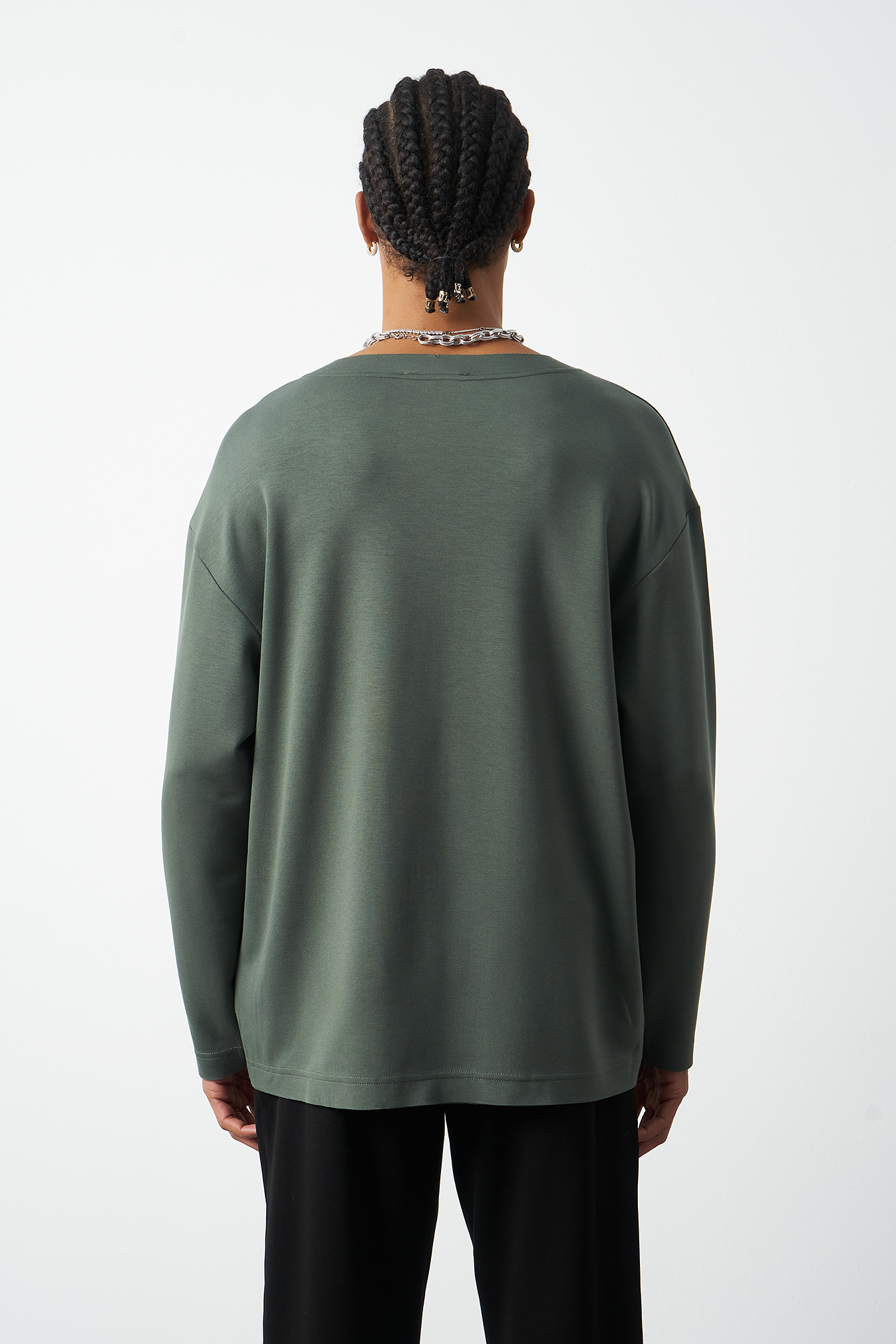 This breathable long-sleeve oversized men's t-shirt offers both style and comfort. The flexible modal fabric provides all-day comfort, while the collar stitching details add a subtle touch to the design. Available in 4 different colors, it offers versatile outfit combinations. A perfect choice for street fashion and casual looks!