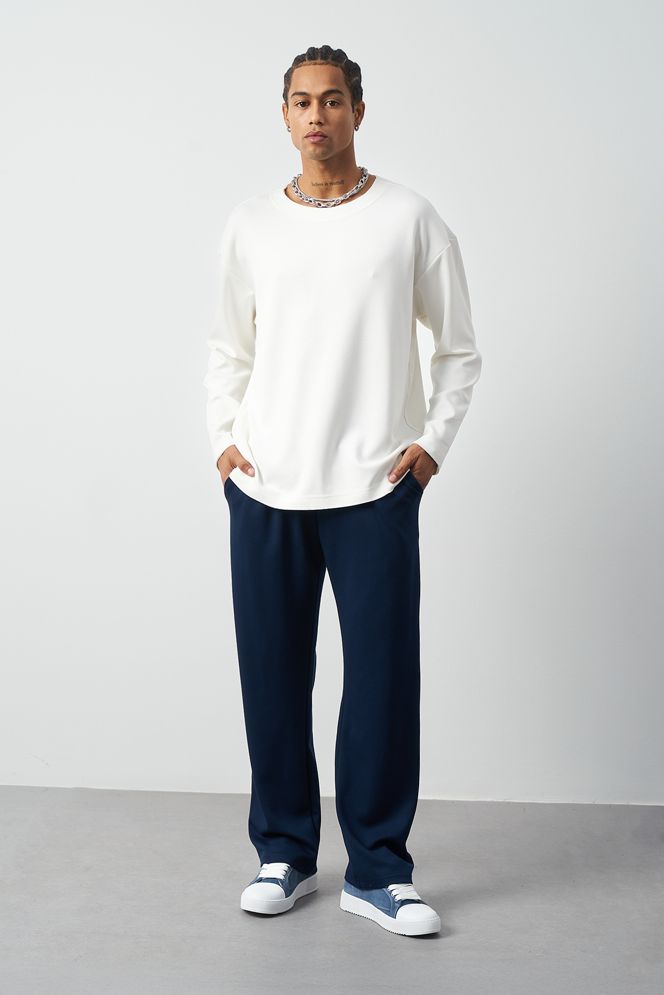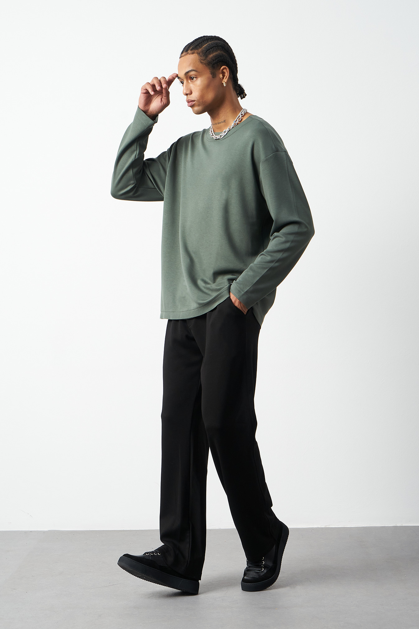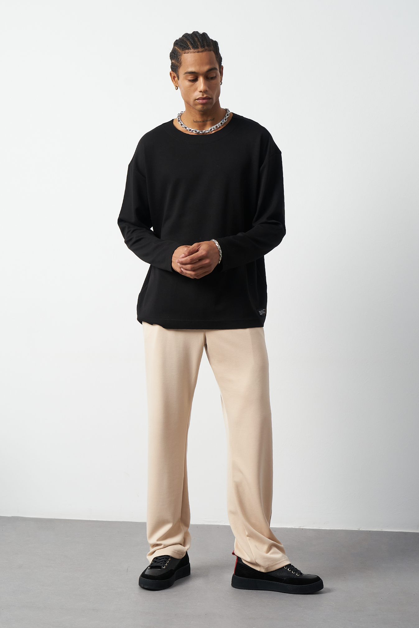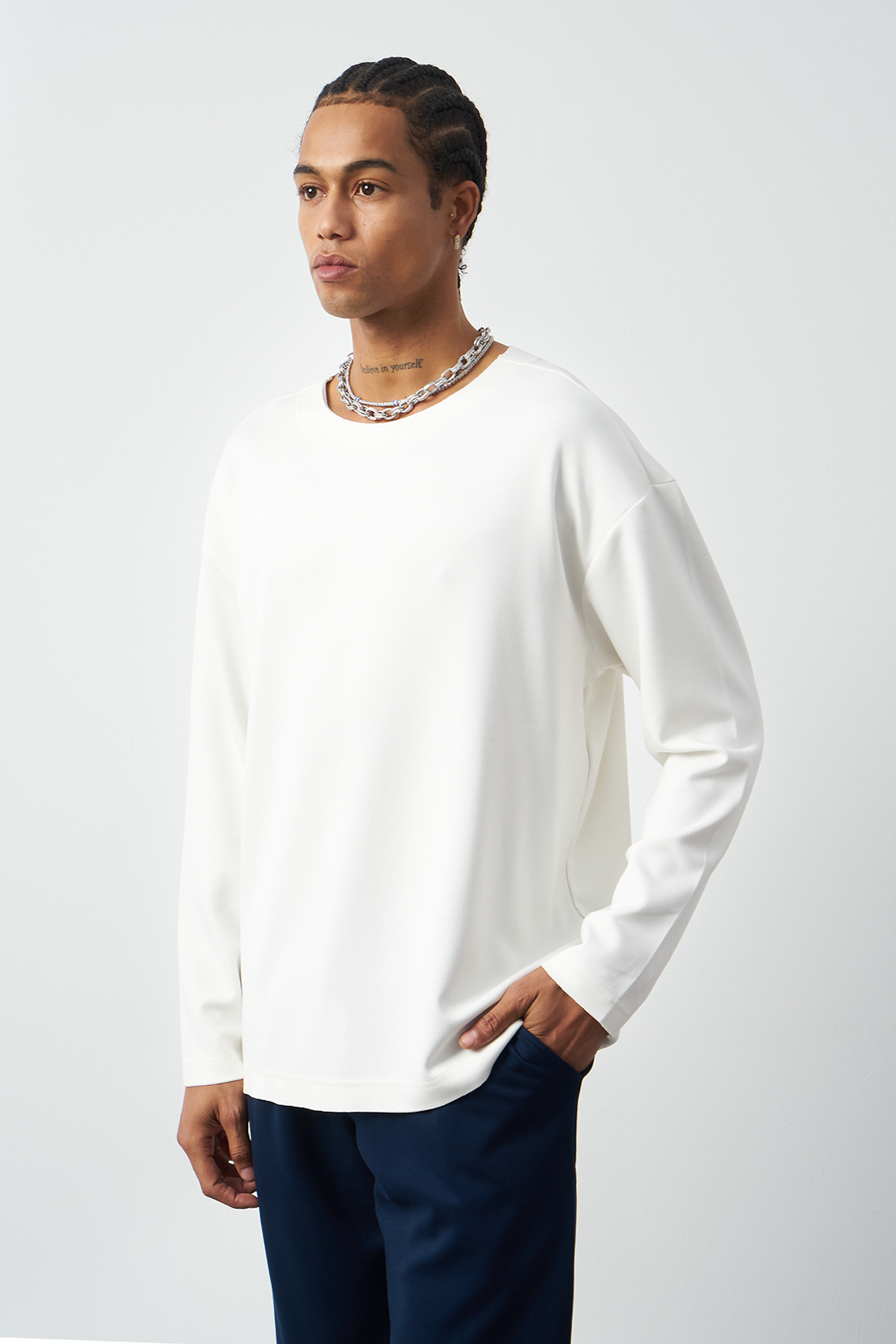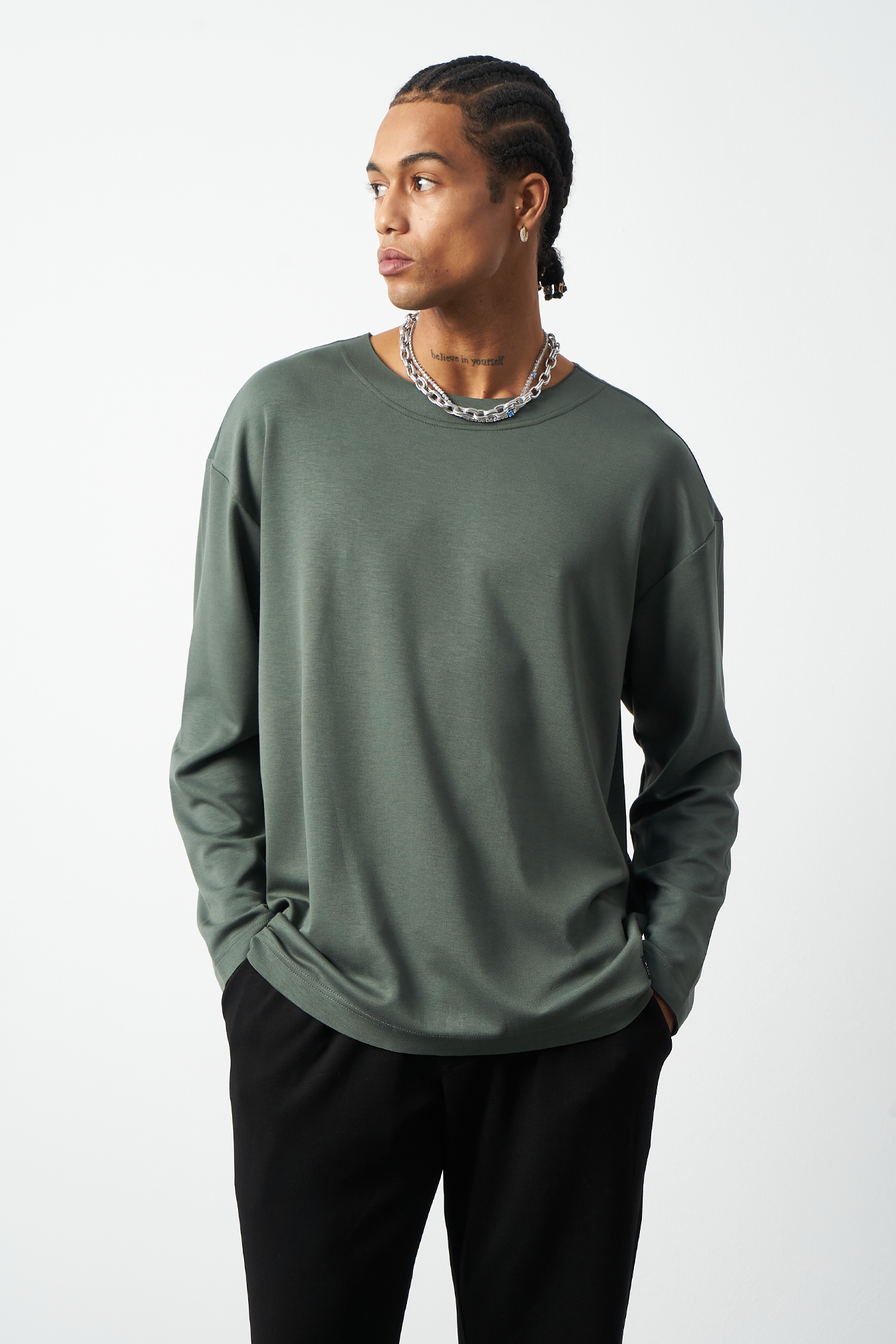 This breathable long-sleeve oversized men's t-shirt offers both style and comfort. The flexible modal fabric provides all-day comfort, while the collar stitching details add a subtle touch to the design. Available in 4 different colors, it offers versatile outfit combinations. A perfect choice for street fashion and casual looks!