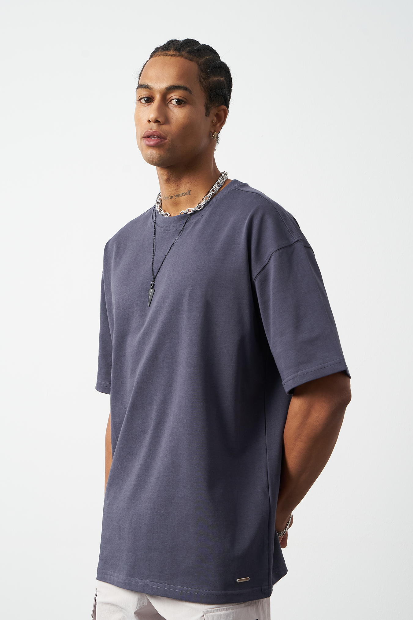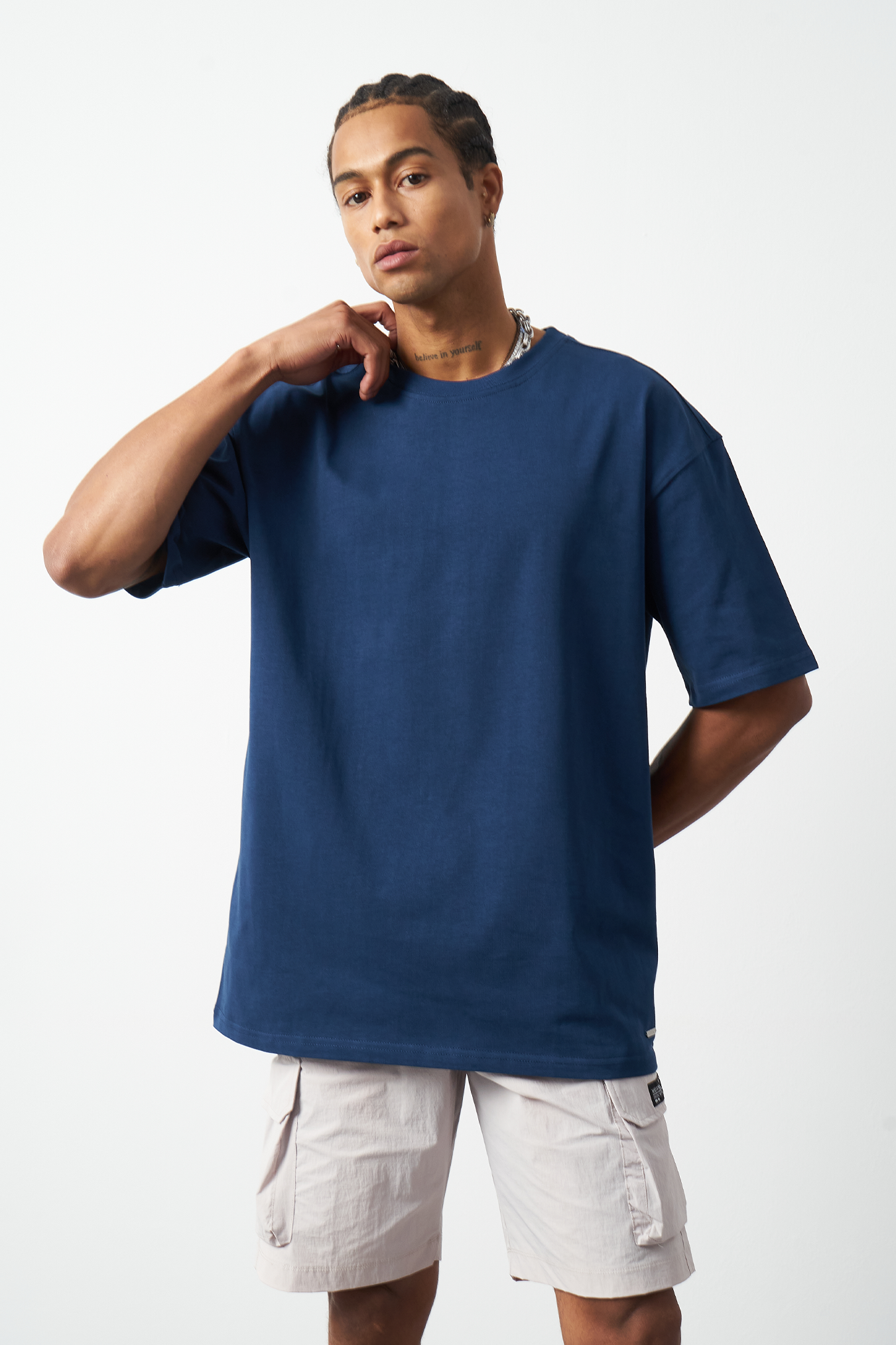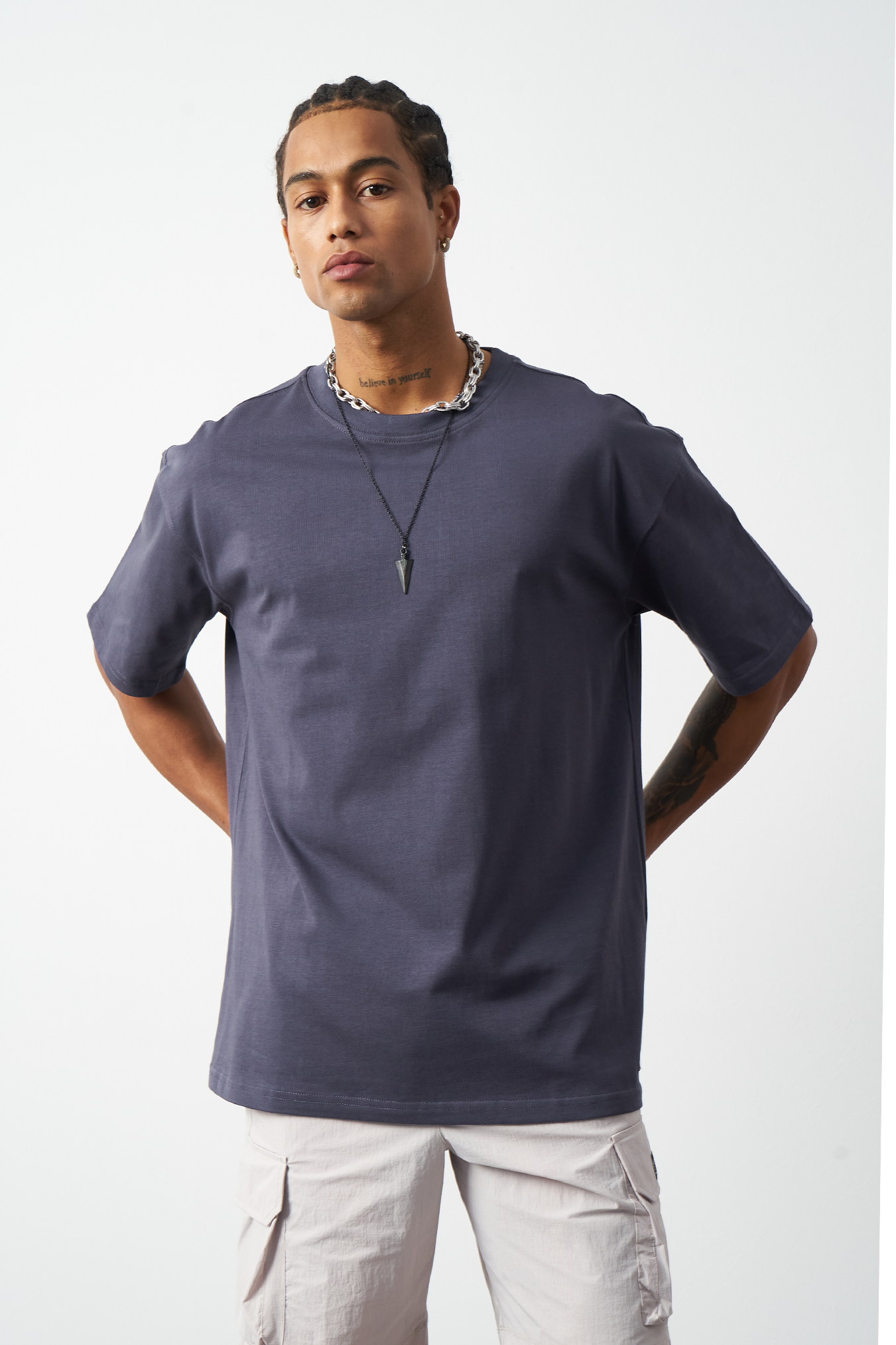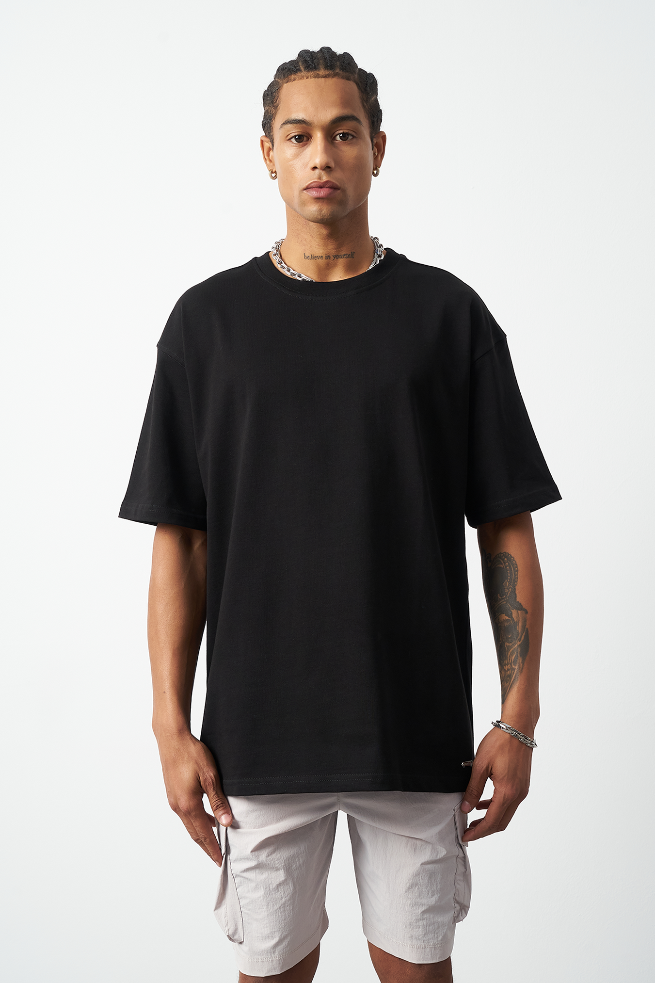 A breathable basic oversized men's t-shirt made from 100% cotton fabric for all-day comfort. Special stitch details add a premium touch and elegance to the design, while the oversized fit provides freedom of movement. Available in four different colors, offering versatile outfit combinations. A must-have for street fashion and casual outfits!