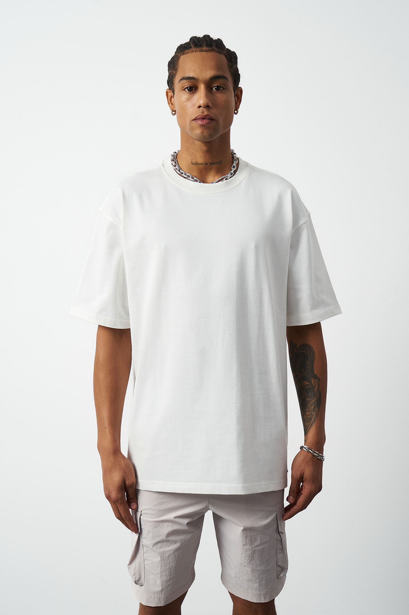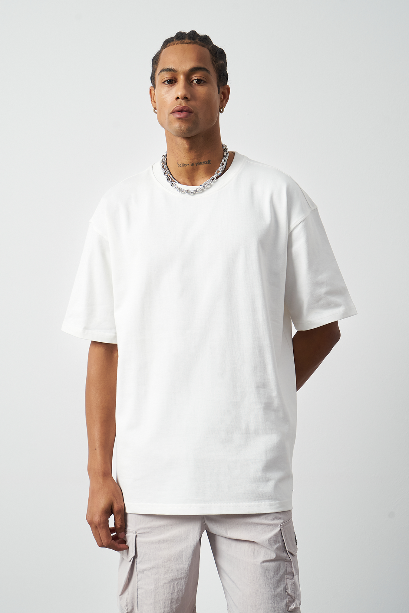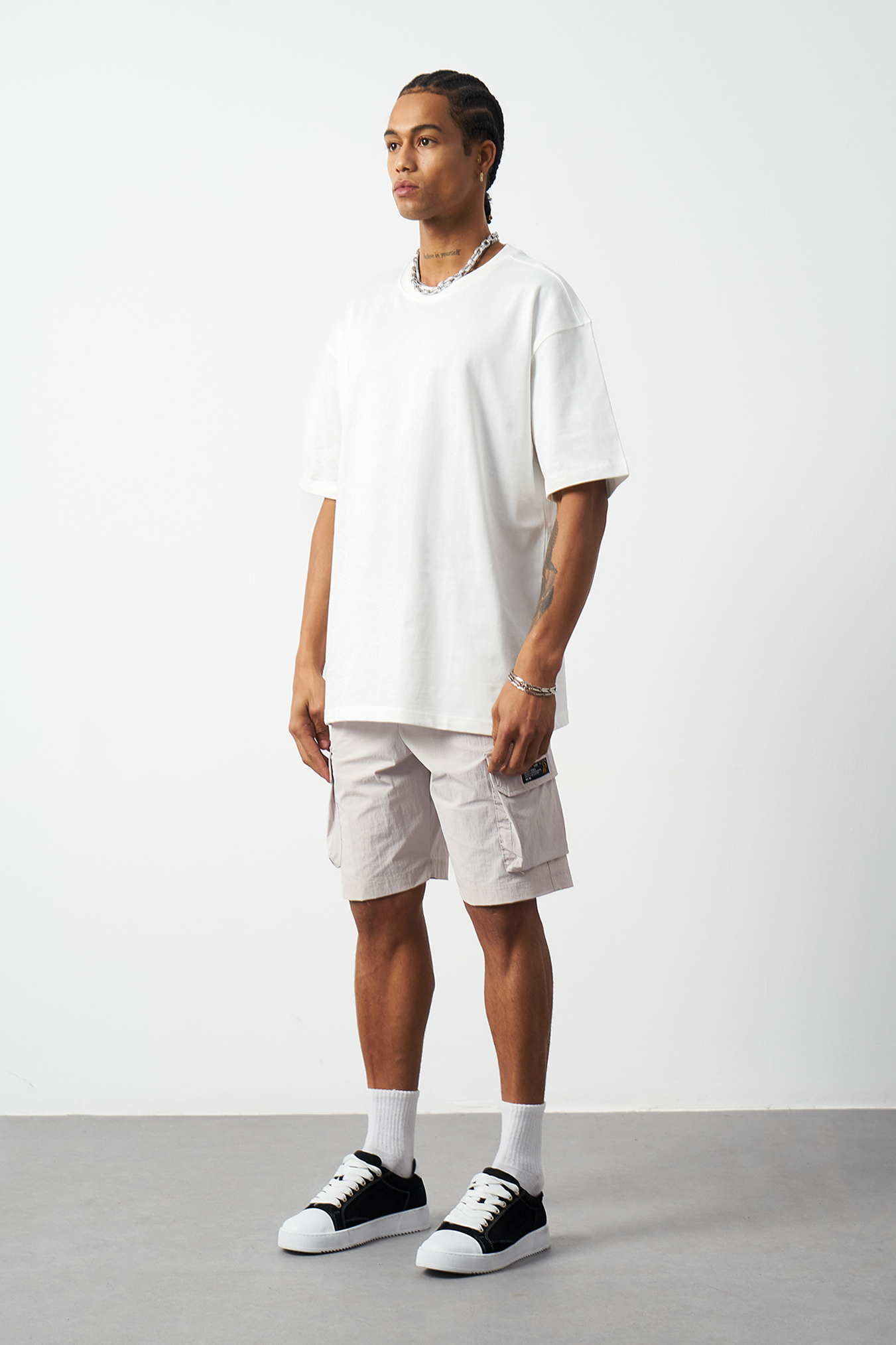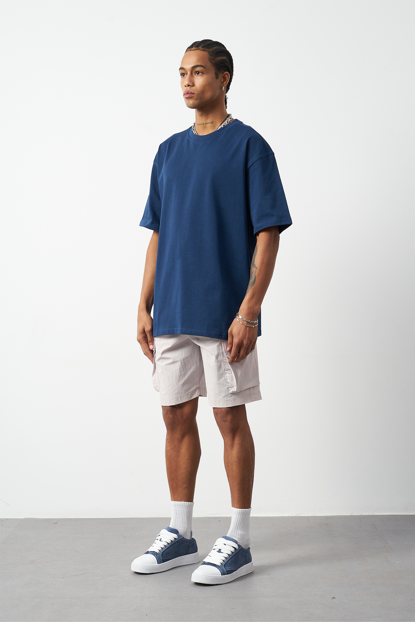 A breathable basic oversized men's t-shirt made from 100% cotton fabric for all-day comfort. Special stitch details add a premium touch and elegance to the design, while the oversized fit provides freedom of movement. Available in four different colors, offering versatile outfit combinations. A must-have for street fashion and casual outfits!