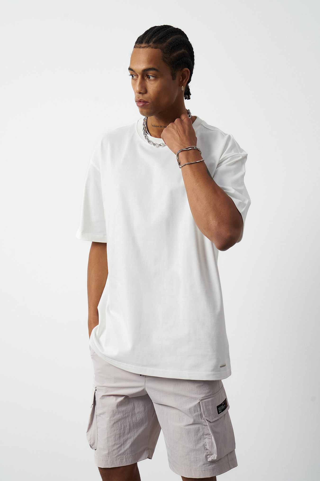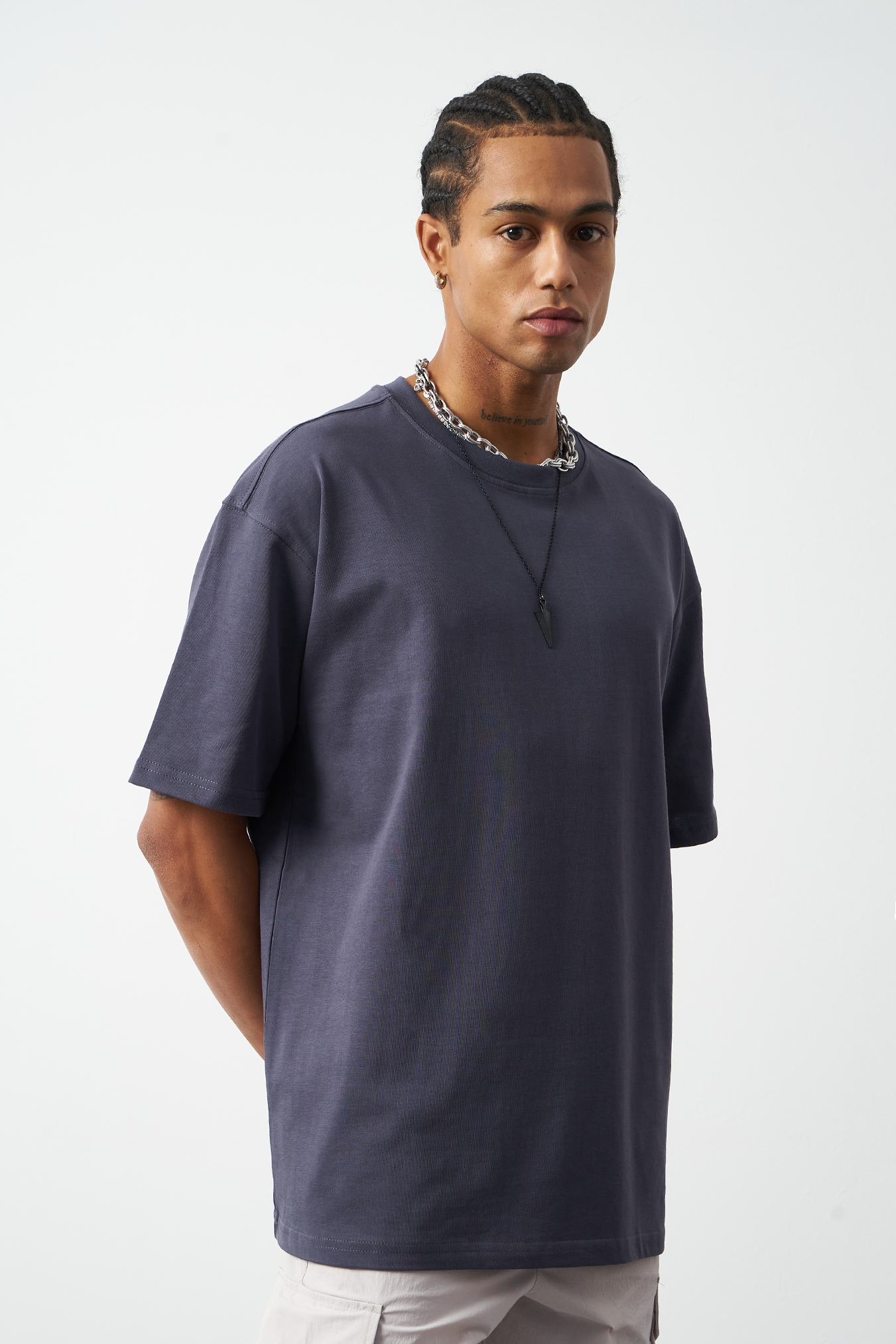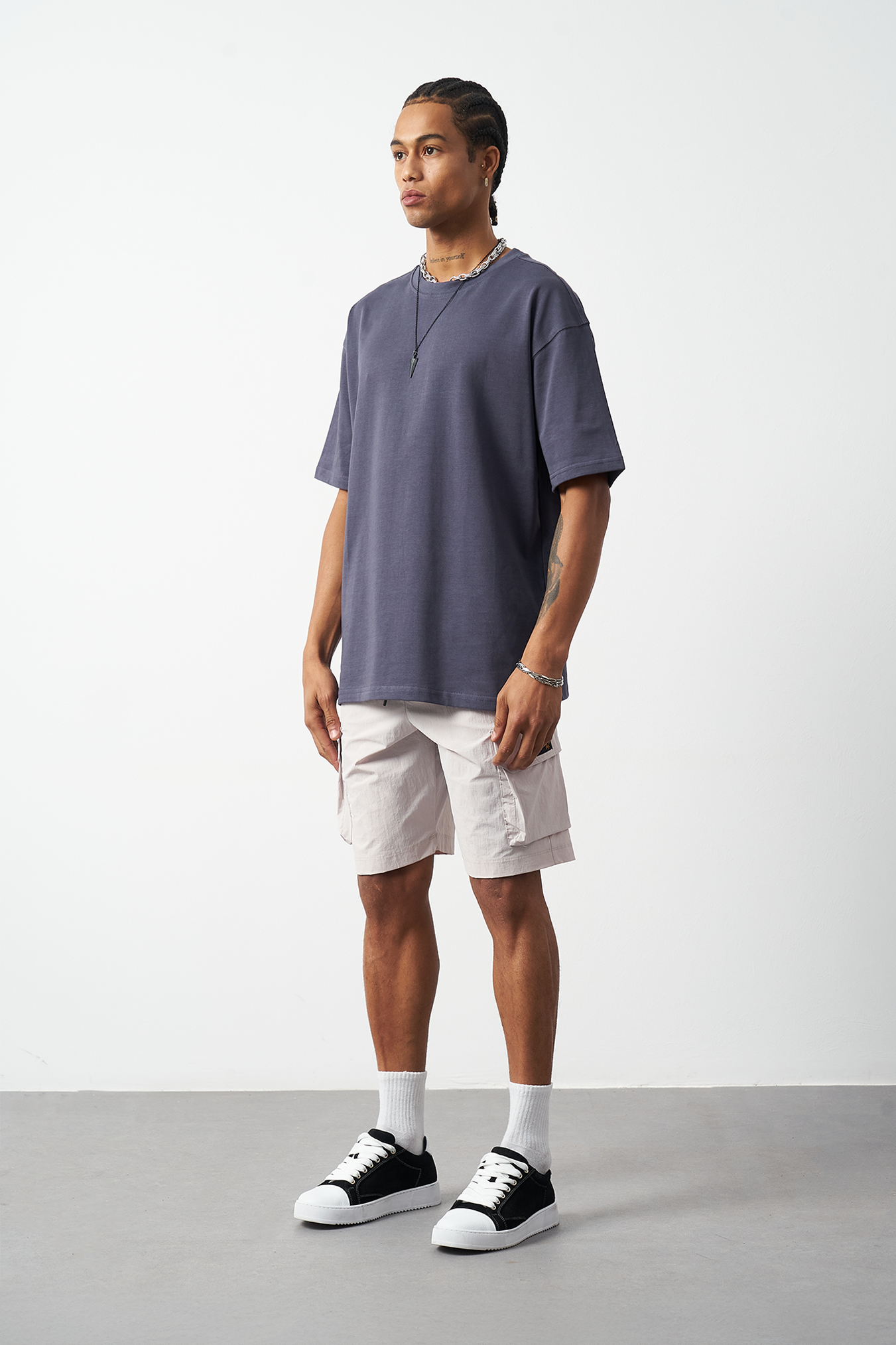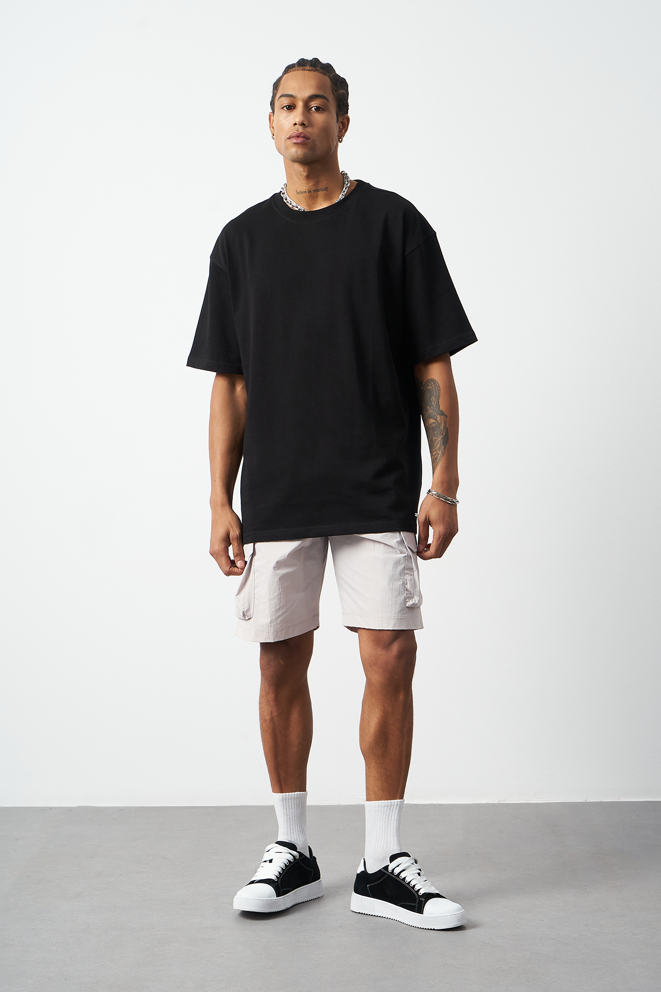 A breathable basic oversized men's t-shirt made from 100% cotton fabric for all-day comfort. Special stitch details add a premium touch and elegance to the design, while the oversized fit provides freedom of movement. Available in four different colors, offering versatile outfit combinations. A must-have for street fashion and casual outfits!