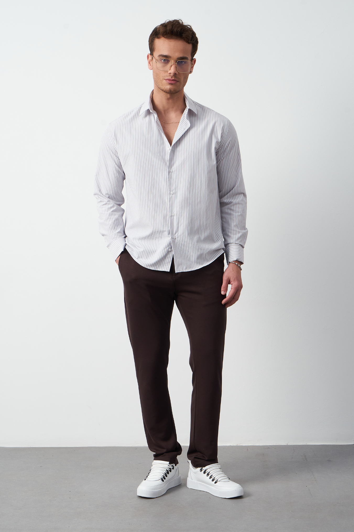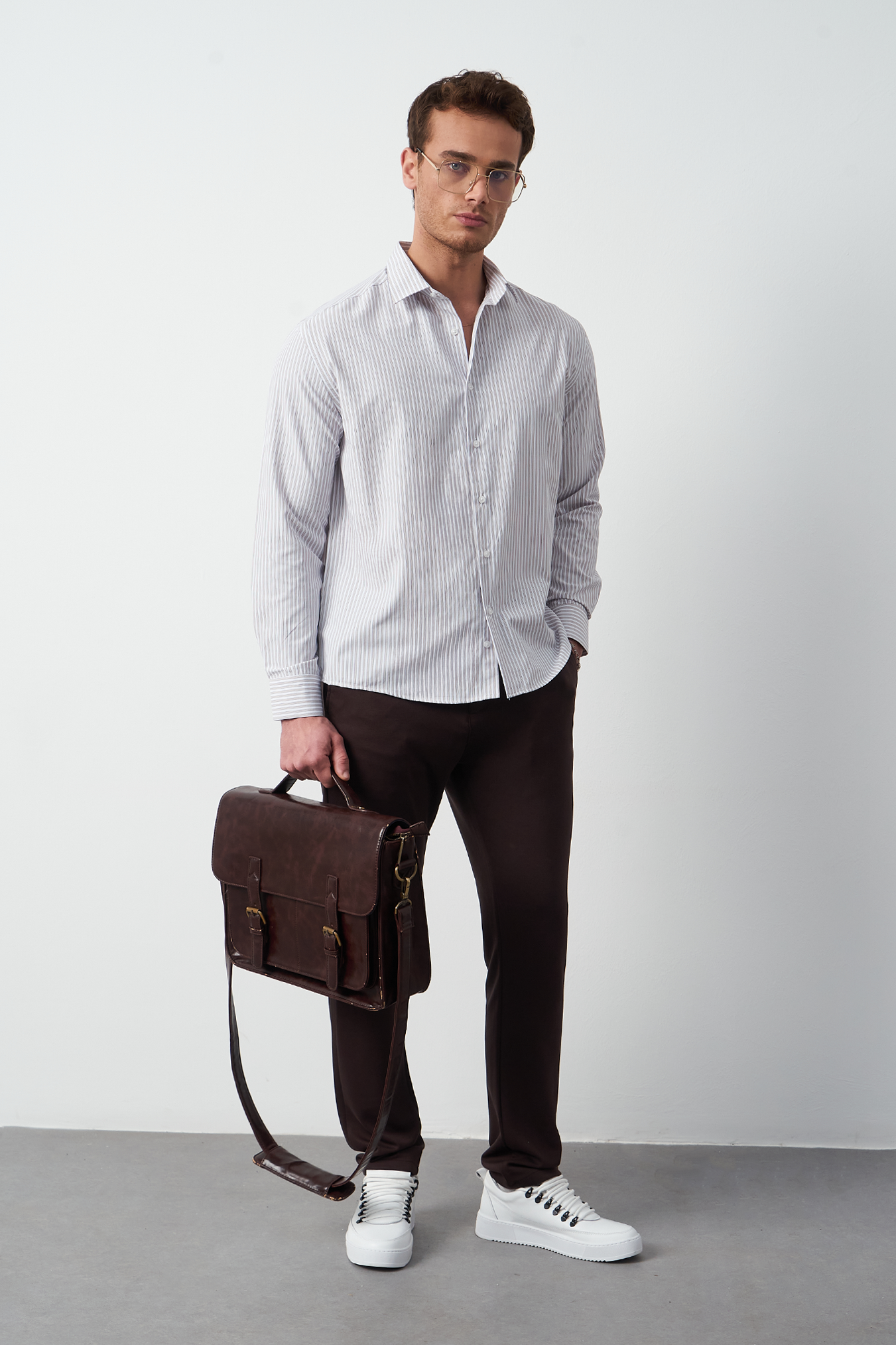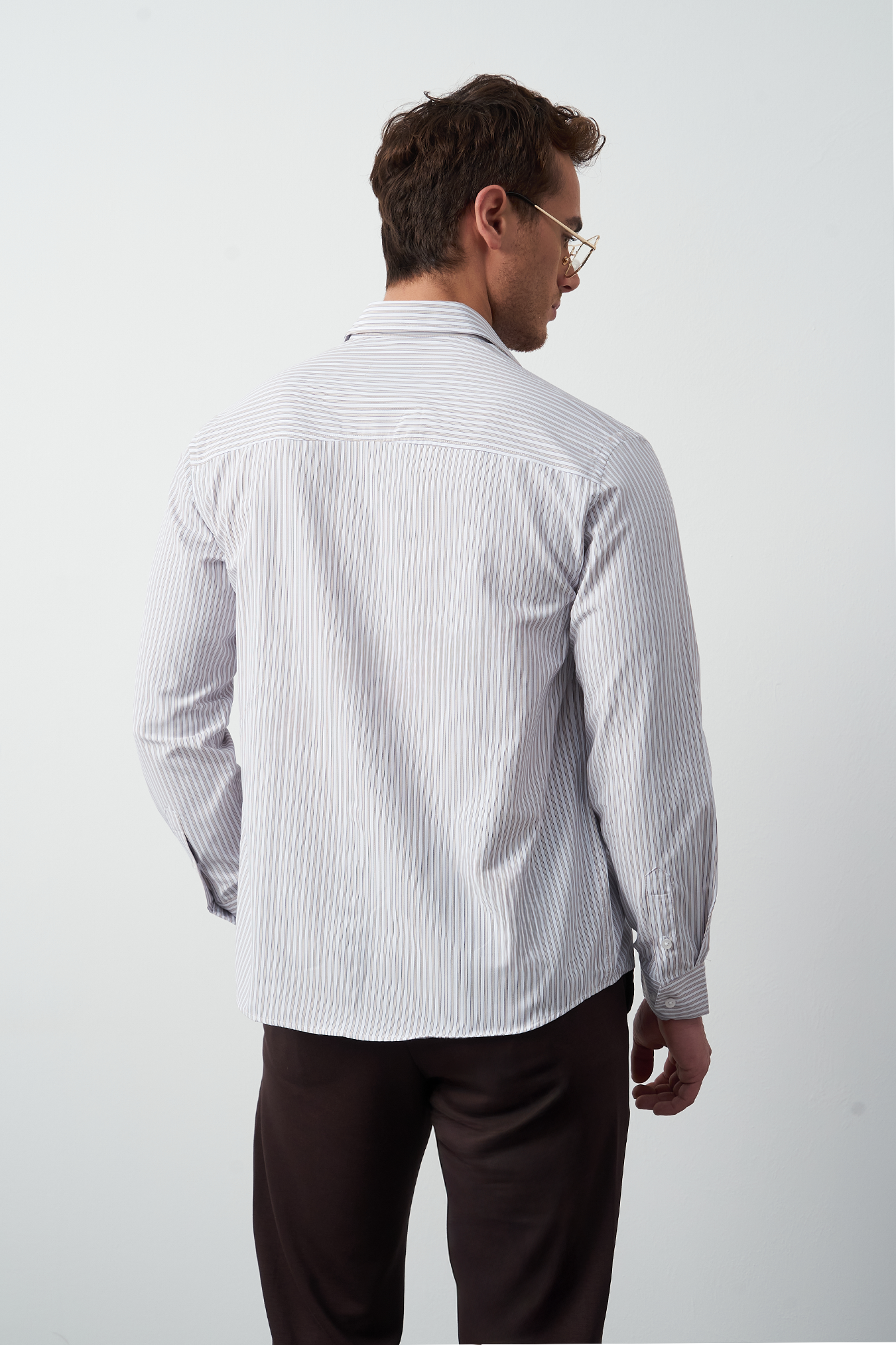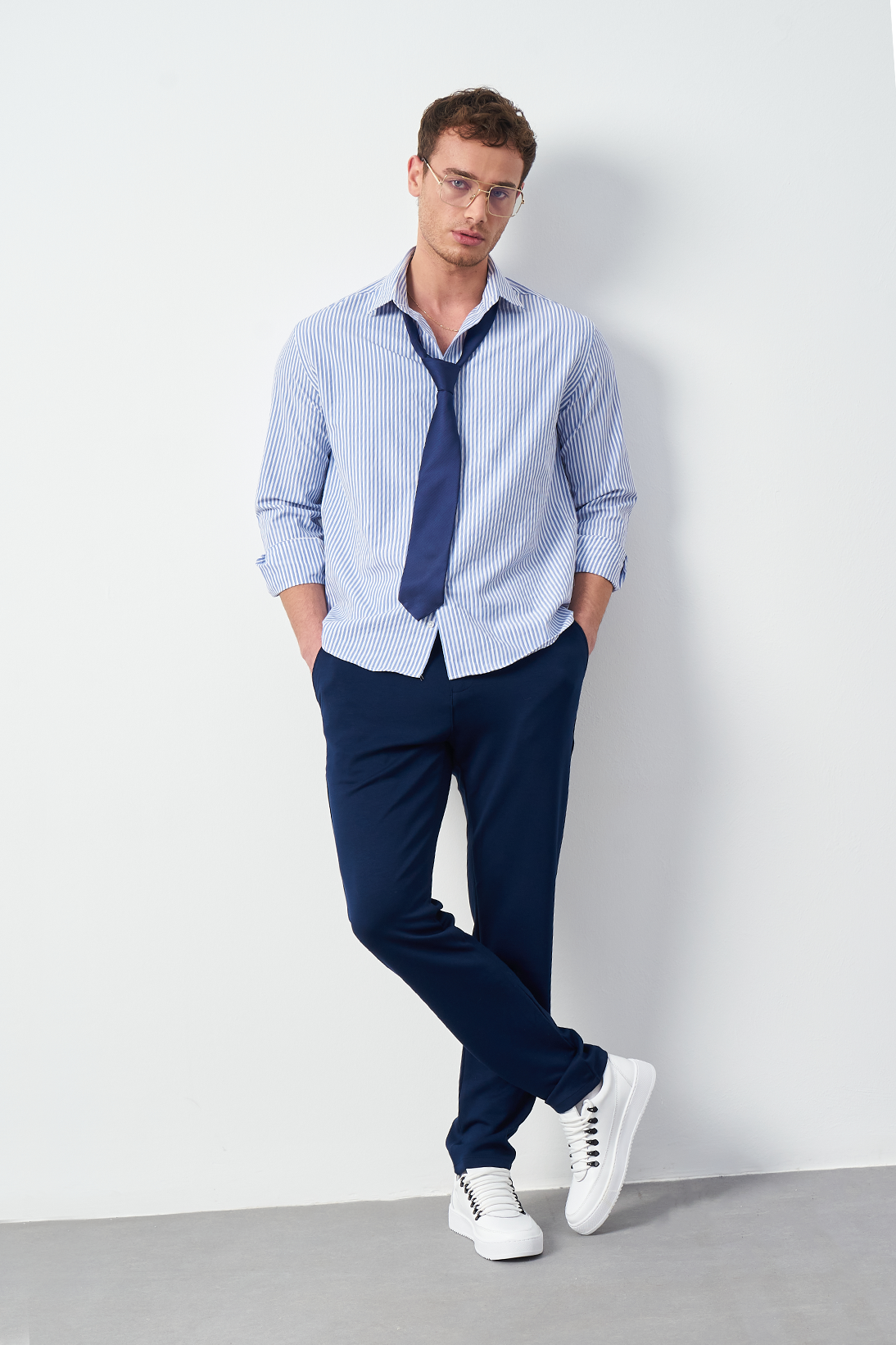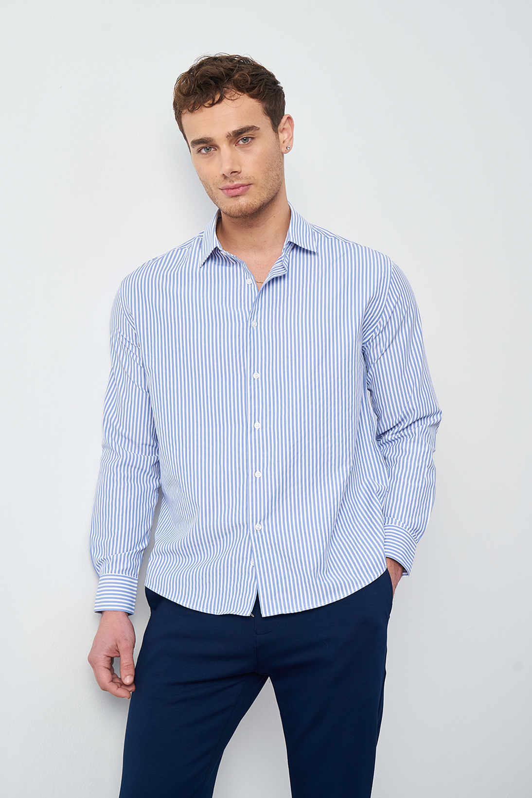 Our relaxed fit dress shirt showcases expertly crafted stripe patterns in sophisticated colorways. The boxy fit silhouette provides comfortable movement while maintaining the polished appearance that modern professionals demand. Each shirt is meticulously manufactured in Turkey using premium materials that ensure both durability and comfort.