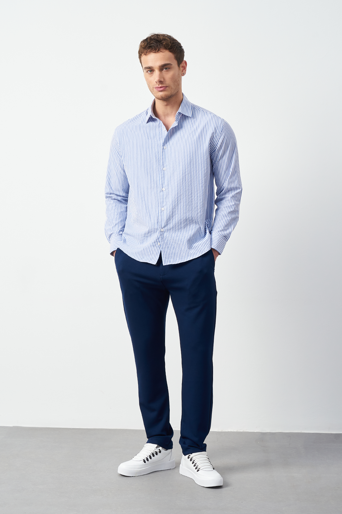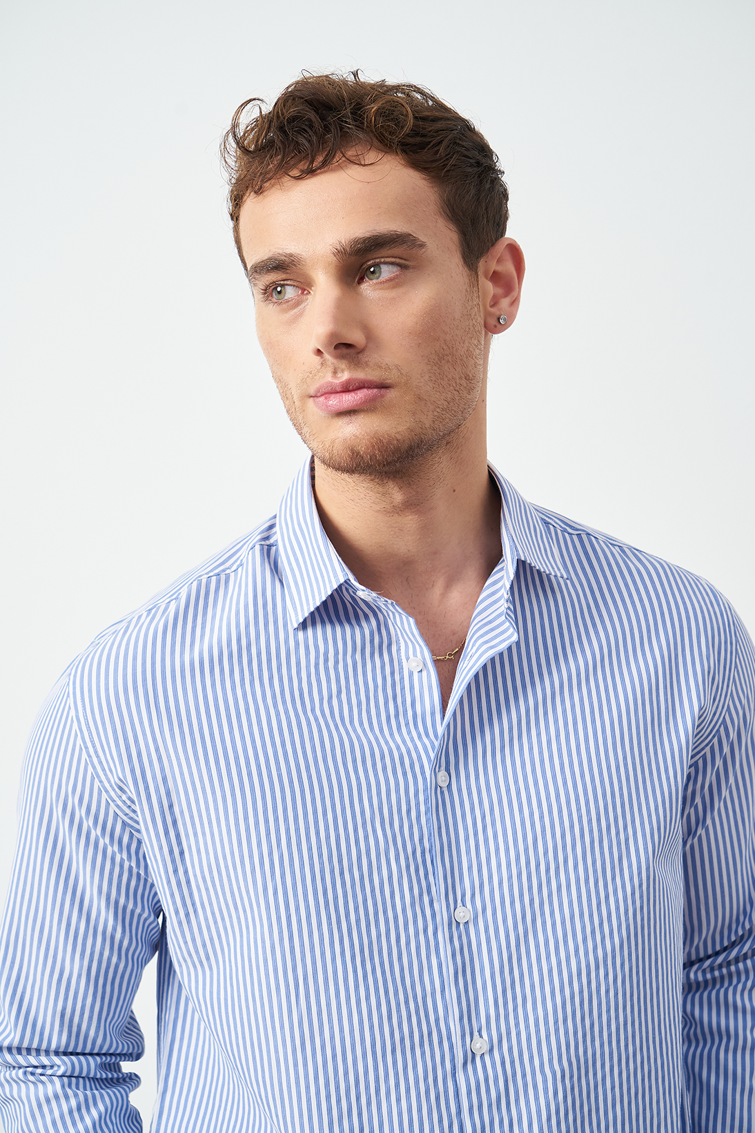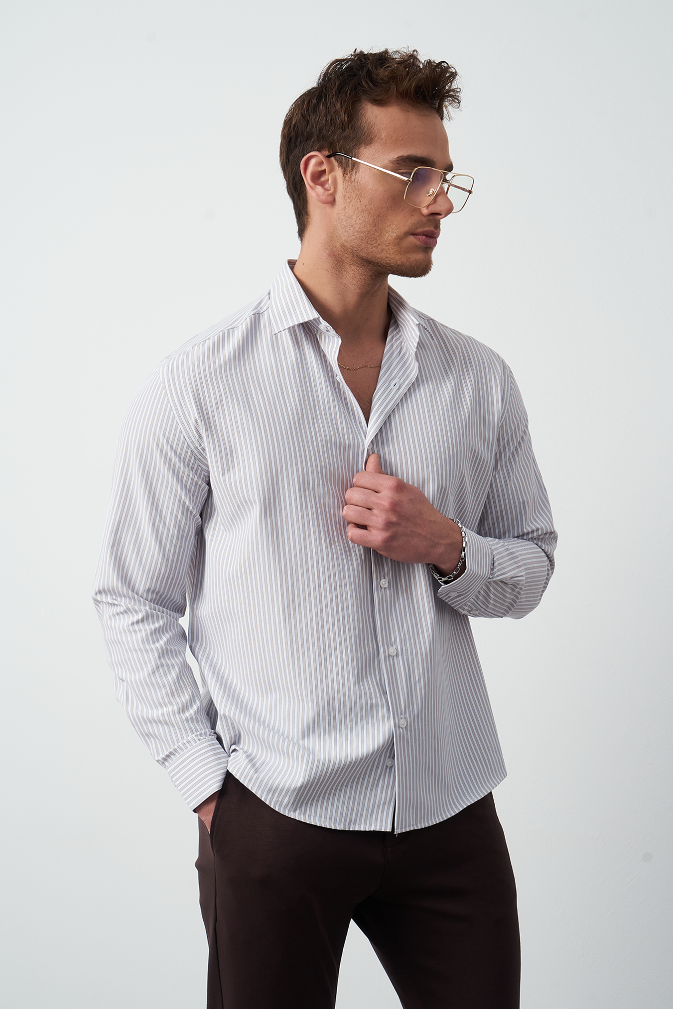 Striped dress shirt by Mesfeno Wear combines timeless style with contemporary comfort through its relaxed fit design. This premium men's dress shirt features classic stripe patterns that effortlessly transition from business casual to weekend sophistication, making it an essential addition to every gentleman's wardrobe.