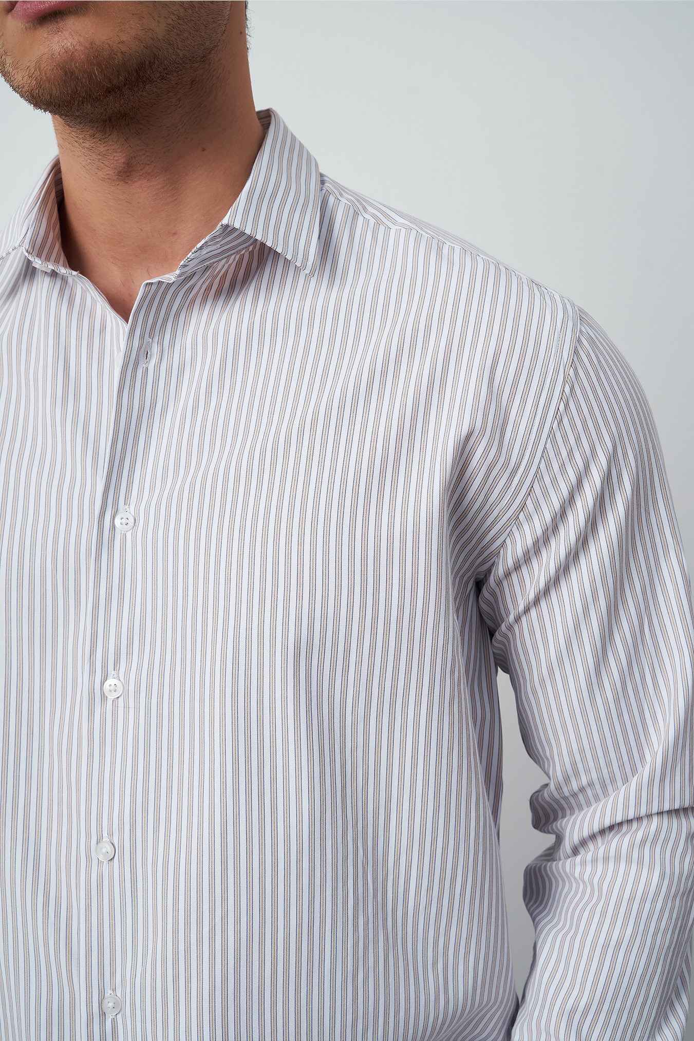 Elevate your professional wardrobe with this striped dress shirt that perfectly balances relaxed comfort with sophisticated style, designed for the modern gentleman who values both quality and versatility.