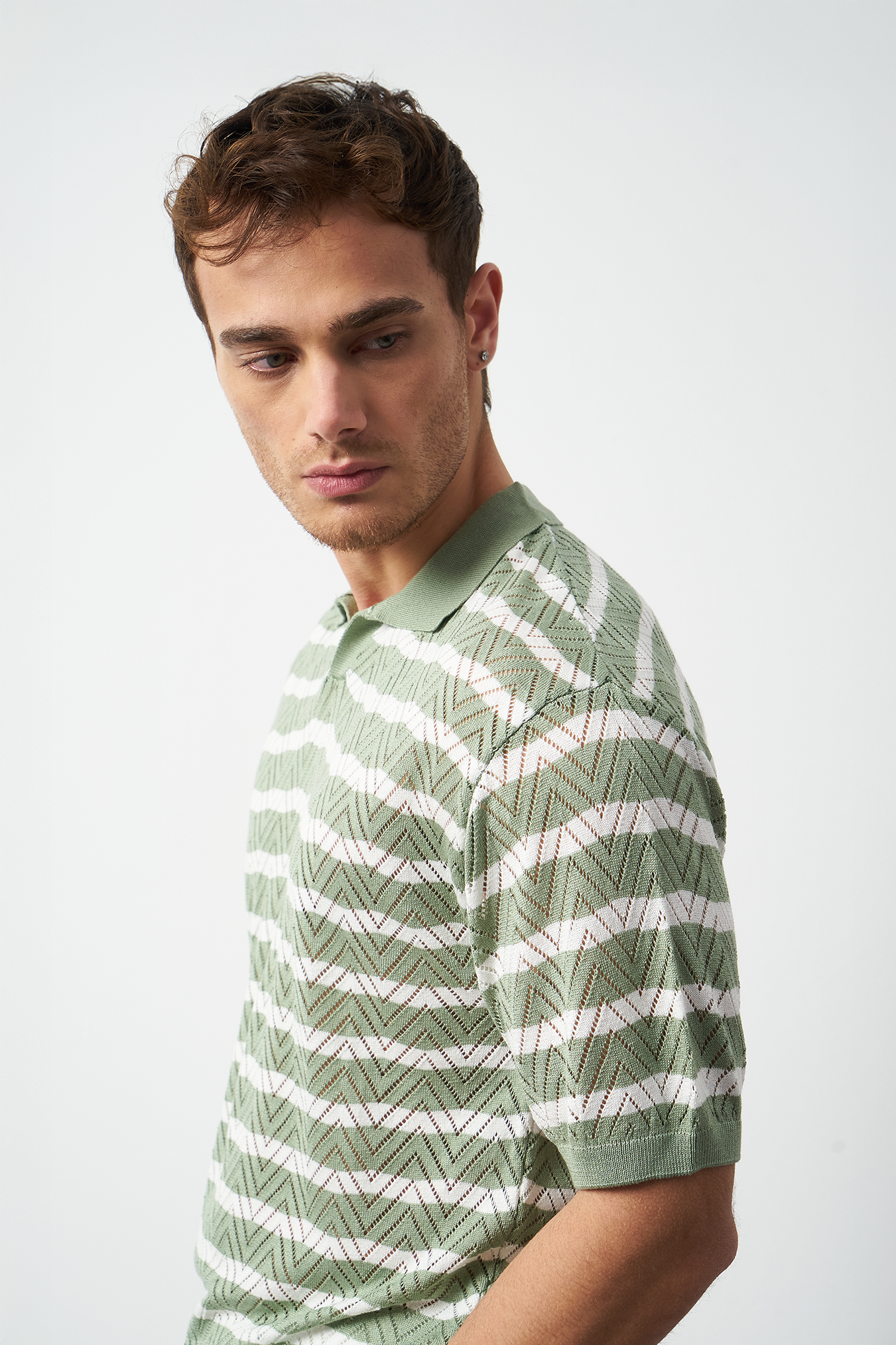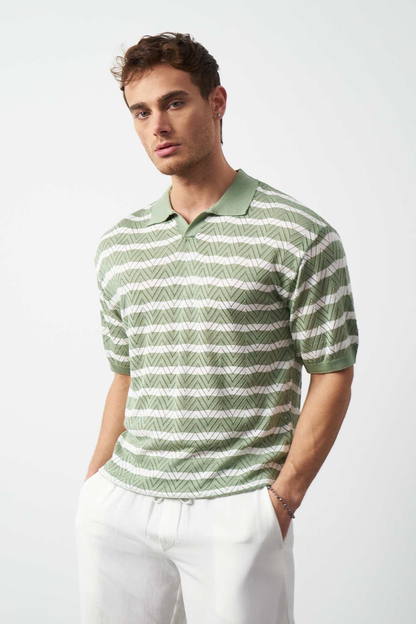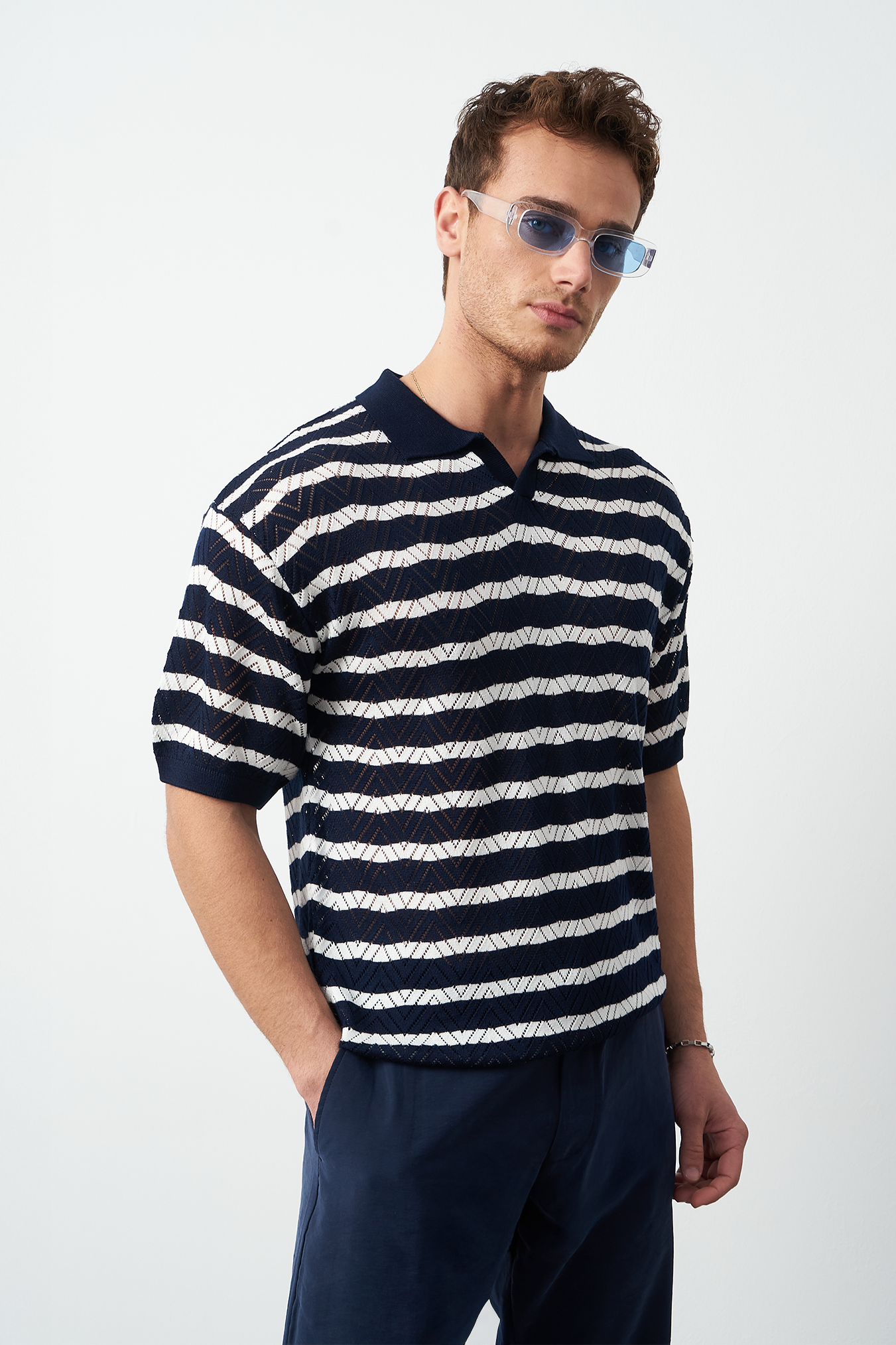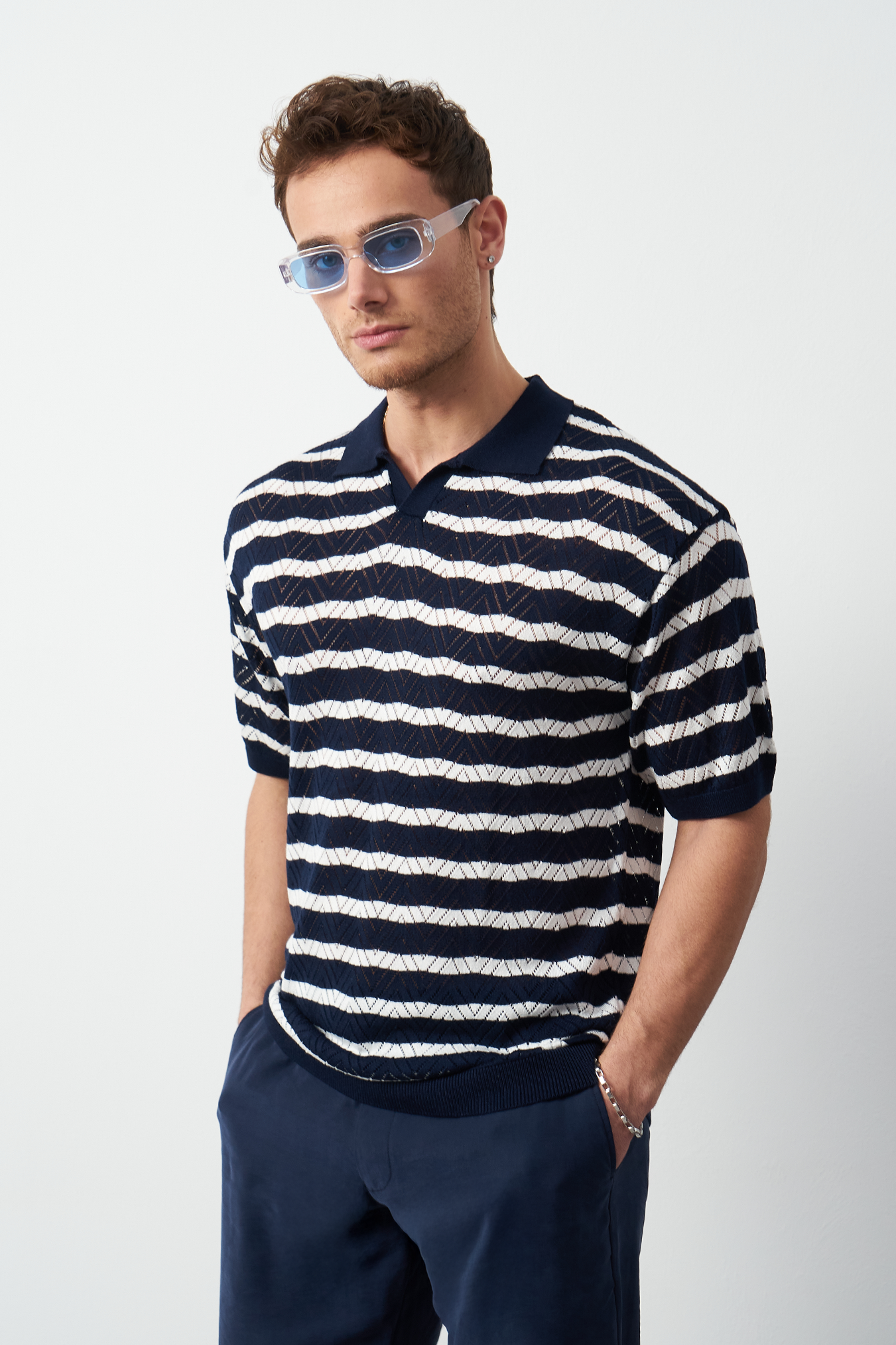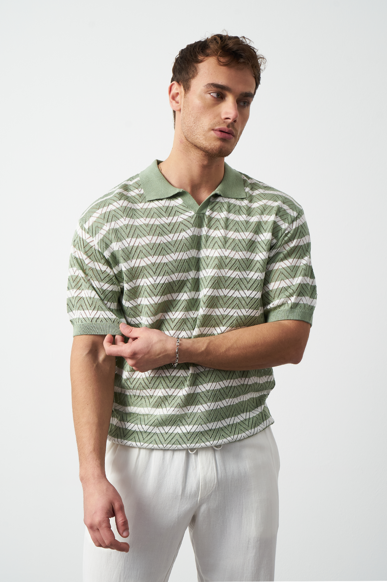 Light and breathable fabric, perfect for hot weather! The regular fit prioritizes comfort, while the short sleeves and collar details ensure compatibility with any combination. With 4 different color options, it offers versatile styling possibilities. The unique striped design adds an energetic touch to your daily style.