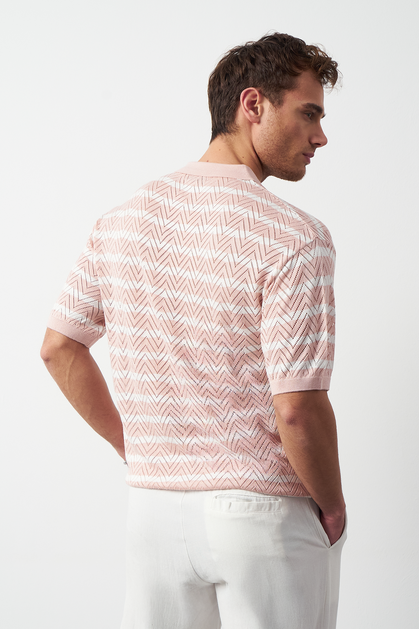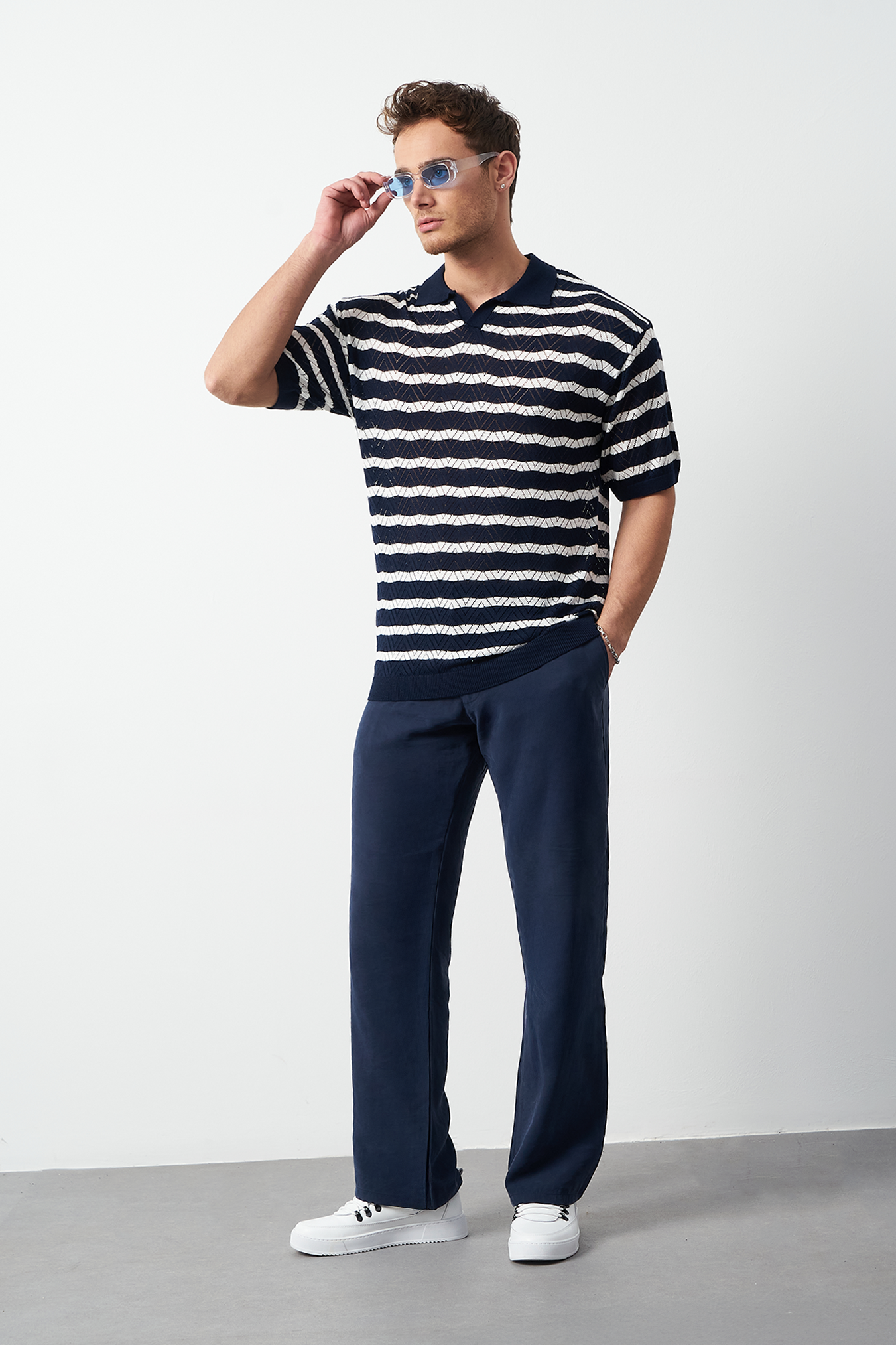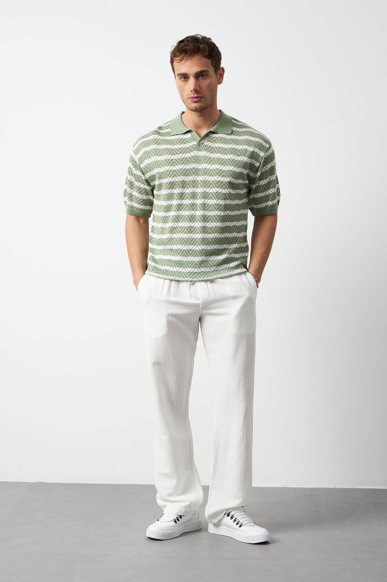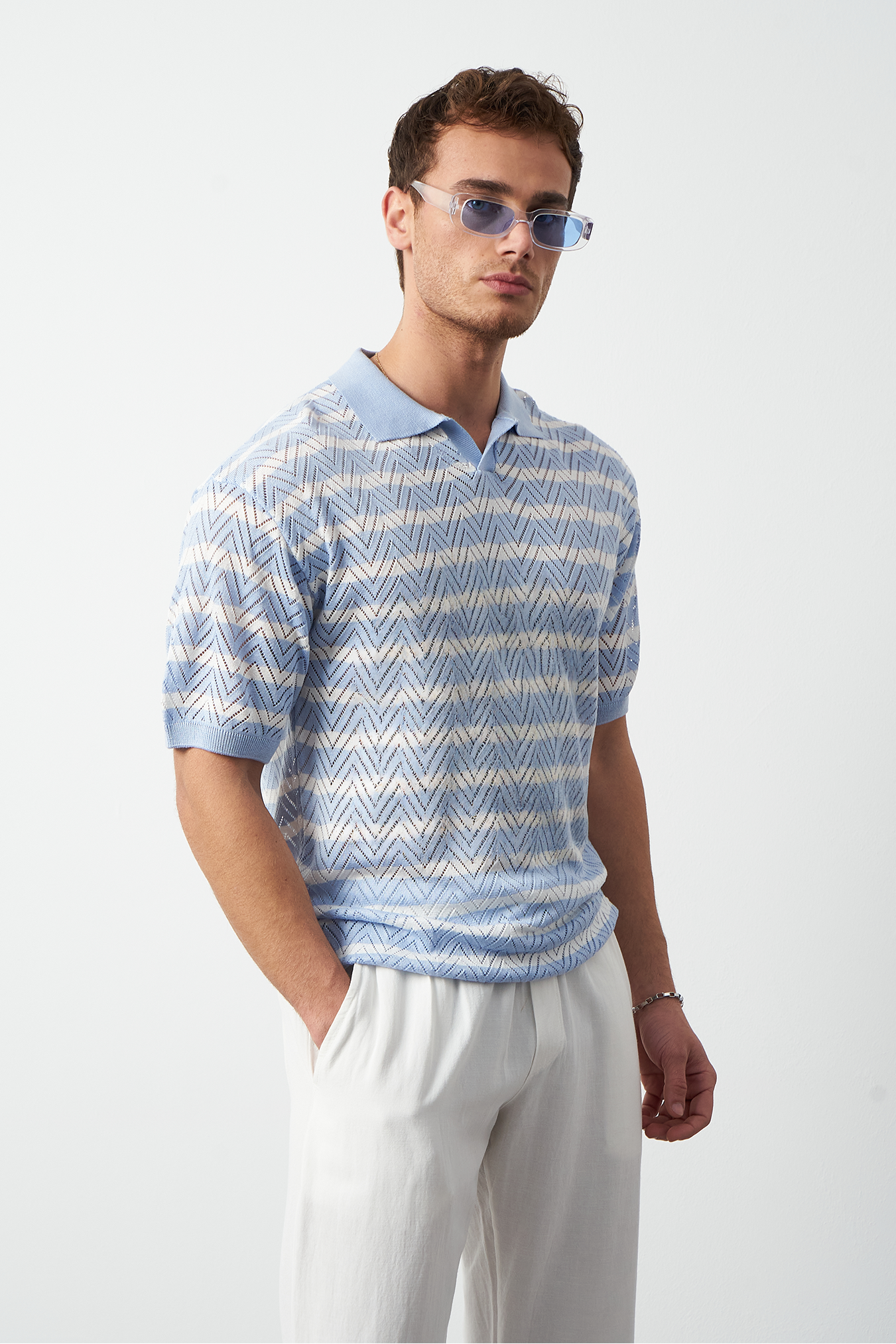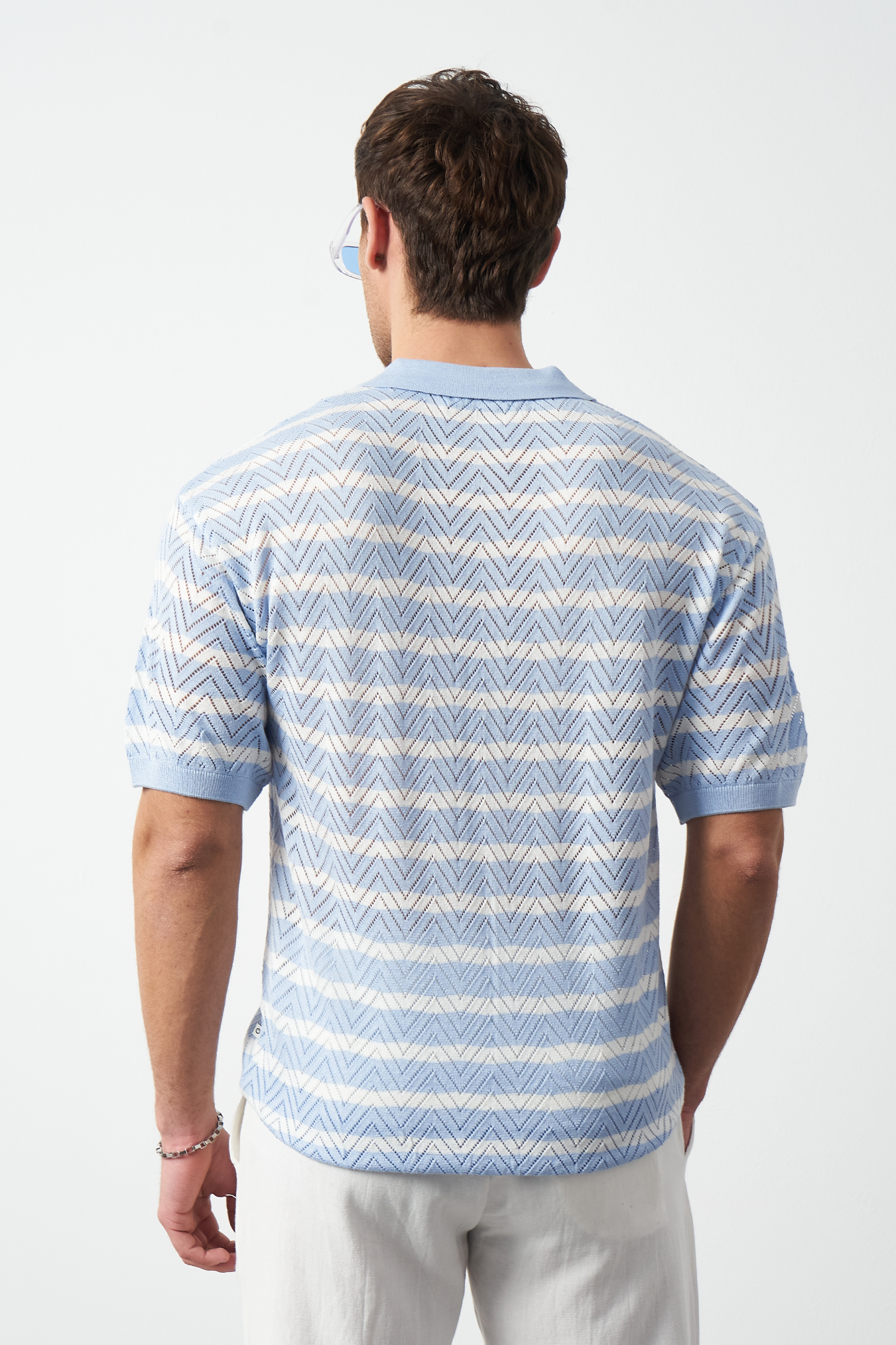 Light and breathable fabric, perfect for hot weather! The regular fit prioritizes comfort, while the short sleeves and collar details ensure compatibility with any combination. With 4 different color options, it offers versatile styling possibilities. The unique striped design adds an energetic touch to your daily style.