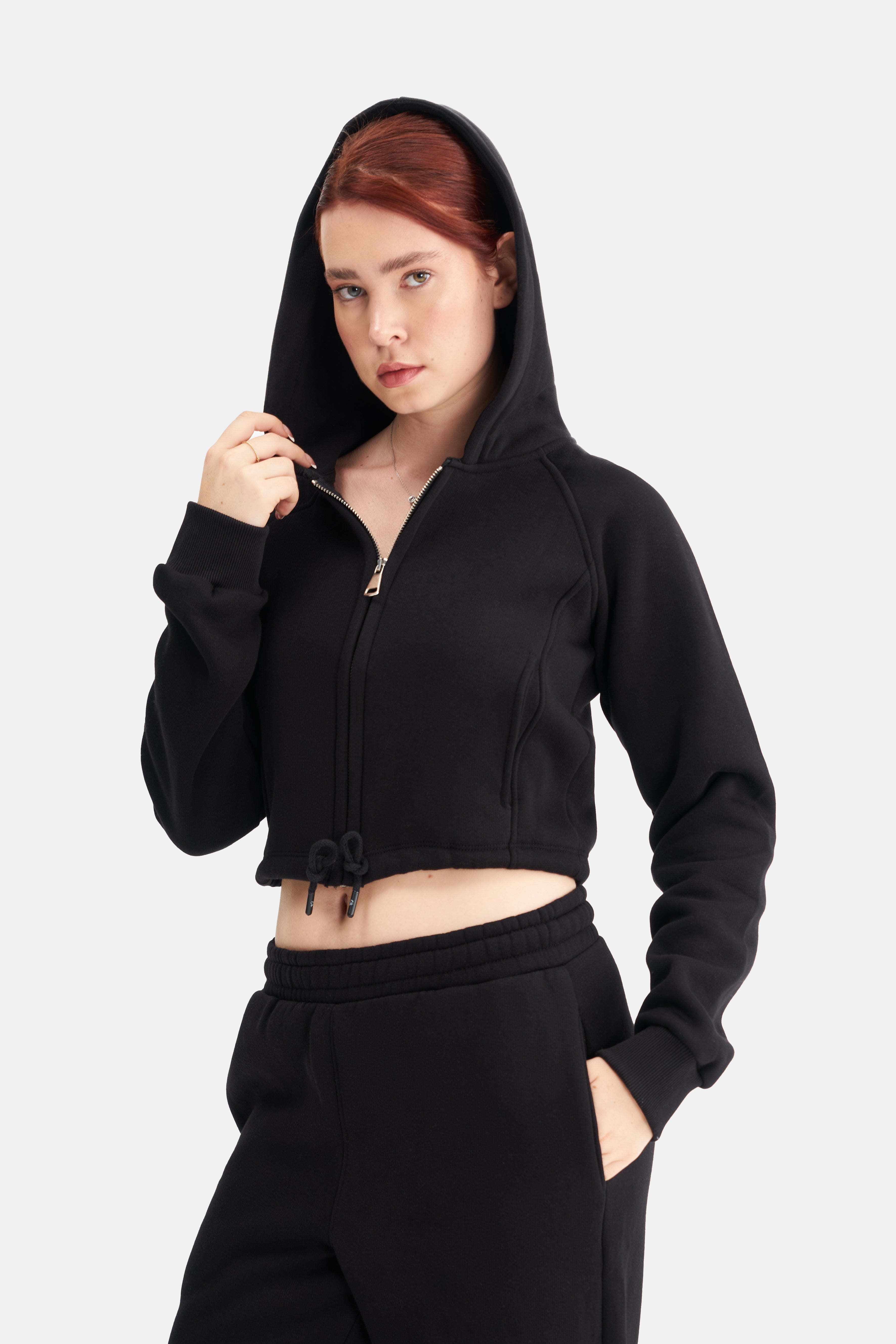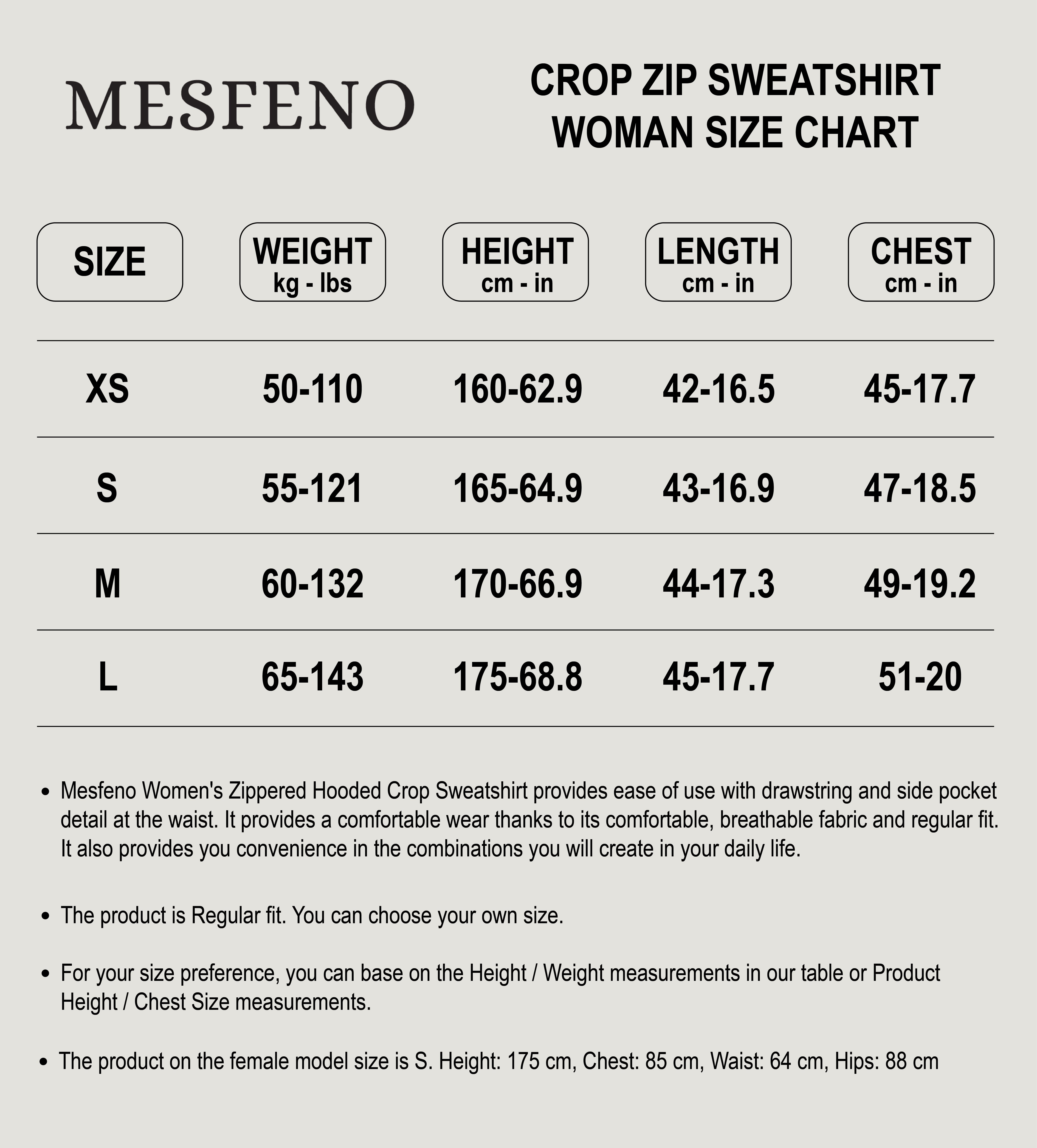 Mesfeno Women's Zip-Up Hooded Crop Sweatshirt offers ease of use with its drawstring waist and side pocket details. Its breathable and comfortable fabric, combined with a regular fit, ensures a relaxed wearing experience. Perfect for everyday outfits, making styling effortless.